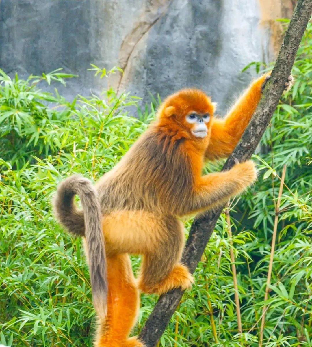 金丝猴属于灵长目猴科仰鼻猴属,它们和大熊猫并称“中国双宝”,是我国一级重点保护野生动物。川金丝猴刚出生时并非金黄色,而是灰黑色的,等到它快8个月、乳牙长好后,才会换成金毛。