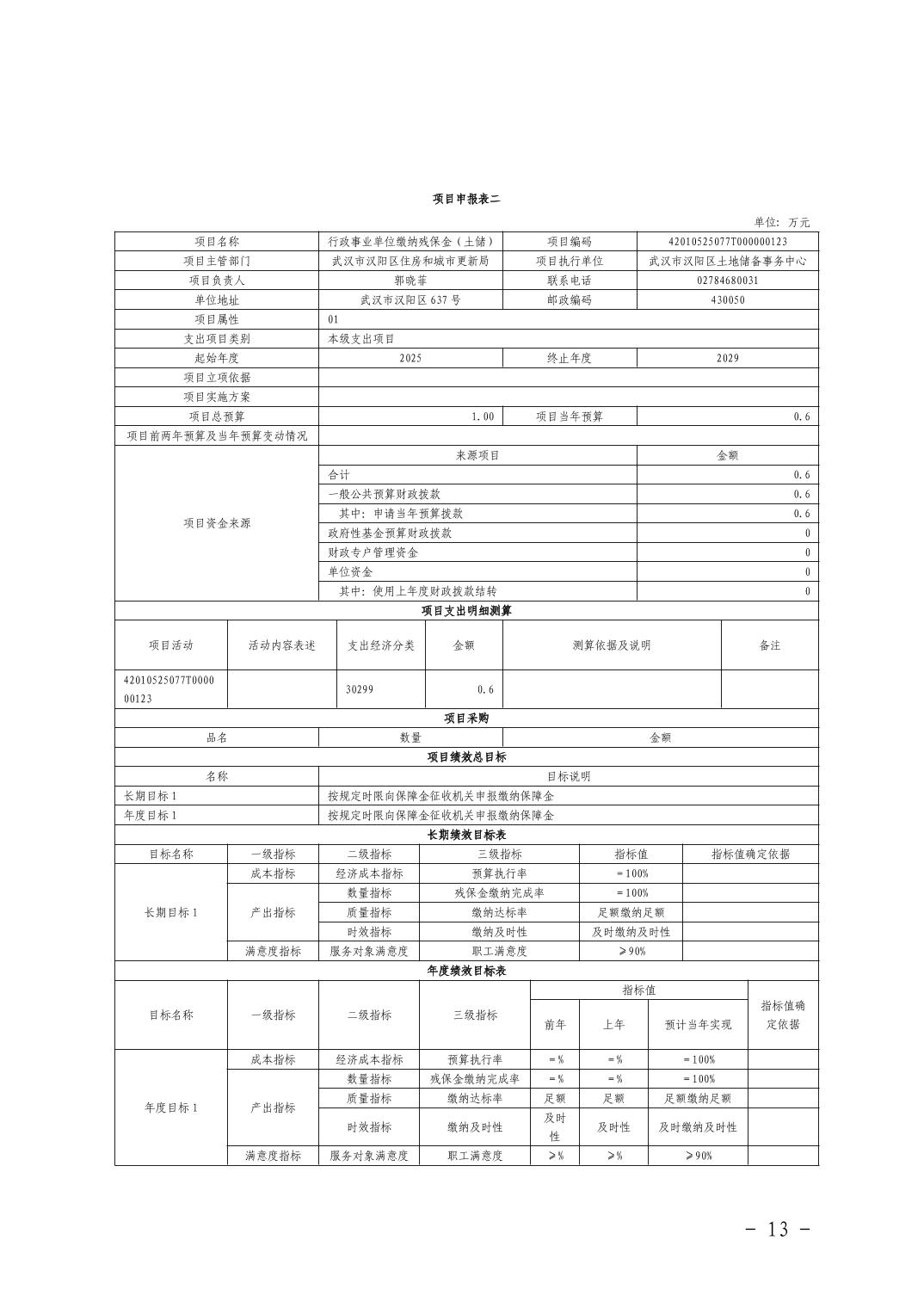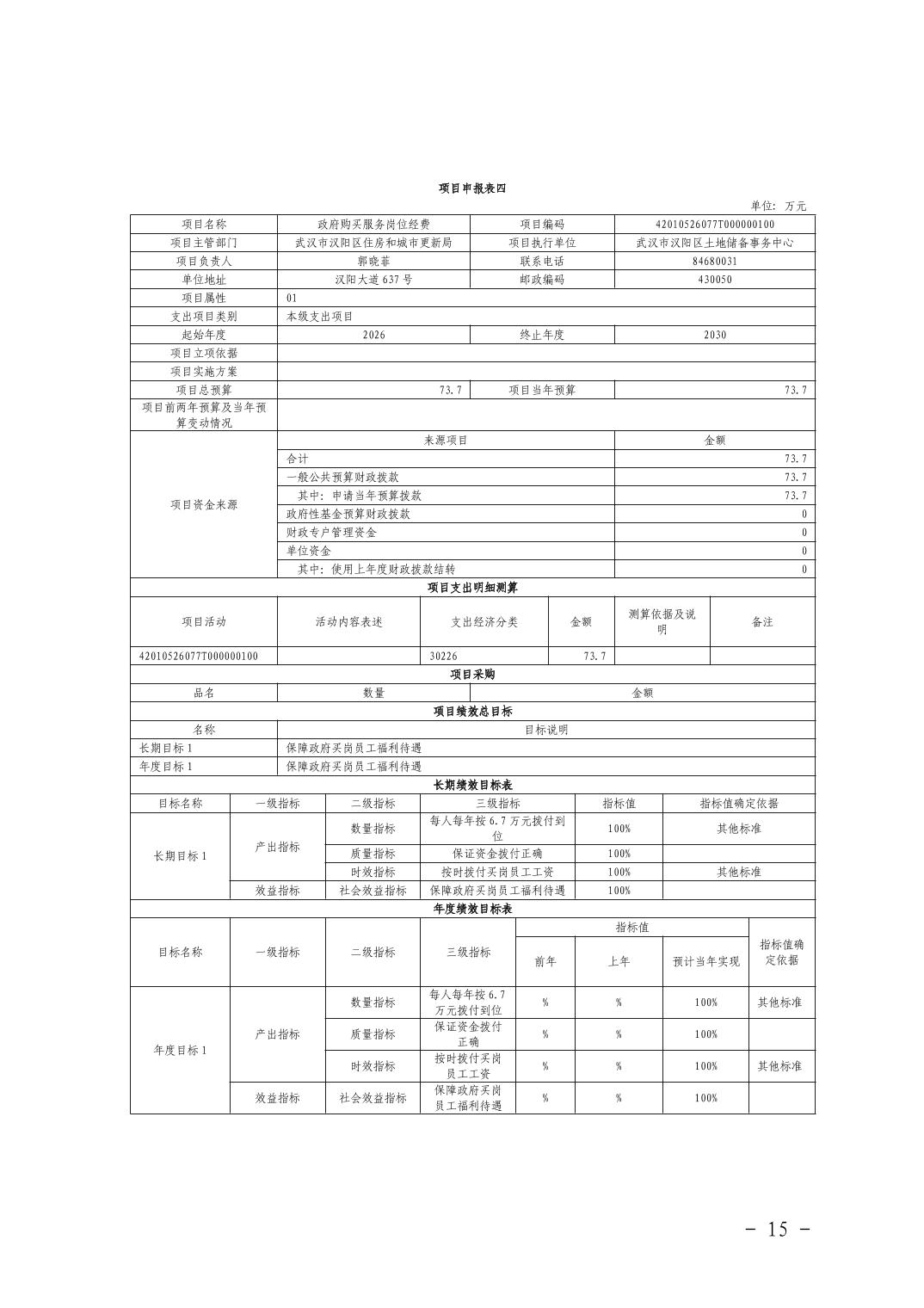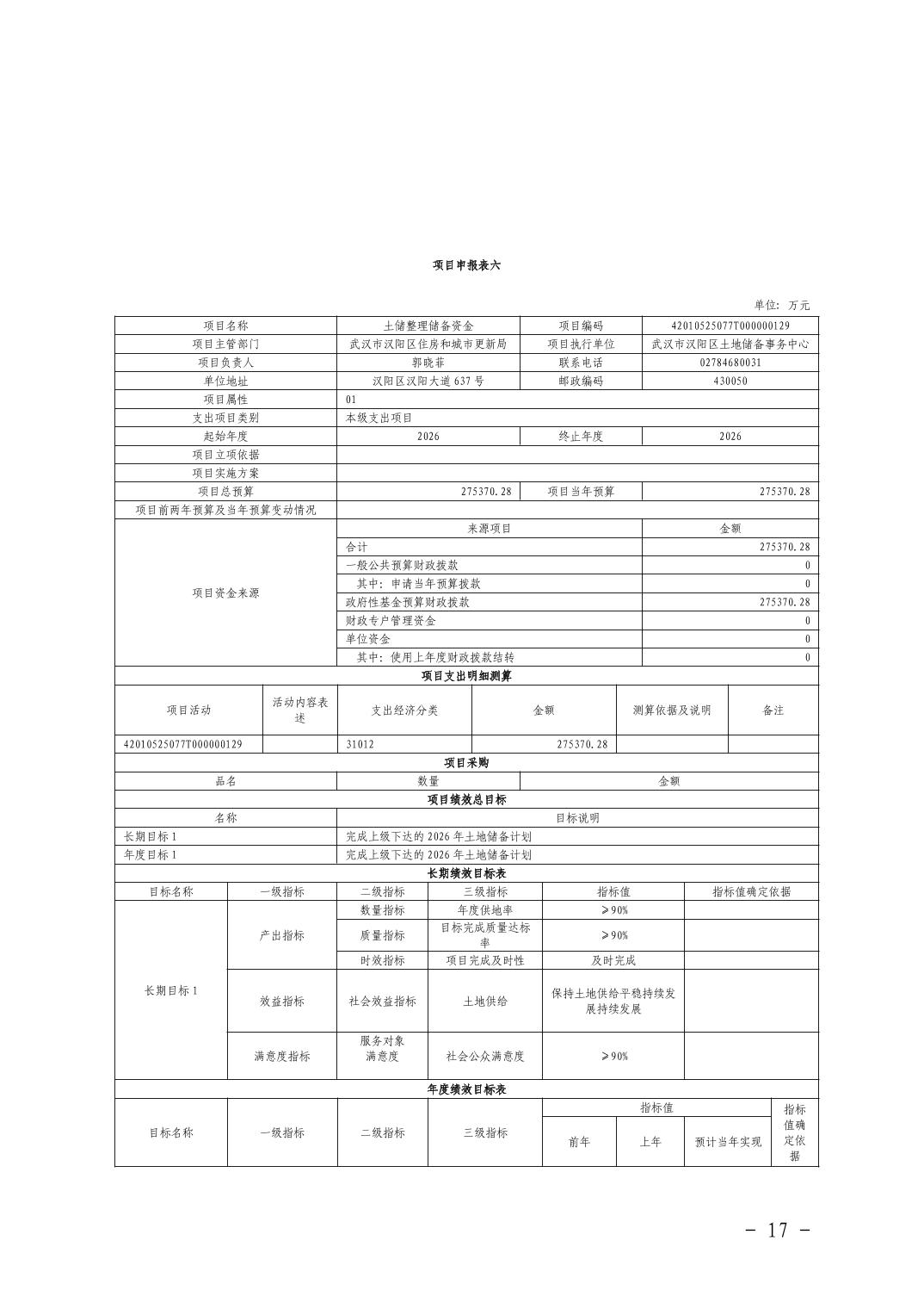 武汉市汉阳区土地储备事务中心2026年部门预算