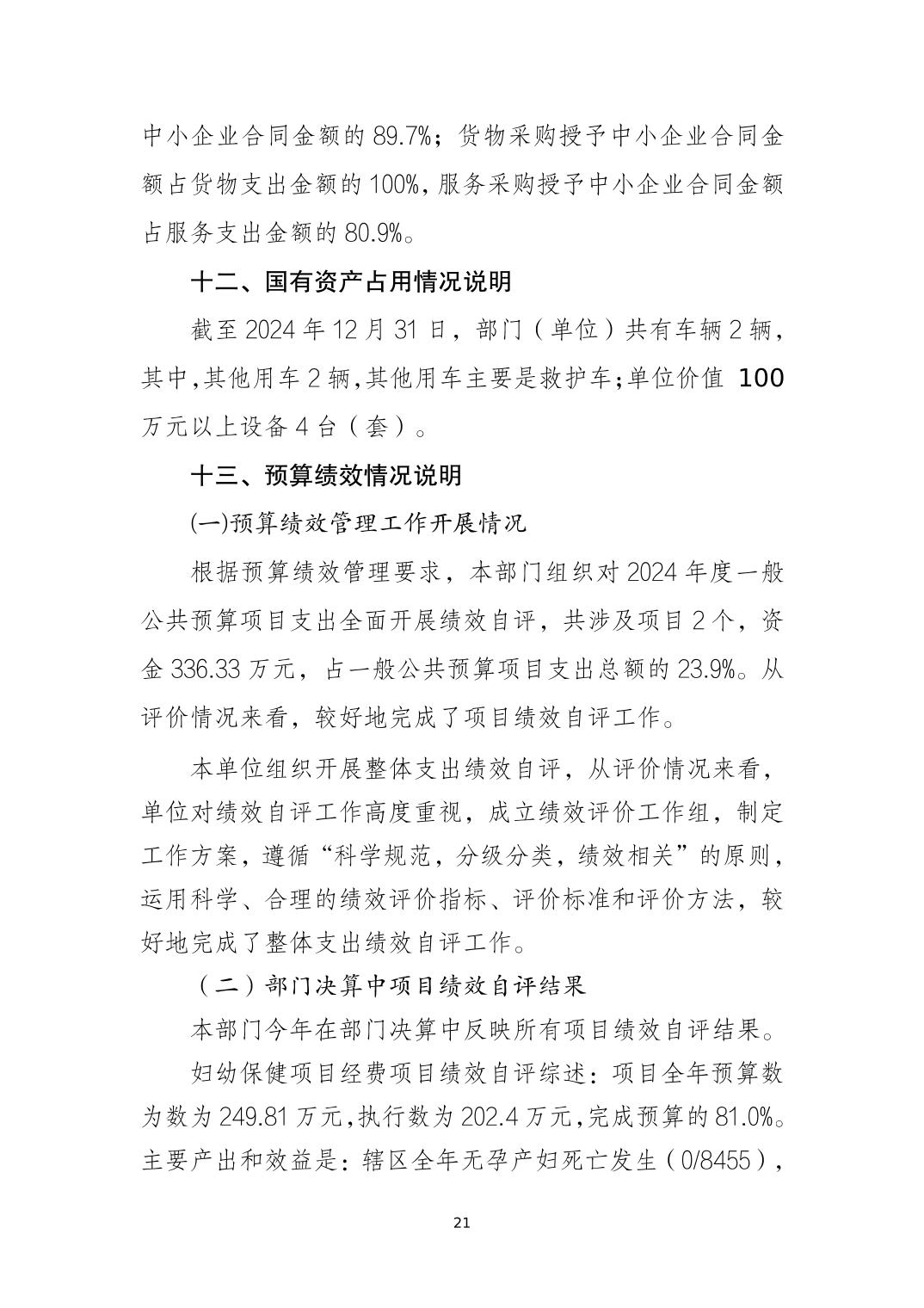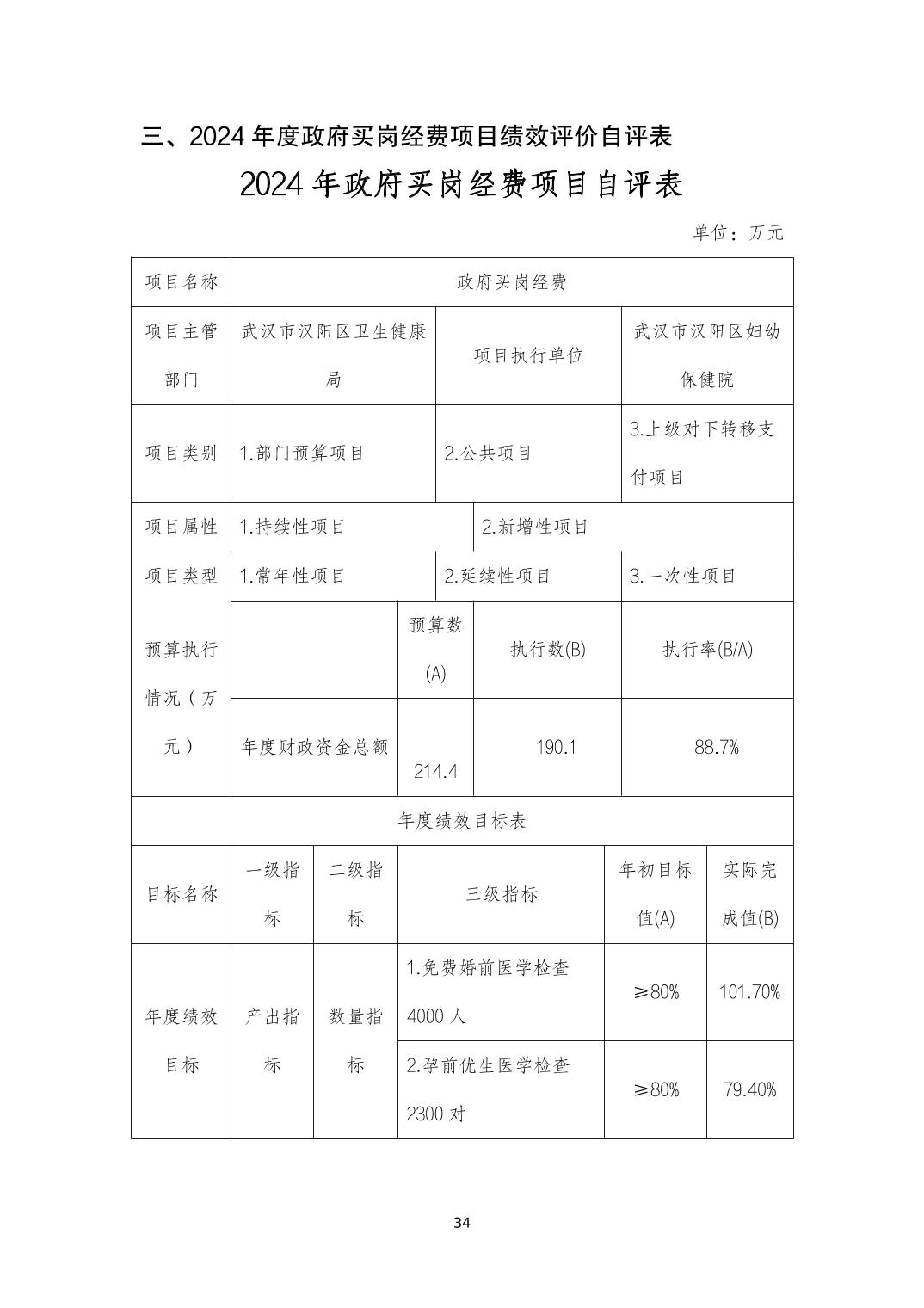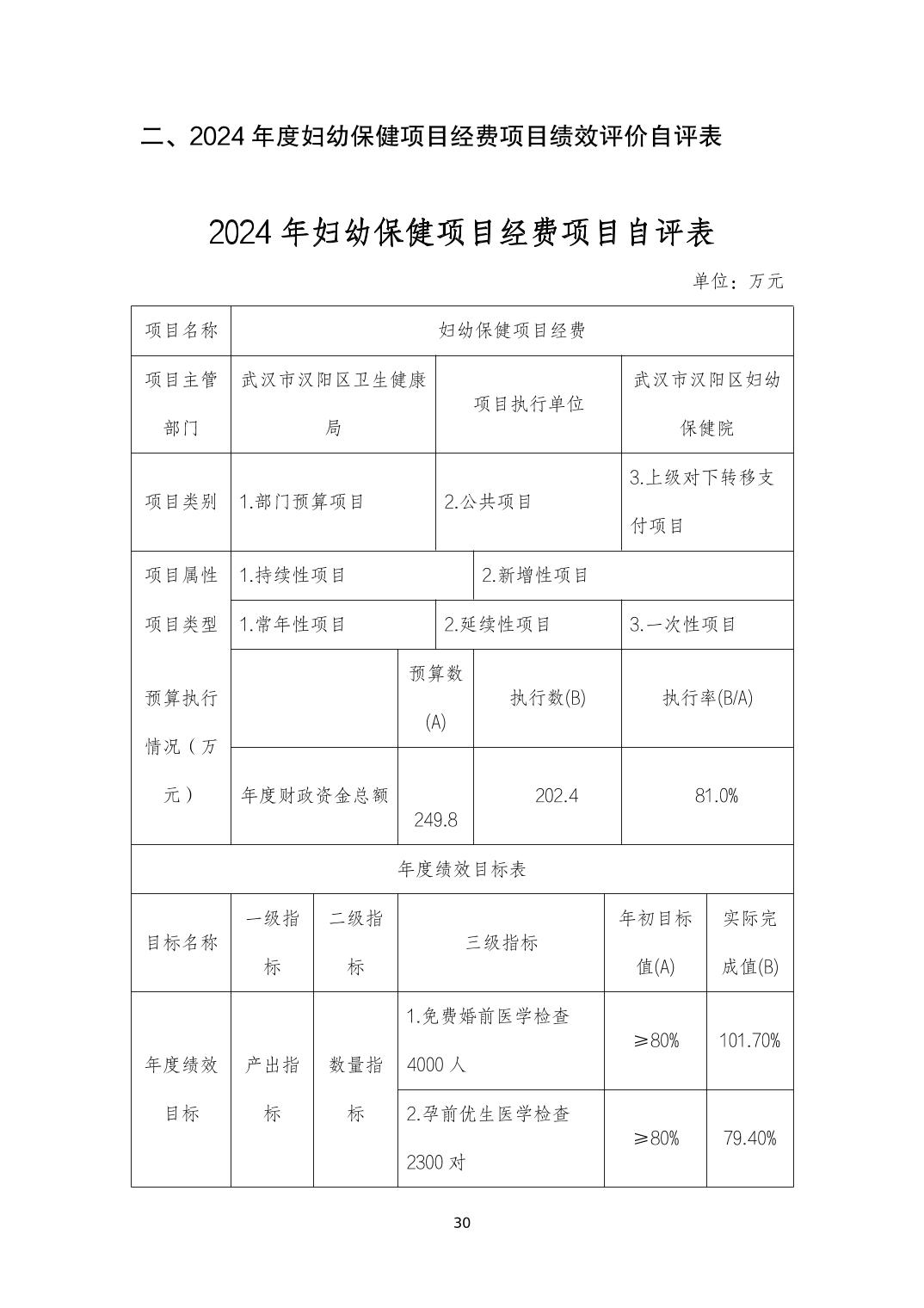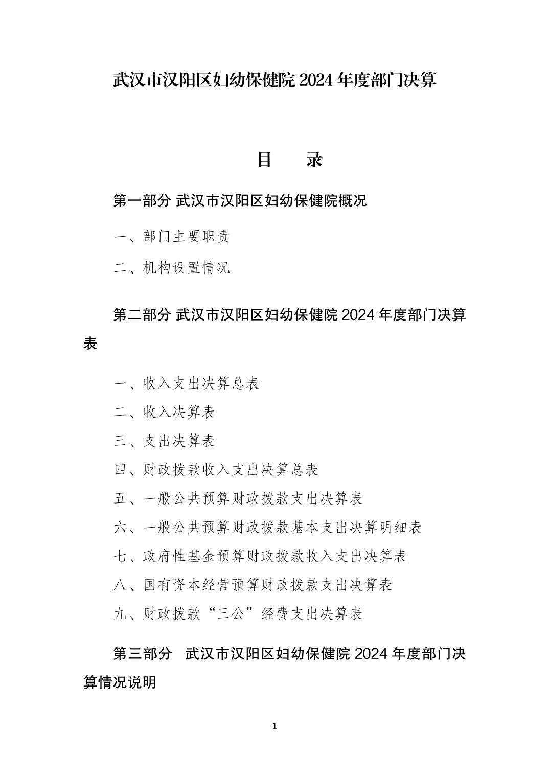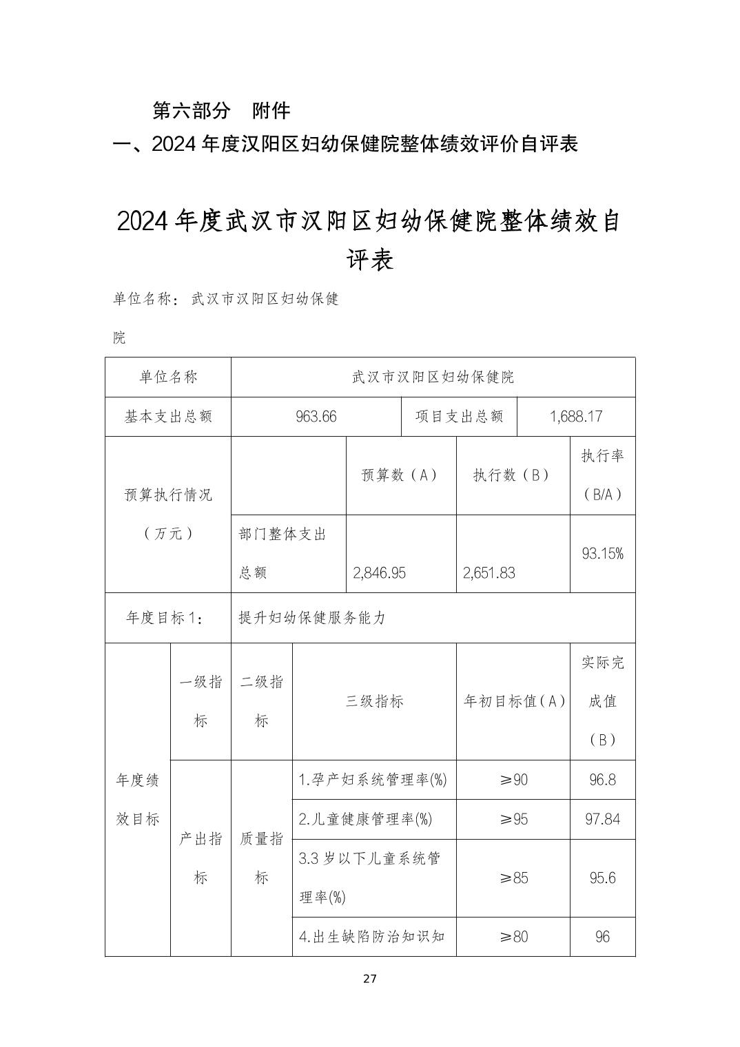 武汉市汉阳区妇幼保健院2024年度部门决算