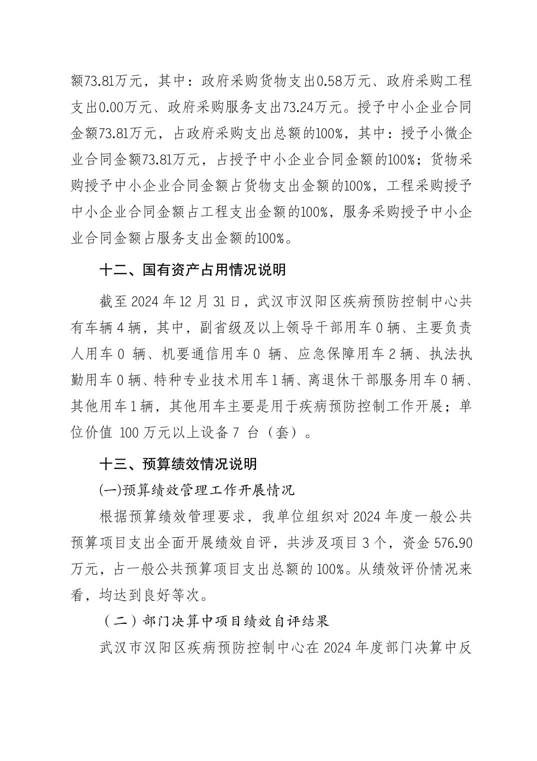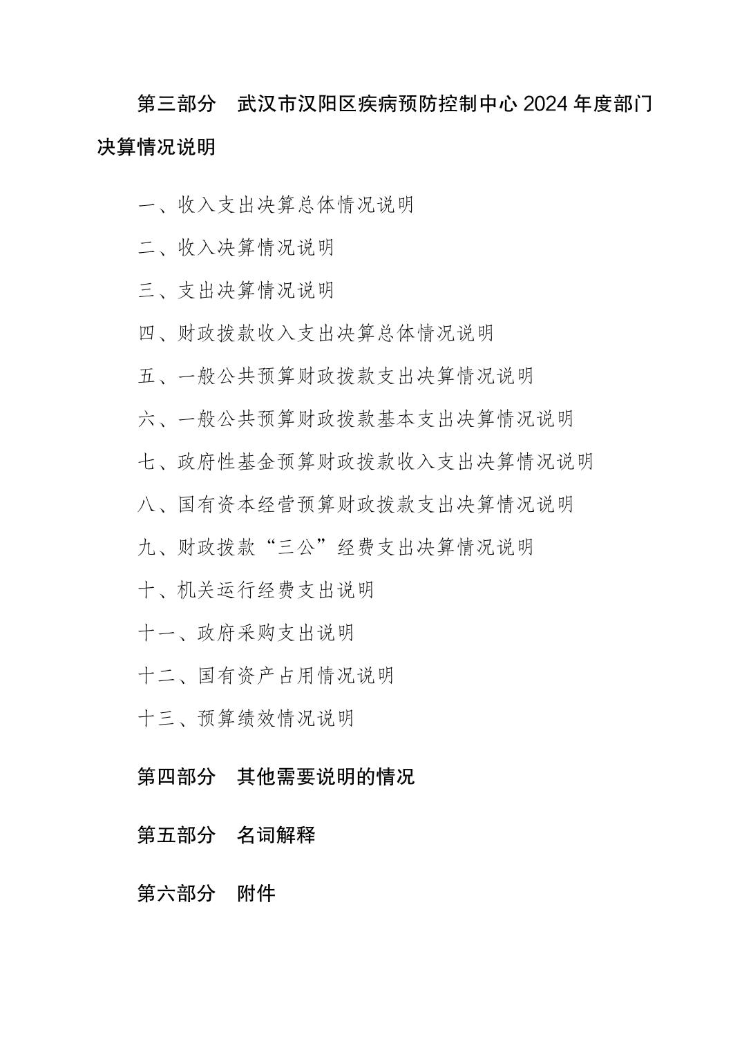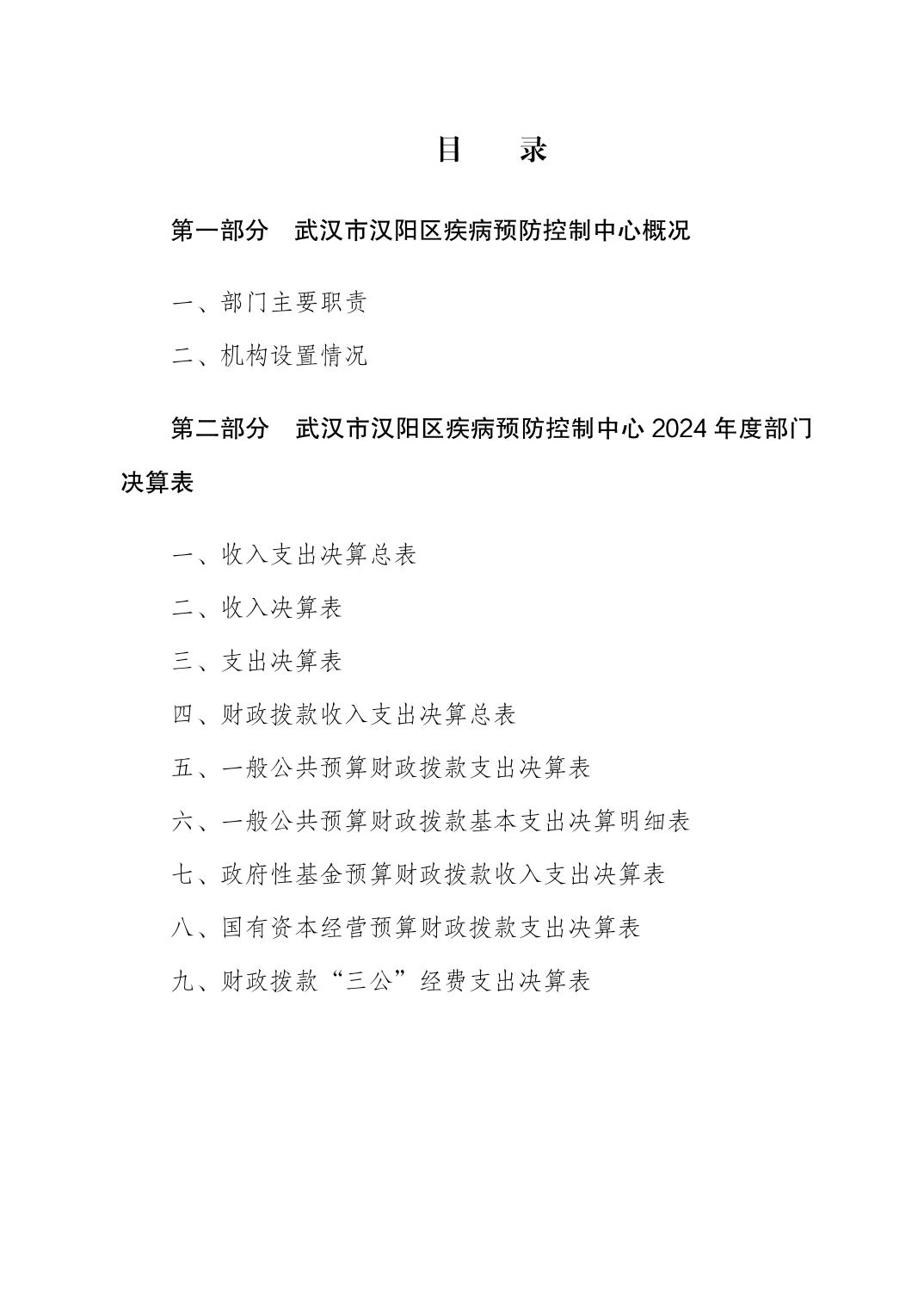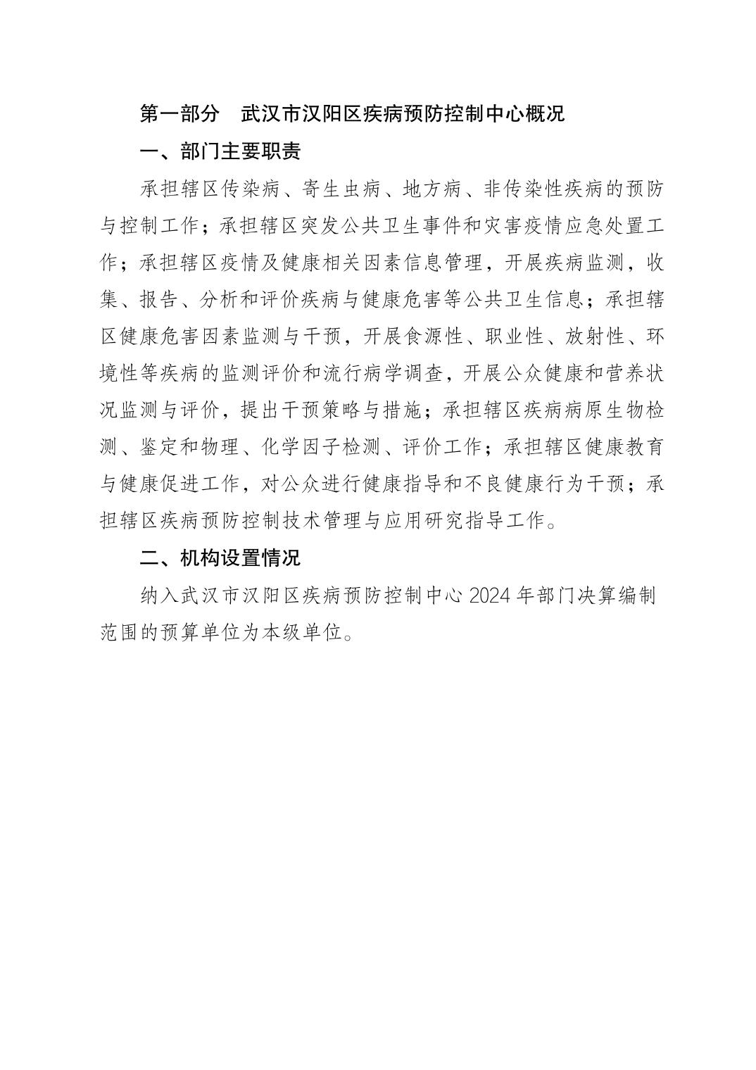 武汉市汉阳区疾病预防控制中心 2024 年度部门决算