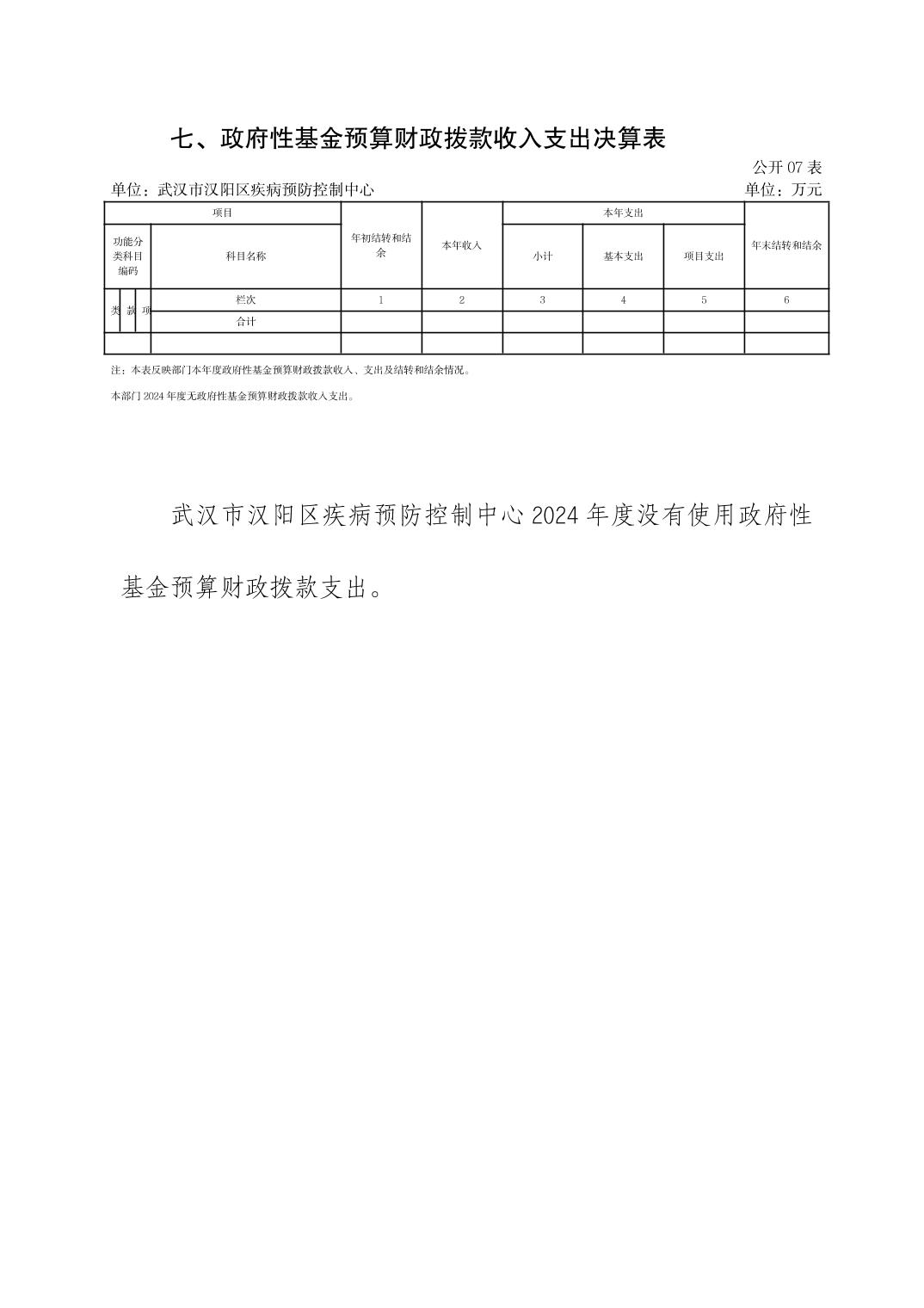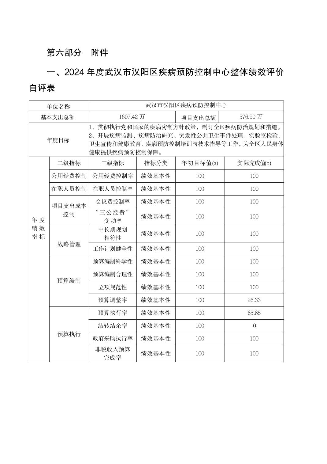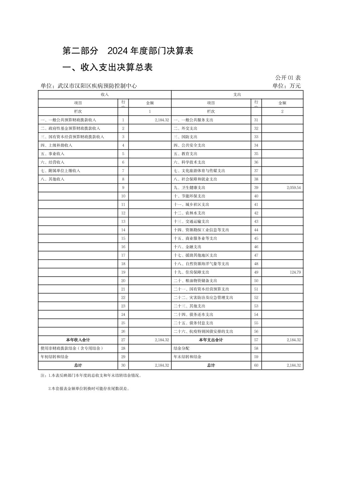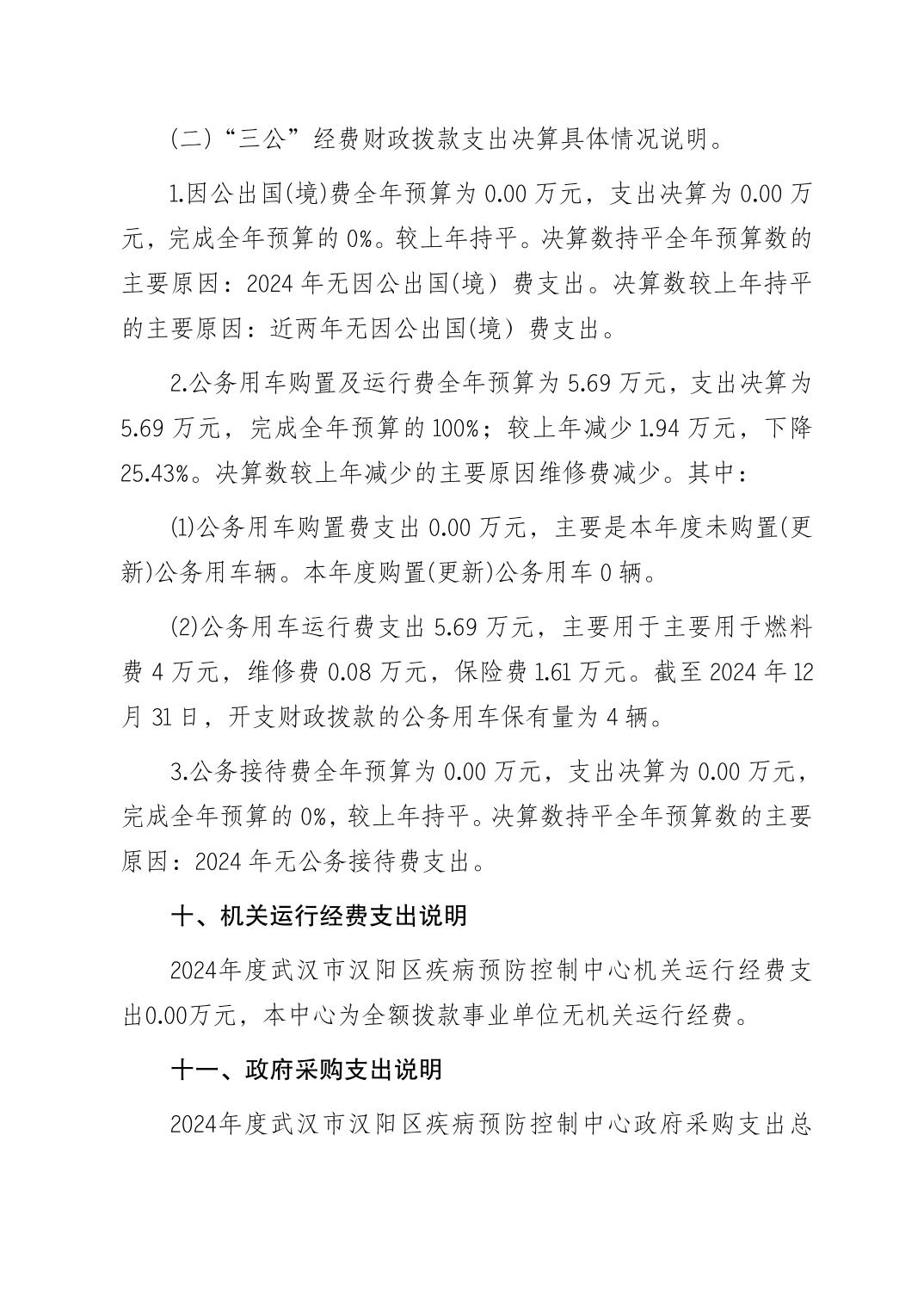 武汉市汉阳区疾病预防控制中心 2024 年度部门决算