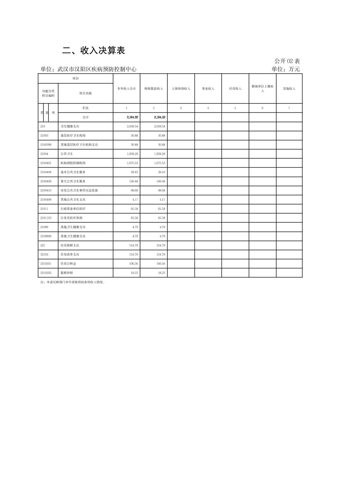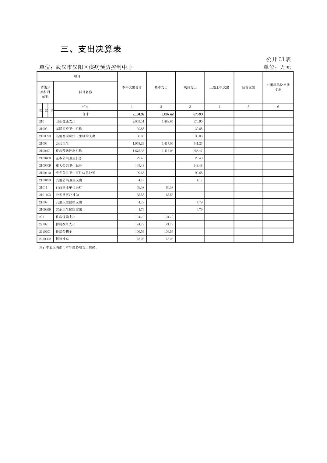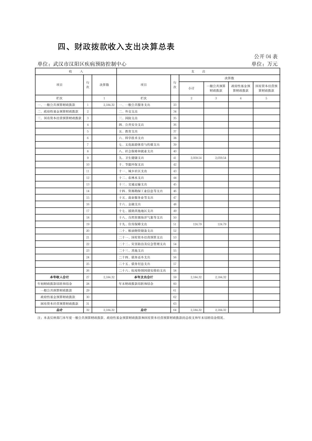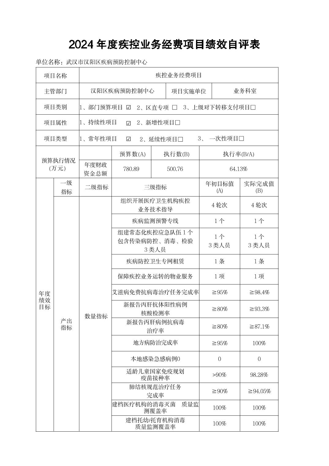 武汉市汉阳区疾病预防控制中心 2024 年度部门决算