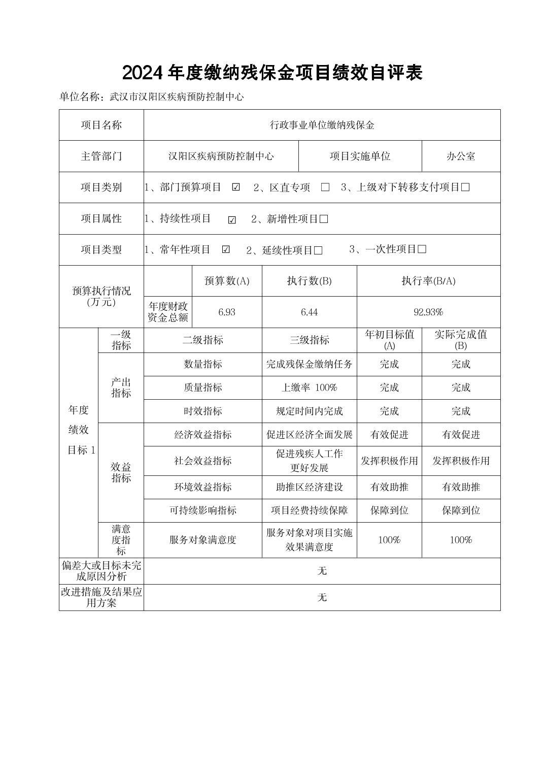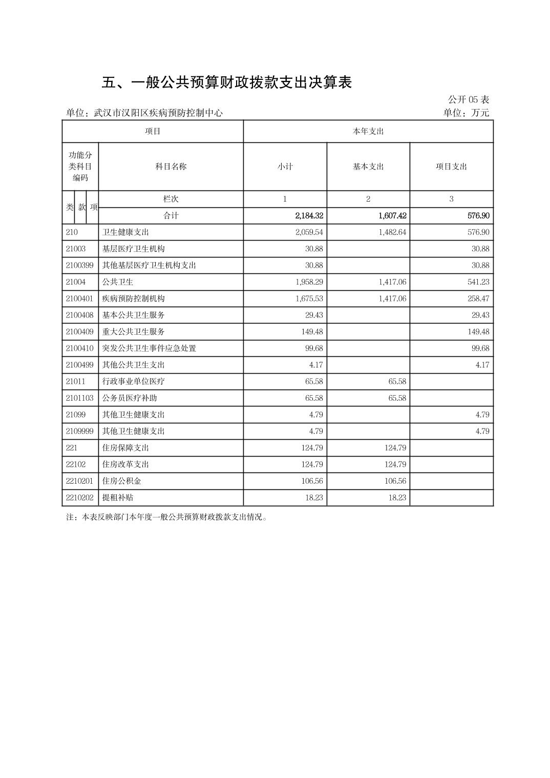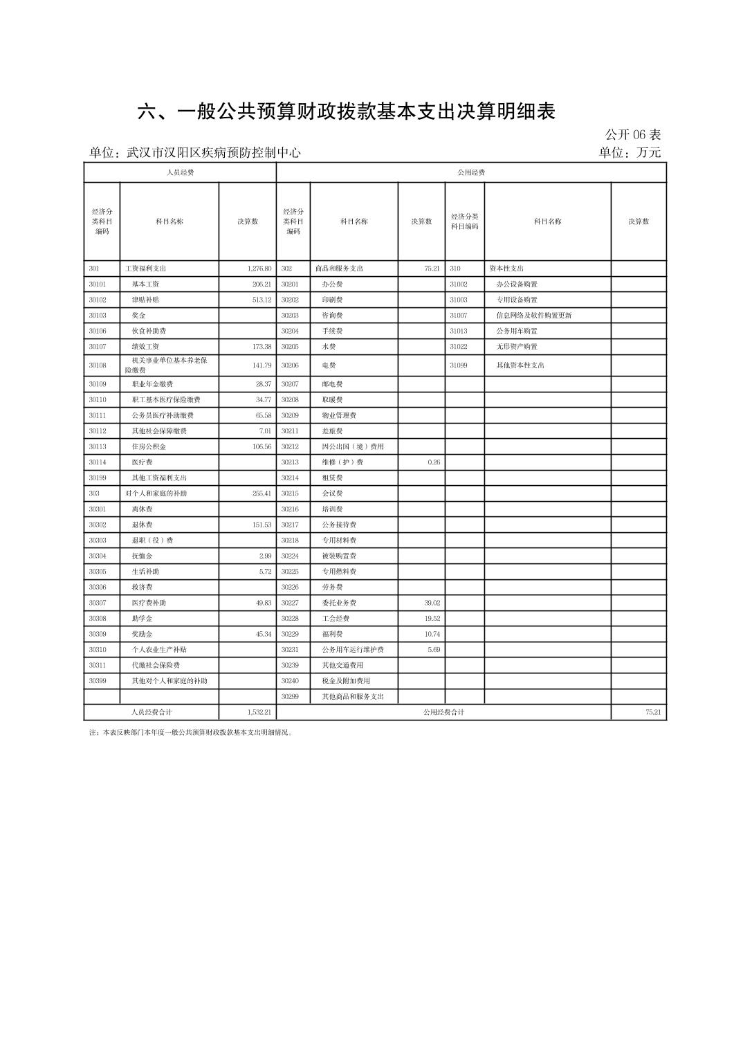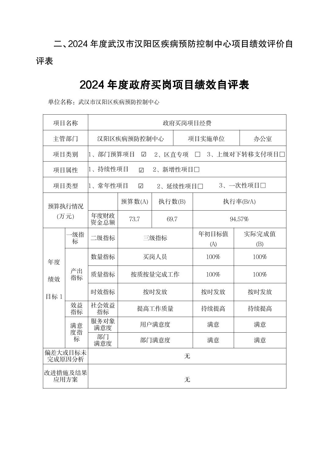武汉市汉阳区疾病预防控制中心 2024 年度部门决算
