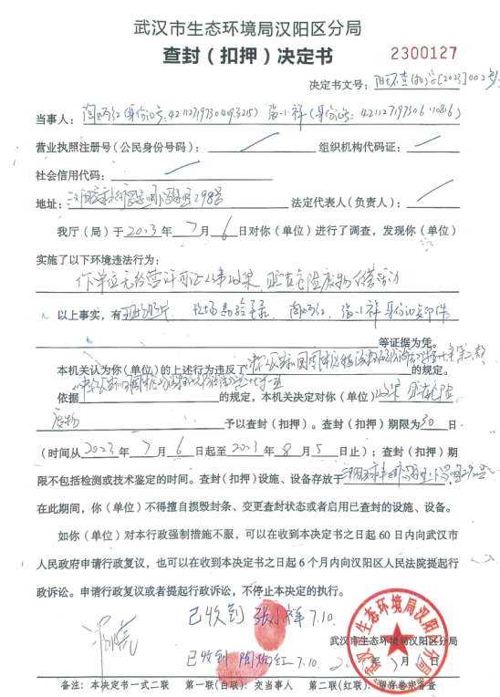 查封(扣押)决定书 (2023 001号)