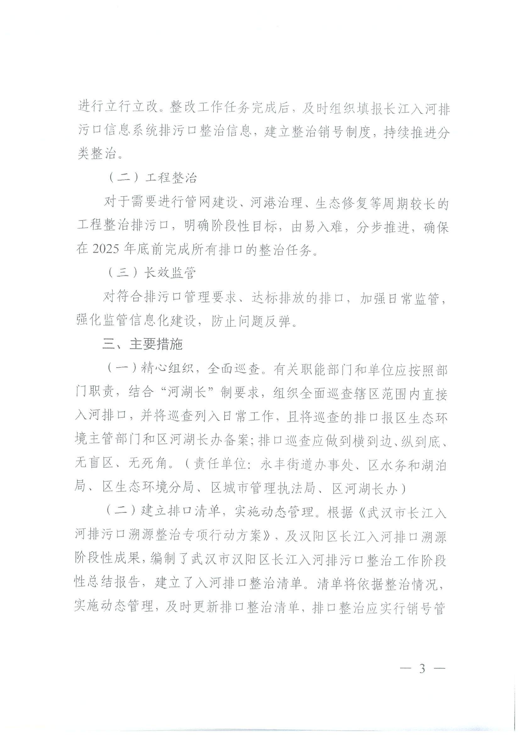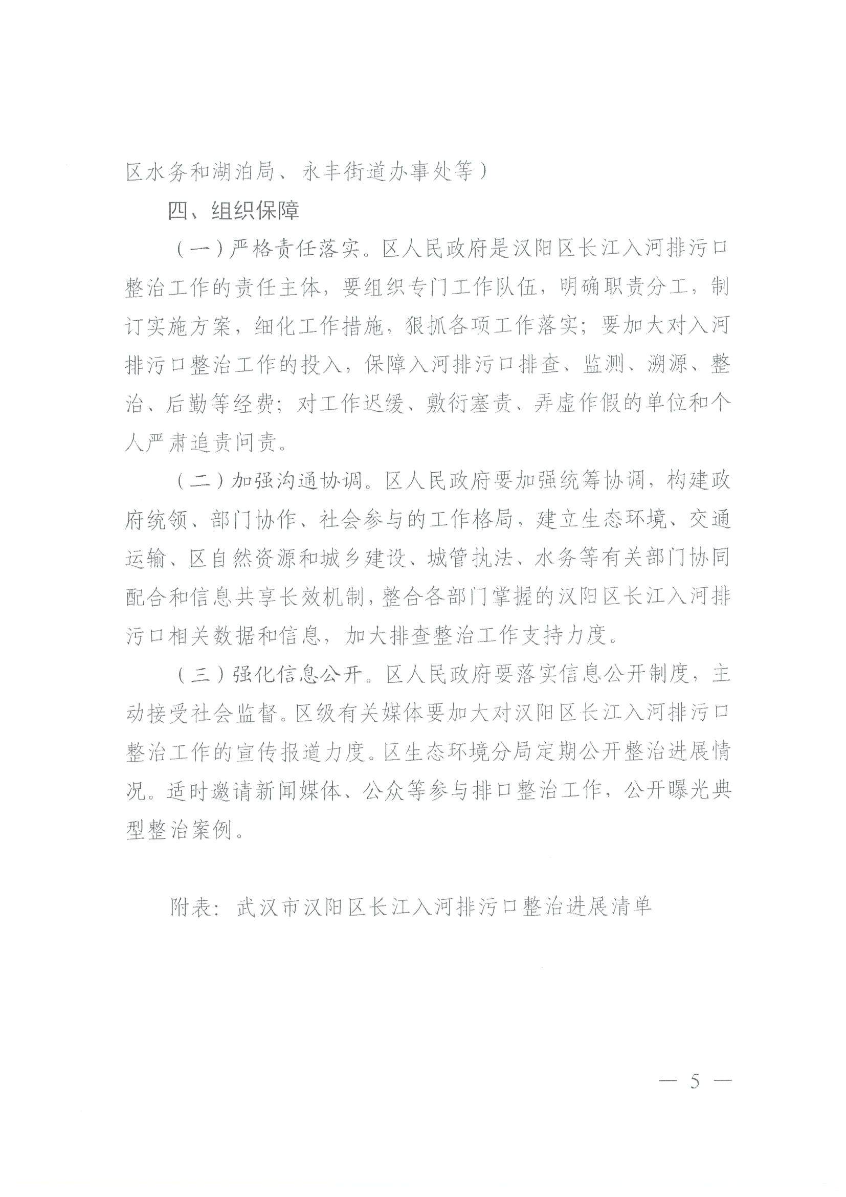 区人民政府办公室关于印发汉阳区长江入河排污口“一口一策”整治方案的通知