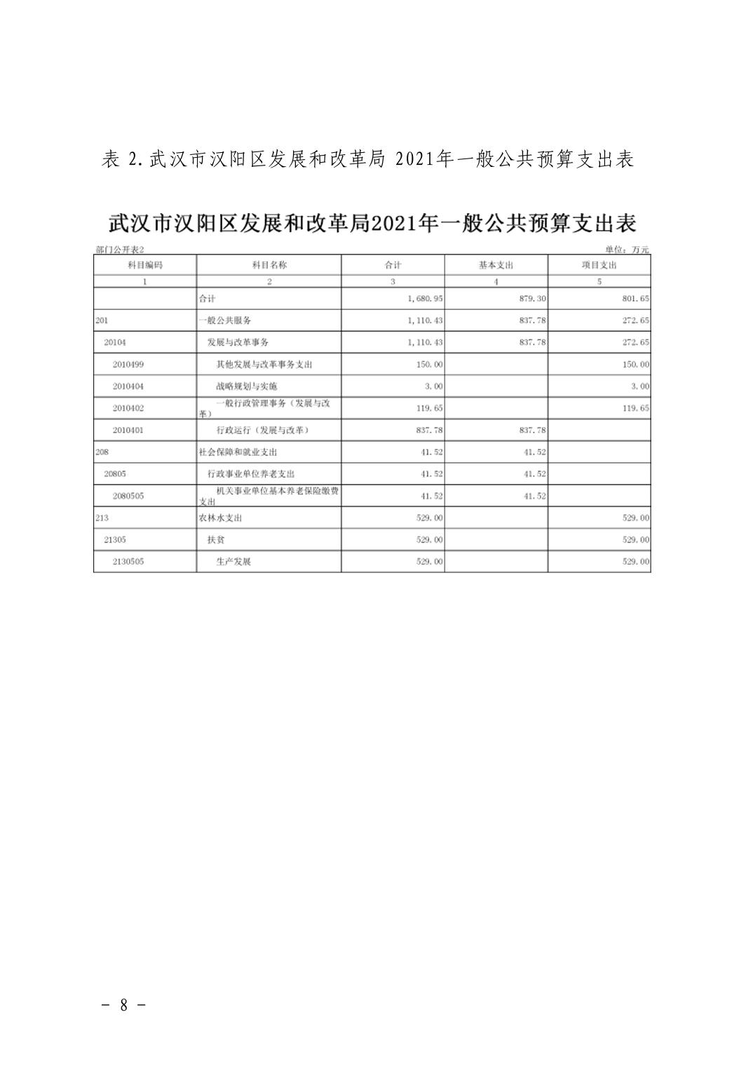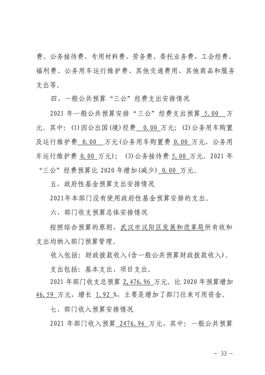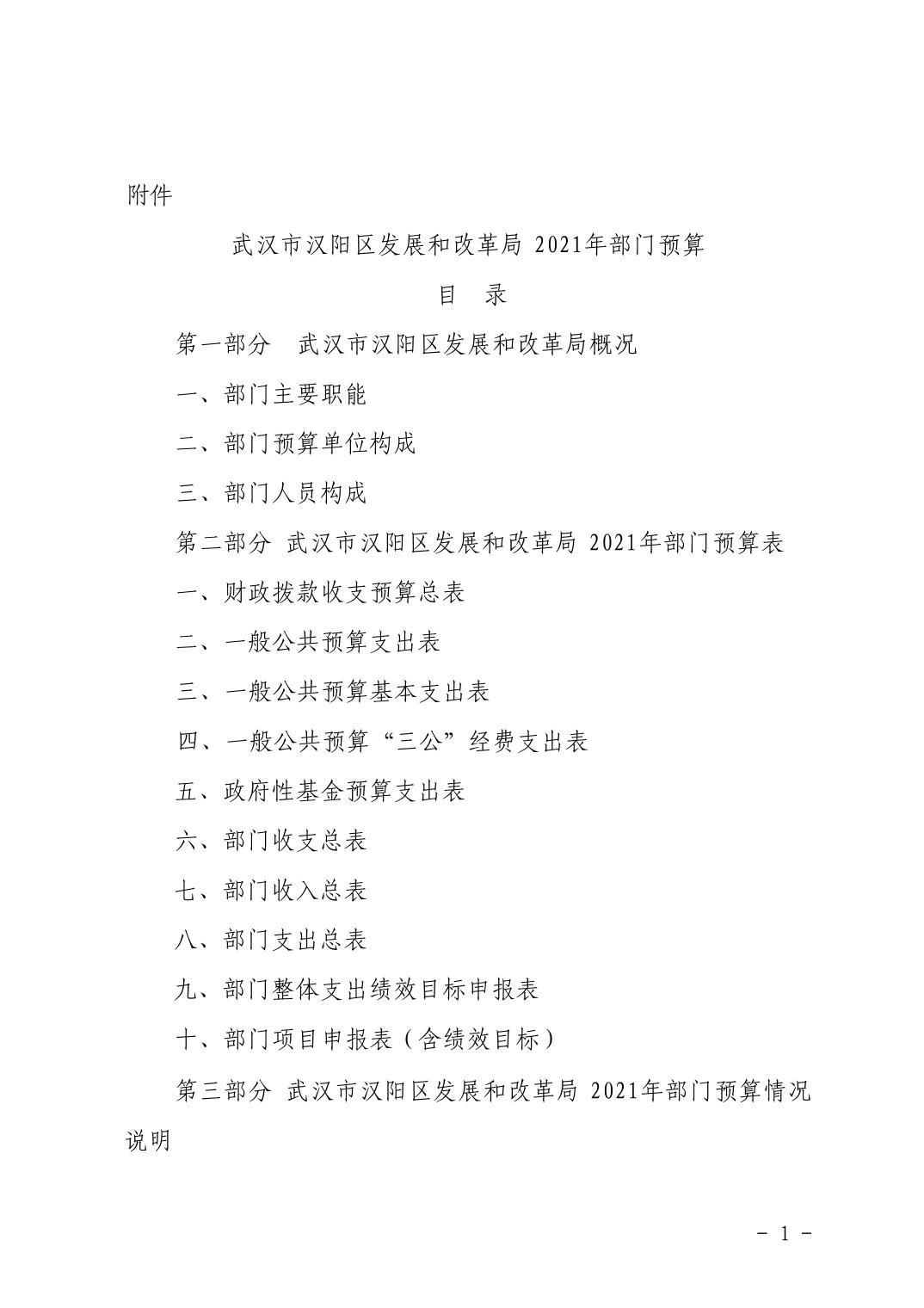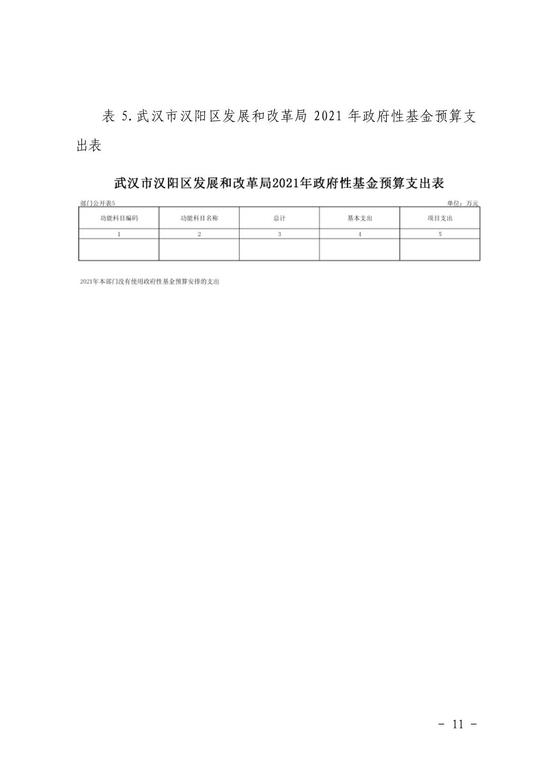 武汉市汉阳区发展和改革局2021年部门预算