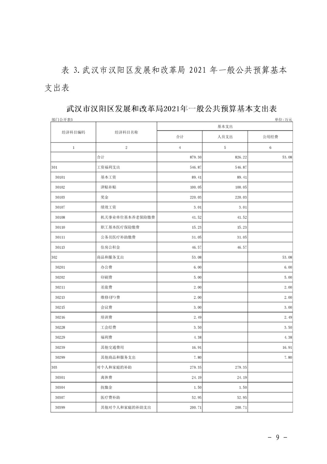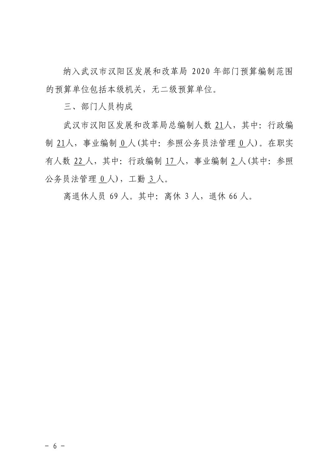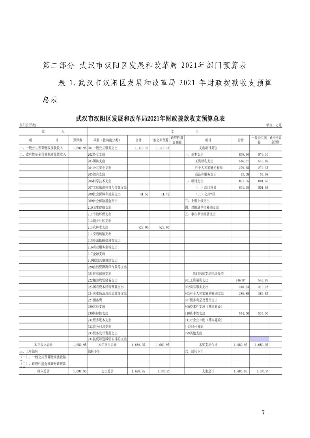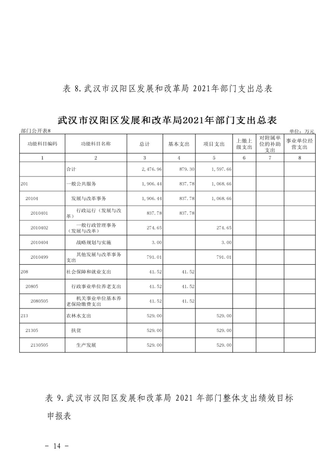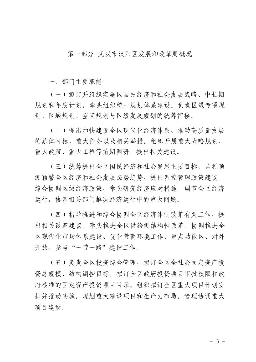 武汉市汉阳区发展和改革局2021年部门预算