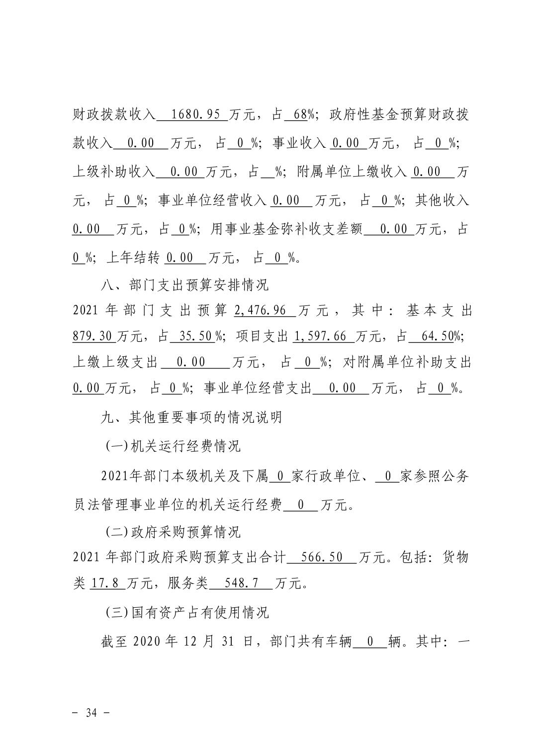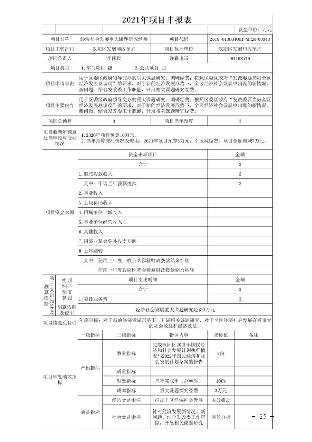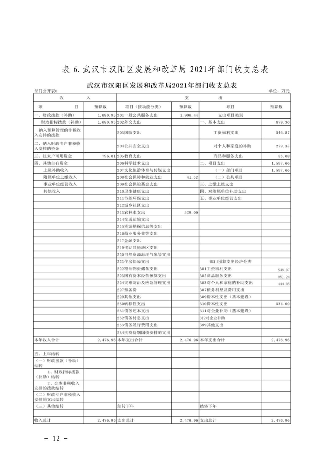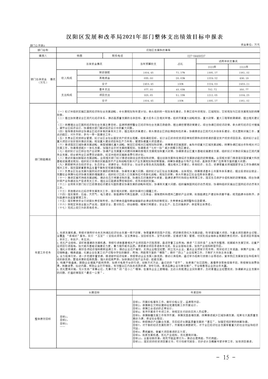 武汉市汉阳区发展和改革局2021年部门预算