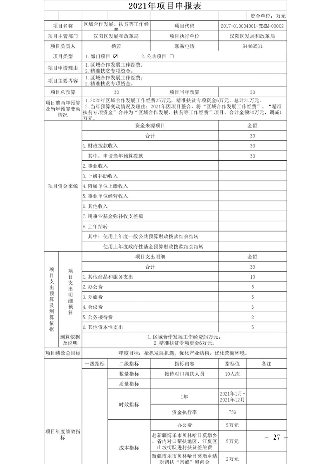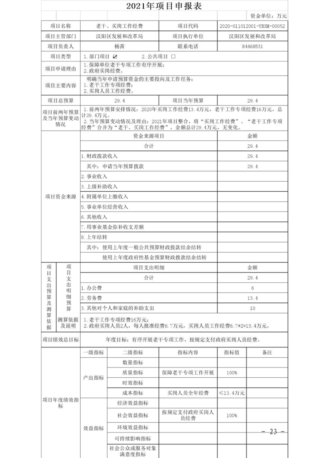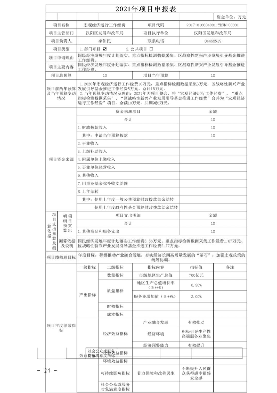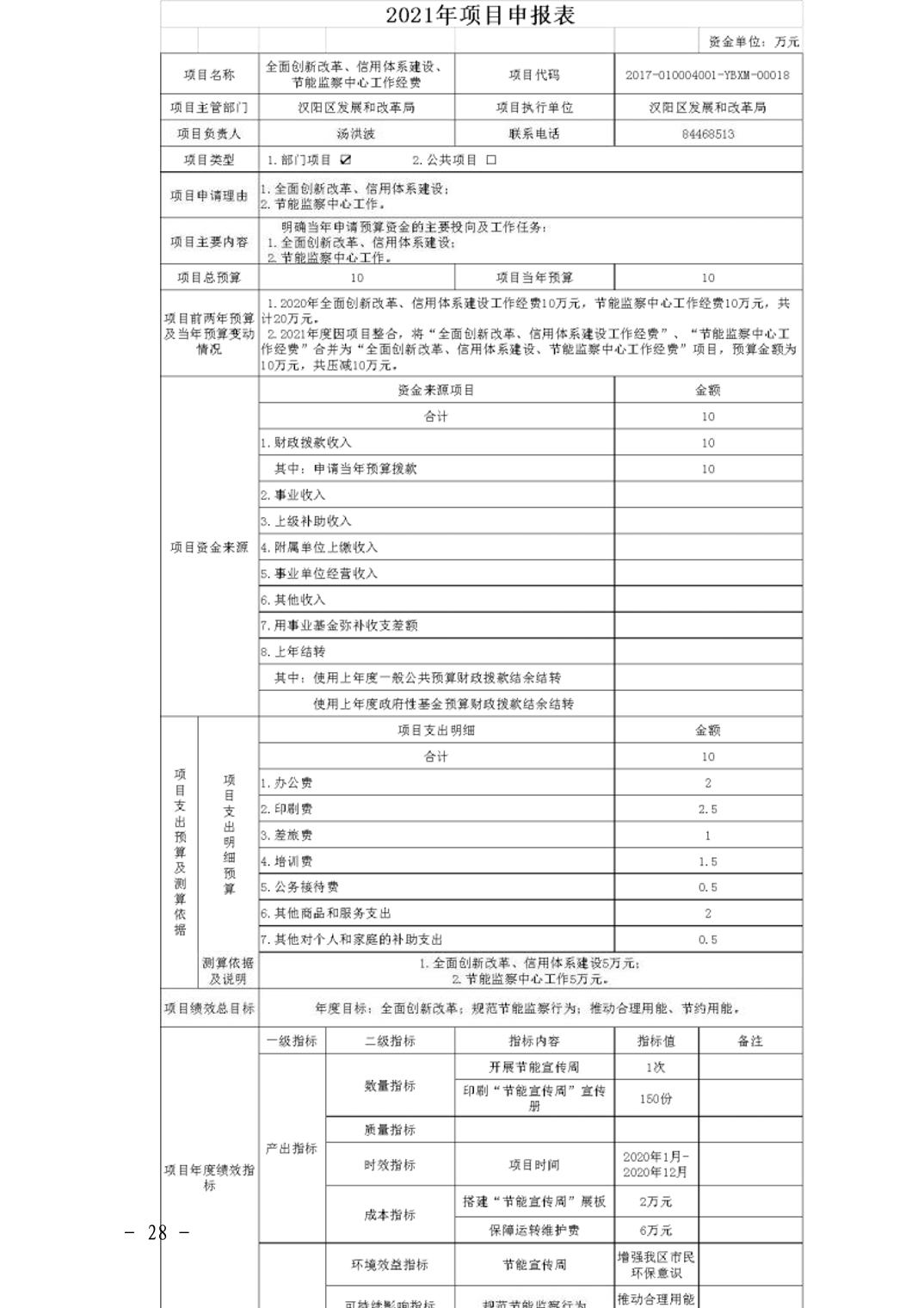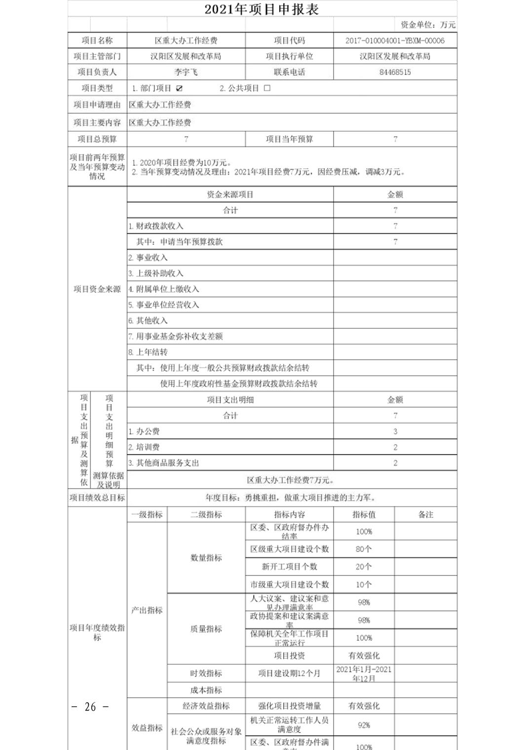 武汉市汉阳区发展和改革局2021年部门预算