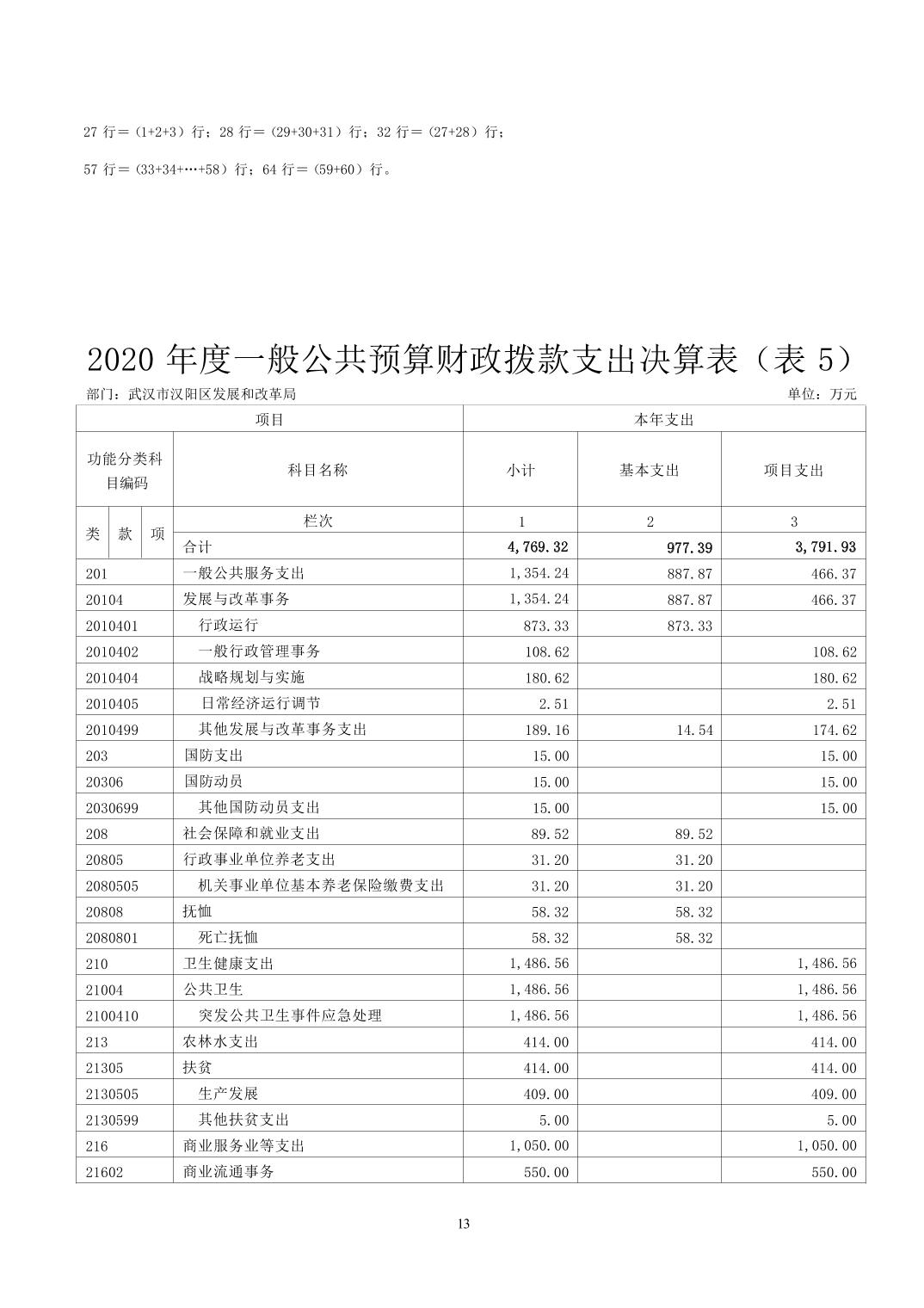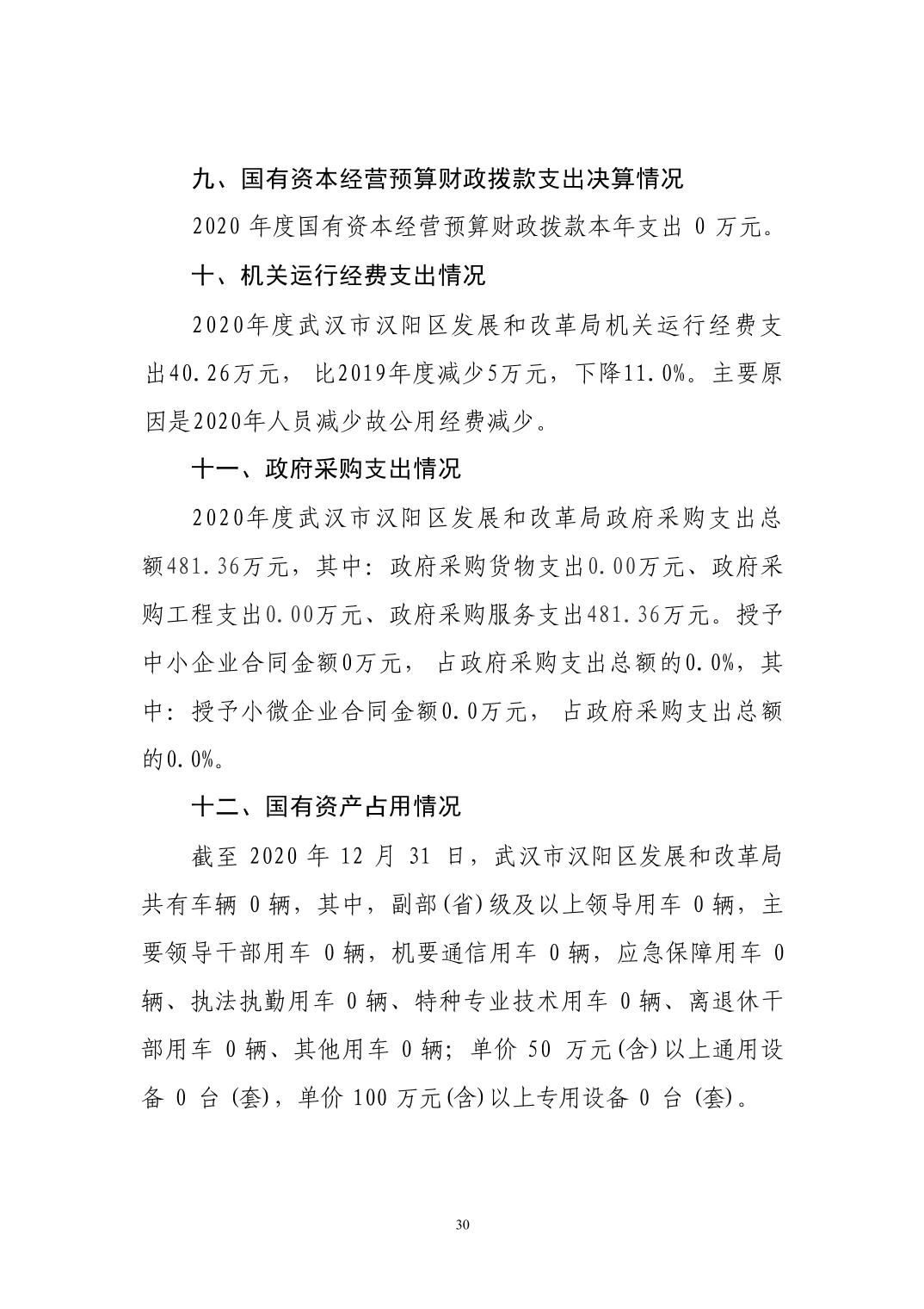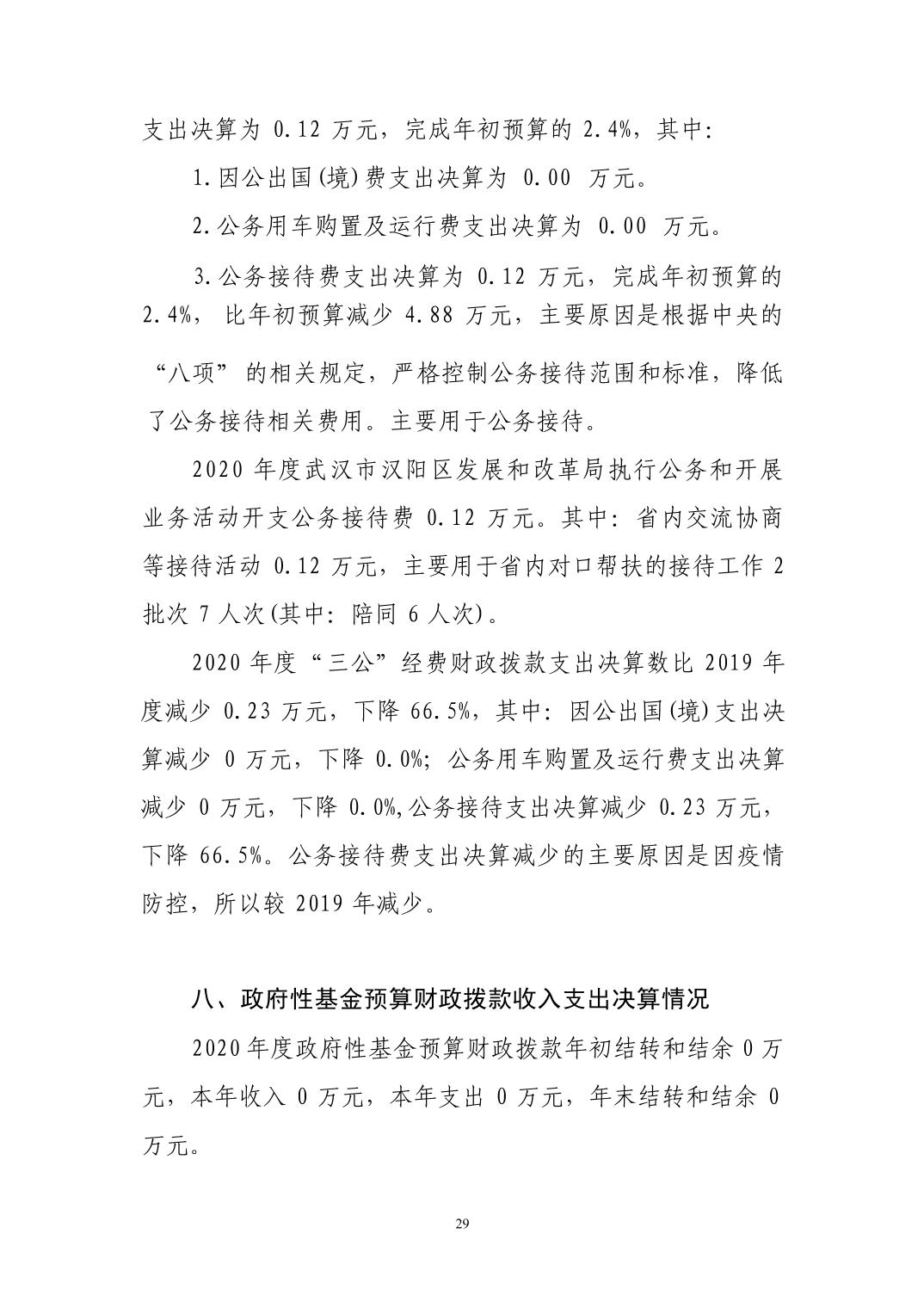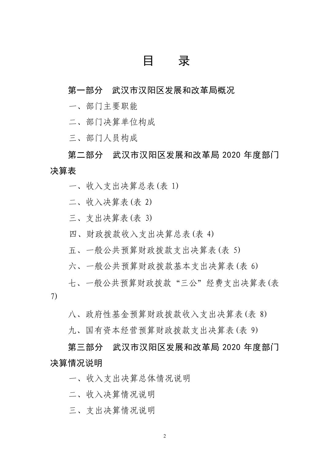 武汉市汉阳区发展和改革局-2020年度部门决算公开文件