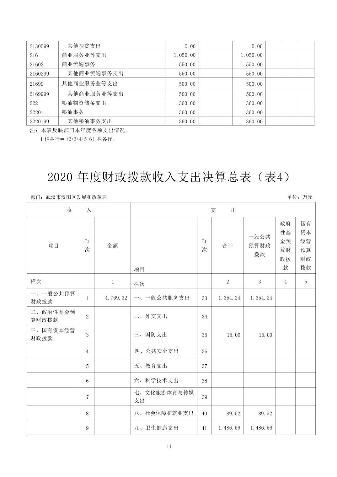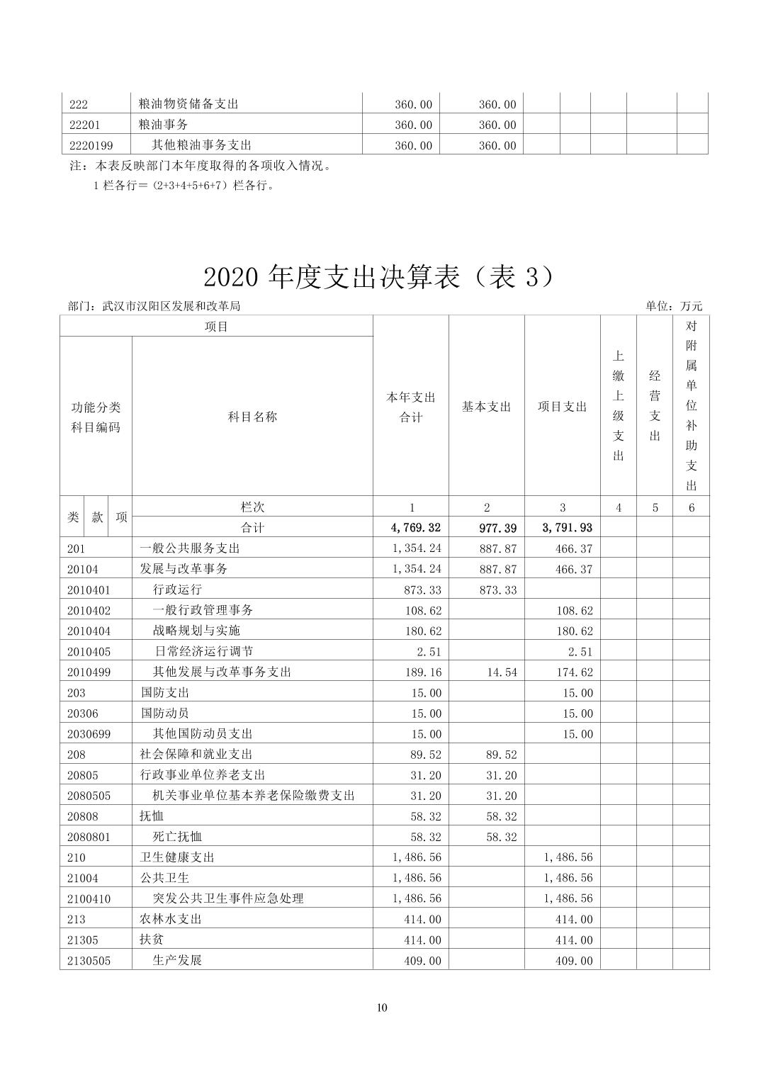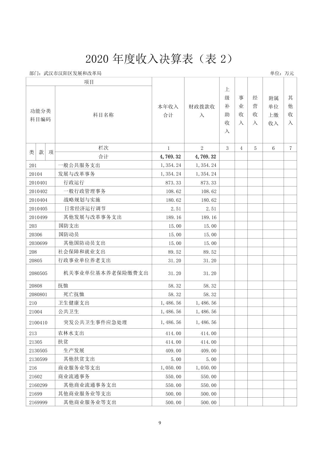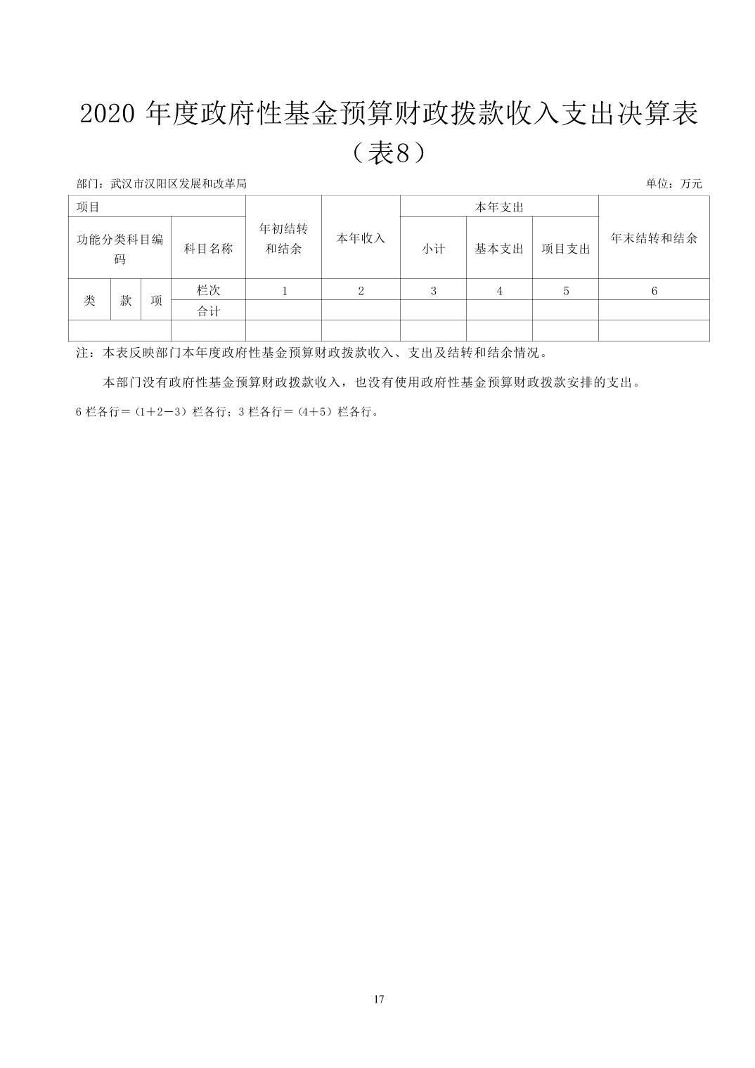 武汉市汉阳区发展和改革局-2020年度部门决算公开文件