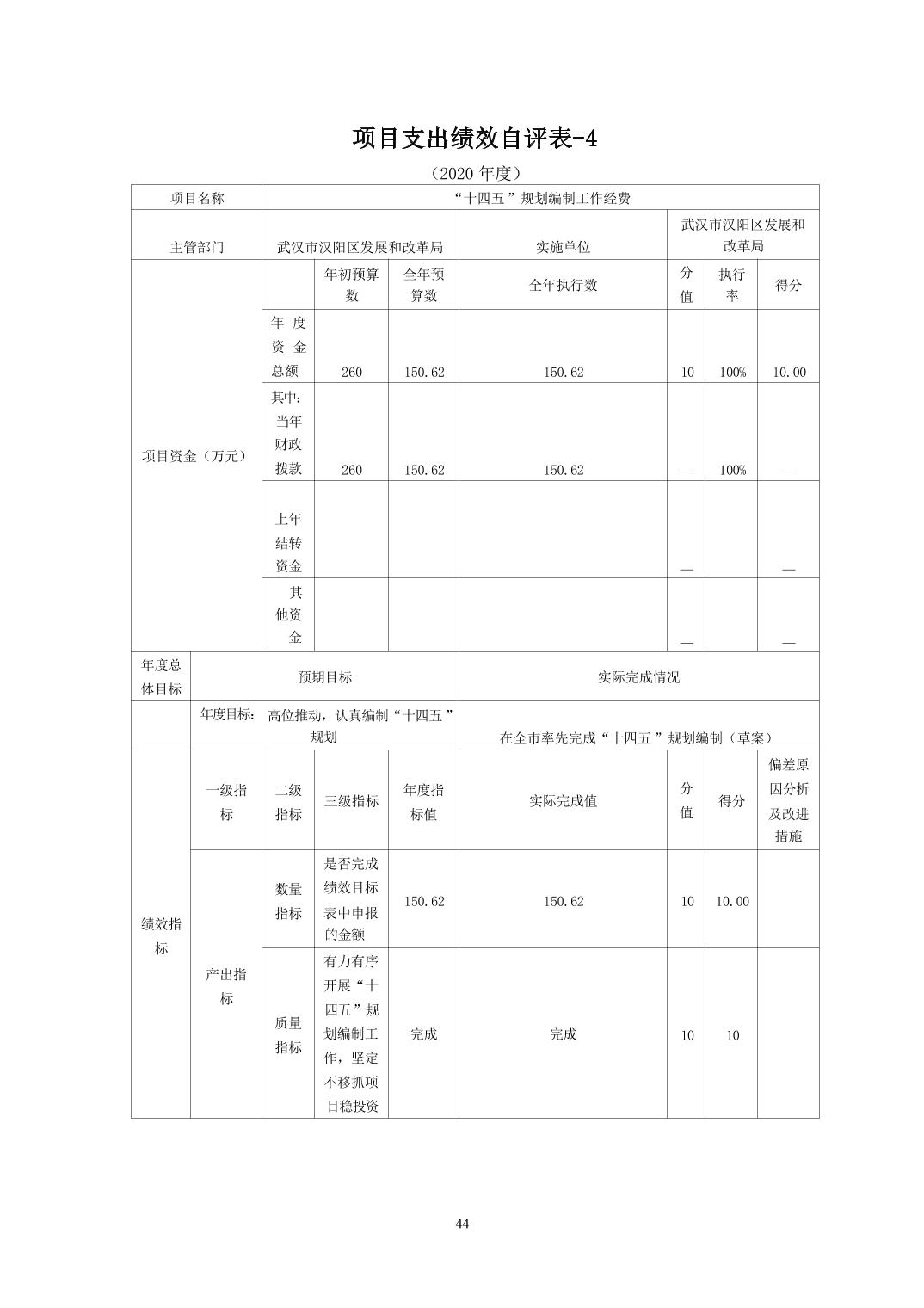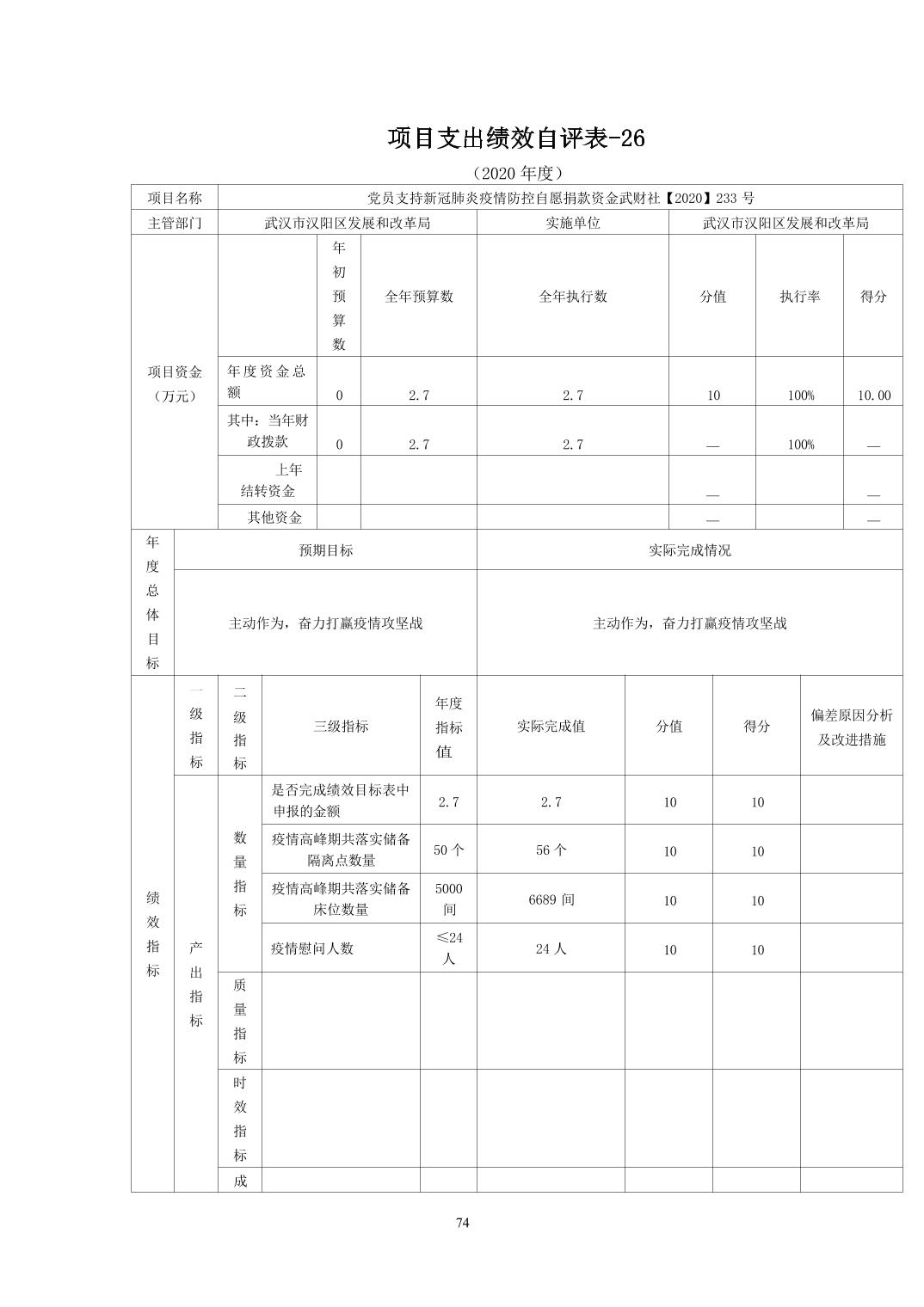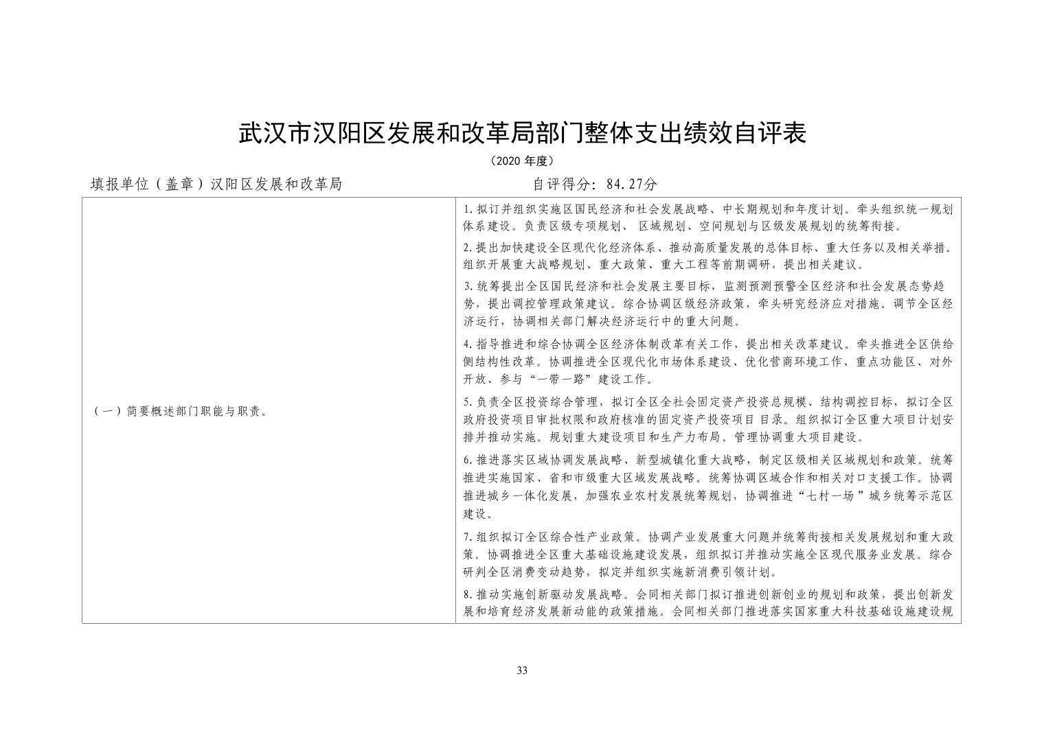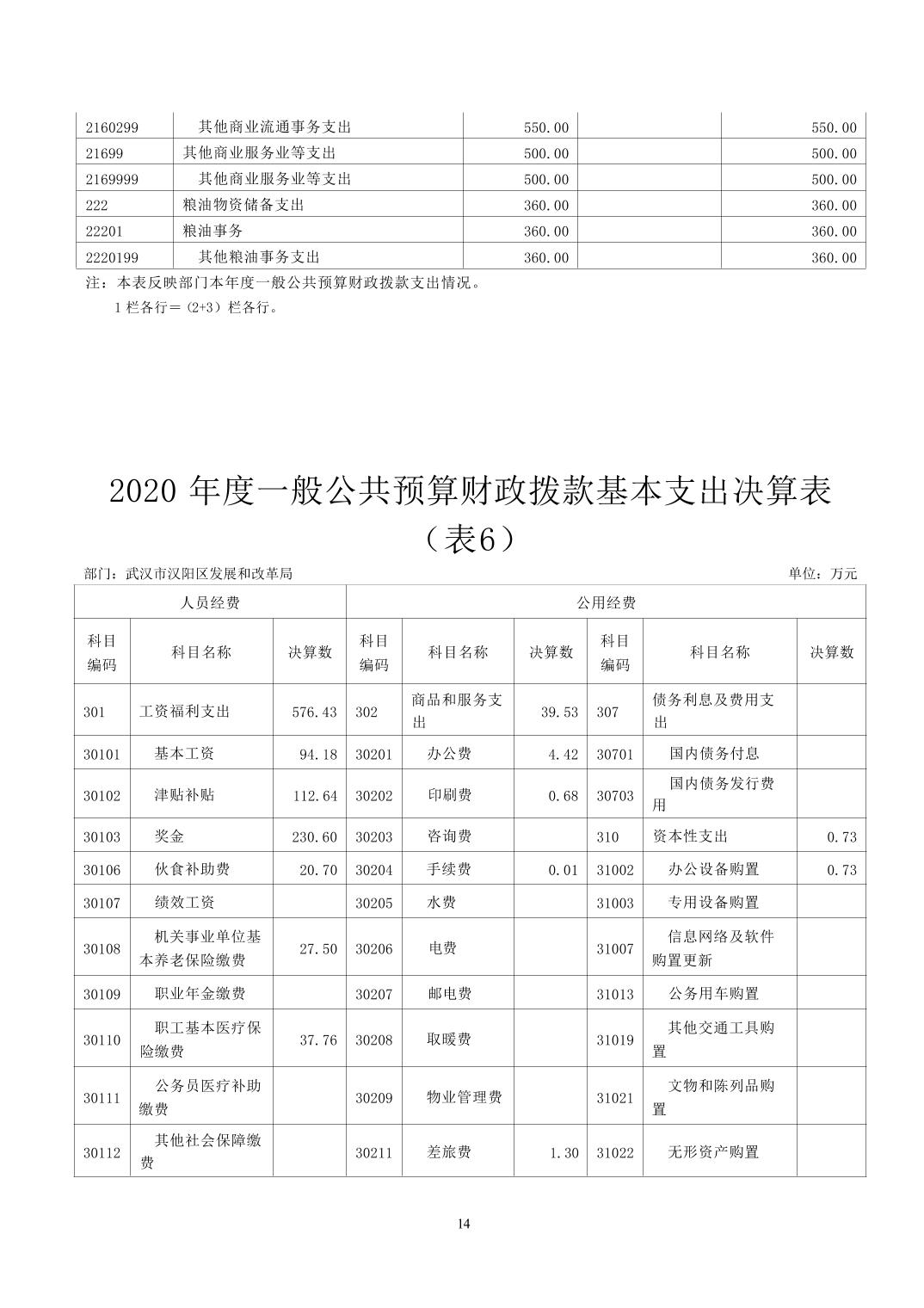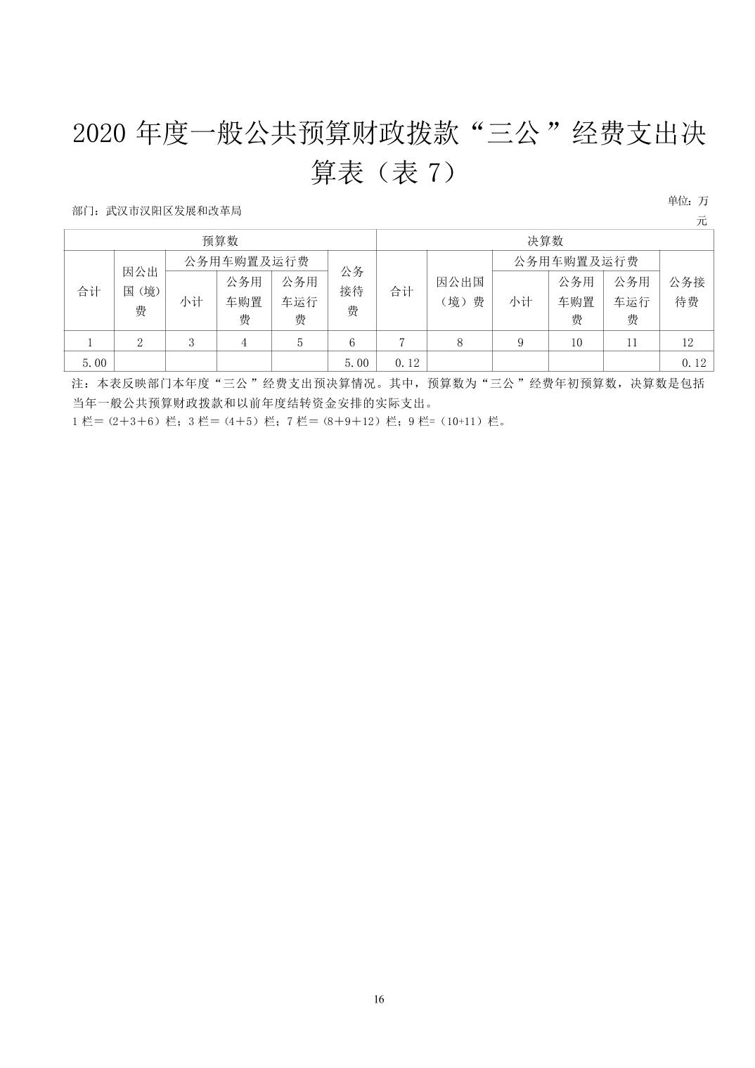 武汉市汉阳区发展和改革局-2020年度部门决算公开文件