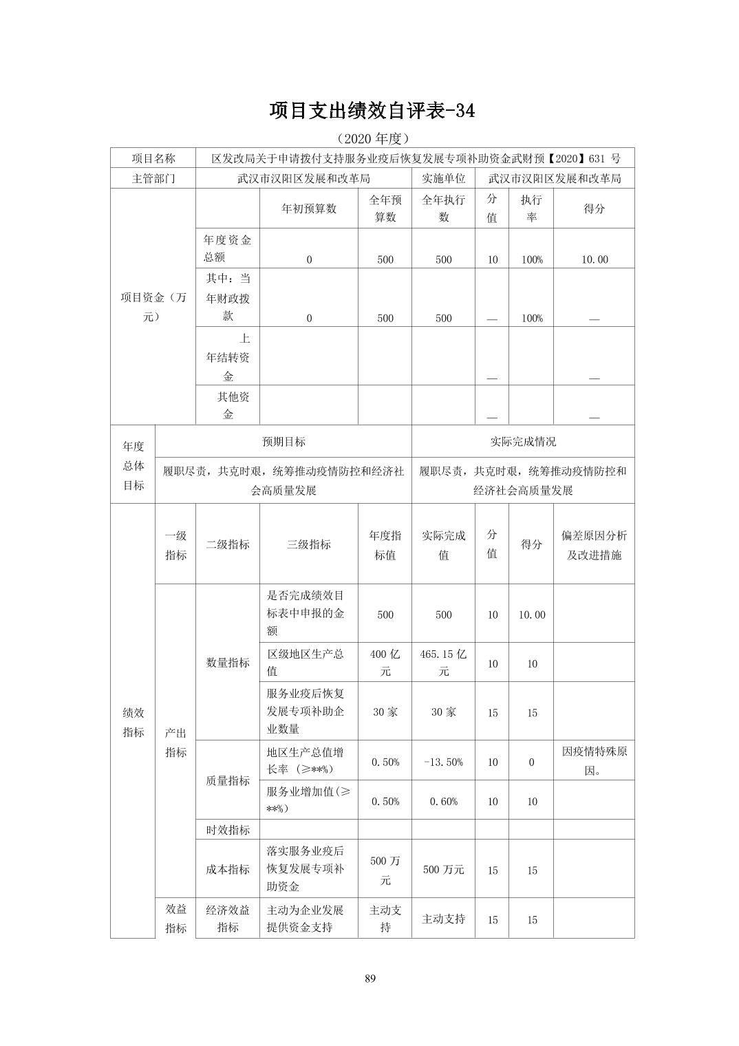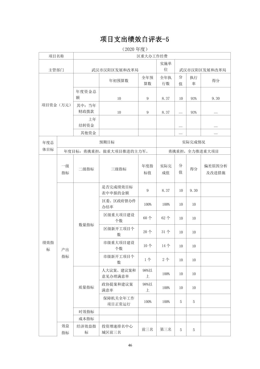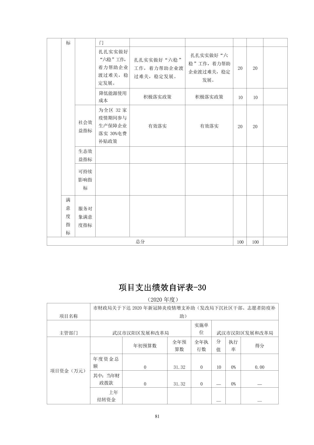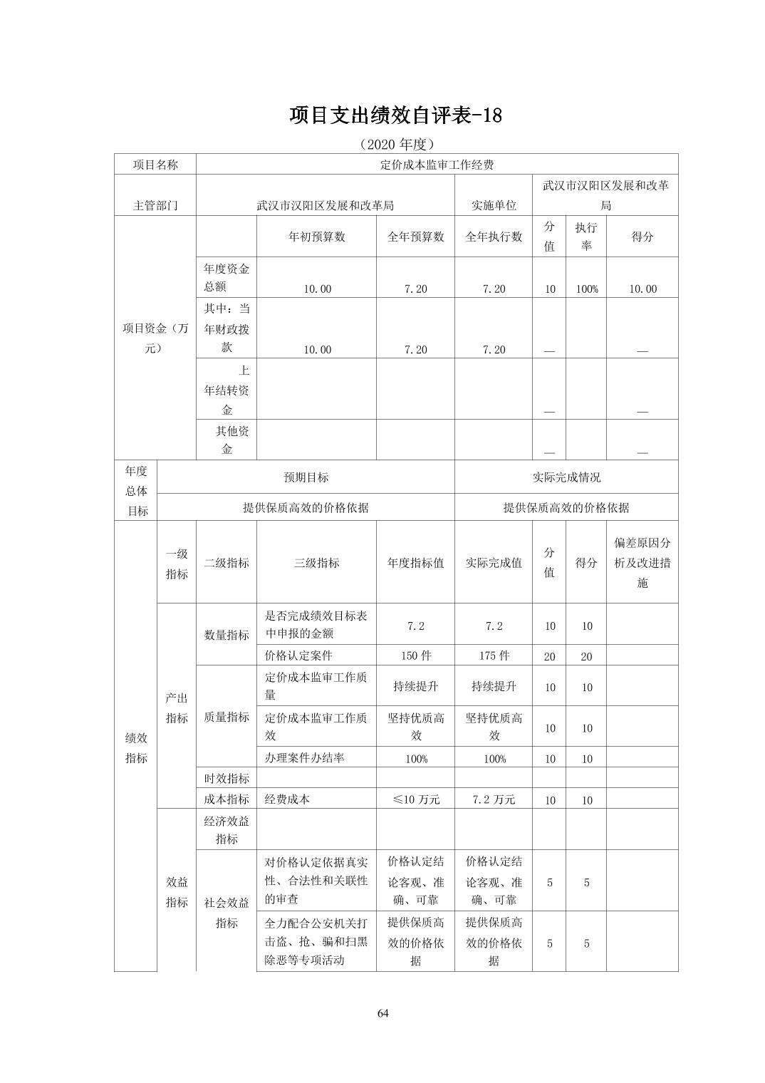 武汉市汉阳区发展和改革局-2020年度部门决算公开文件
