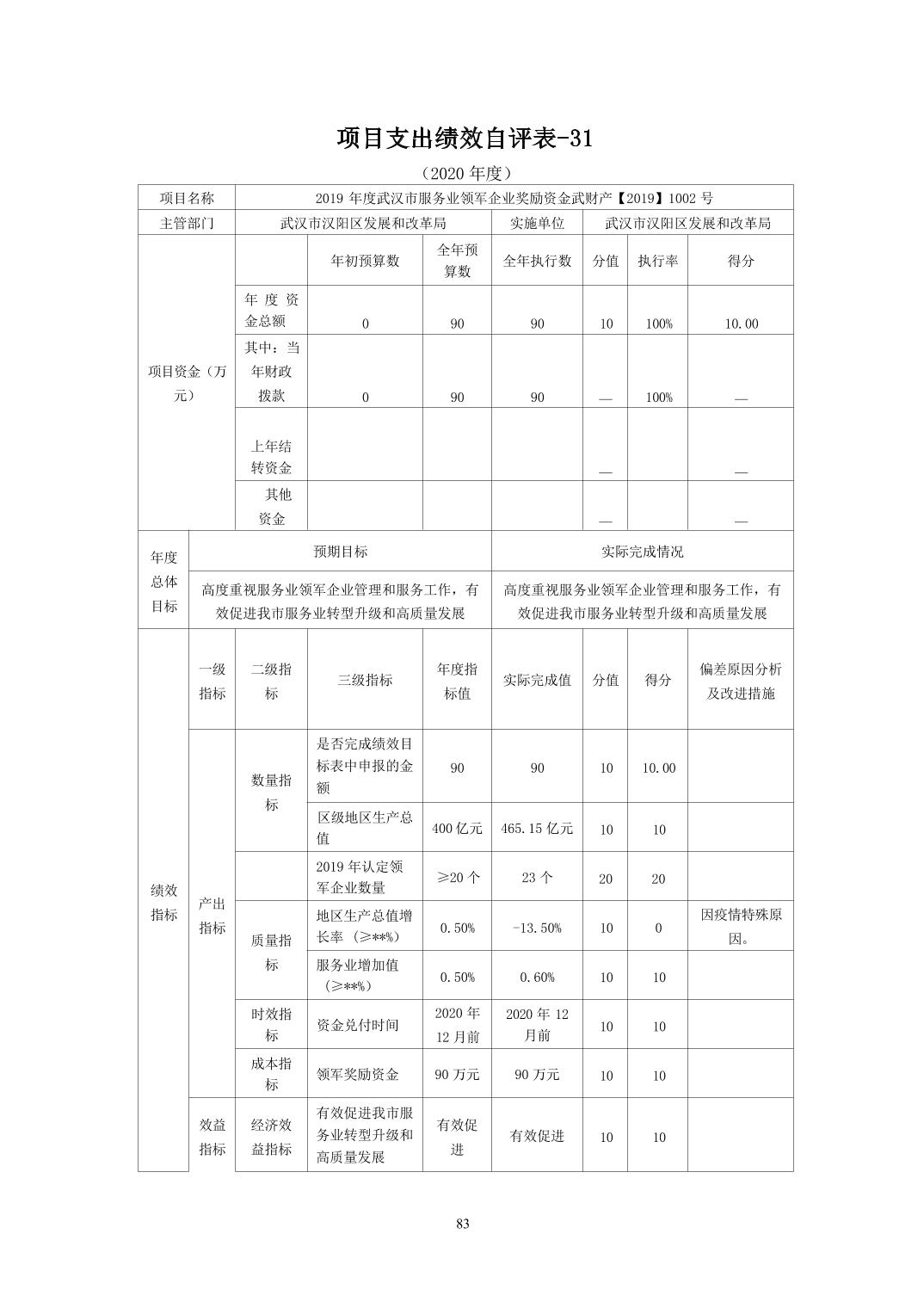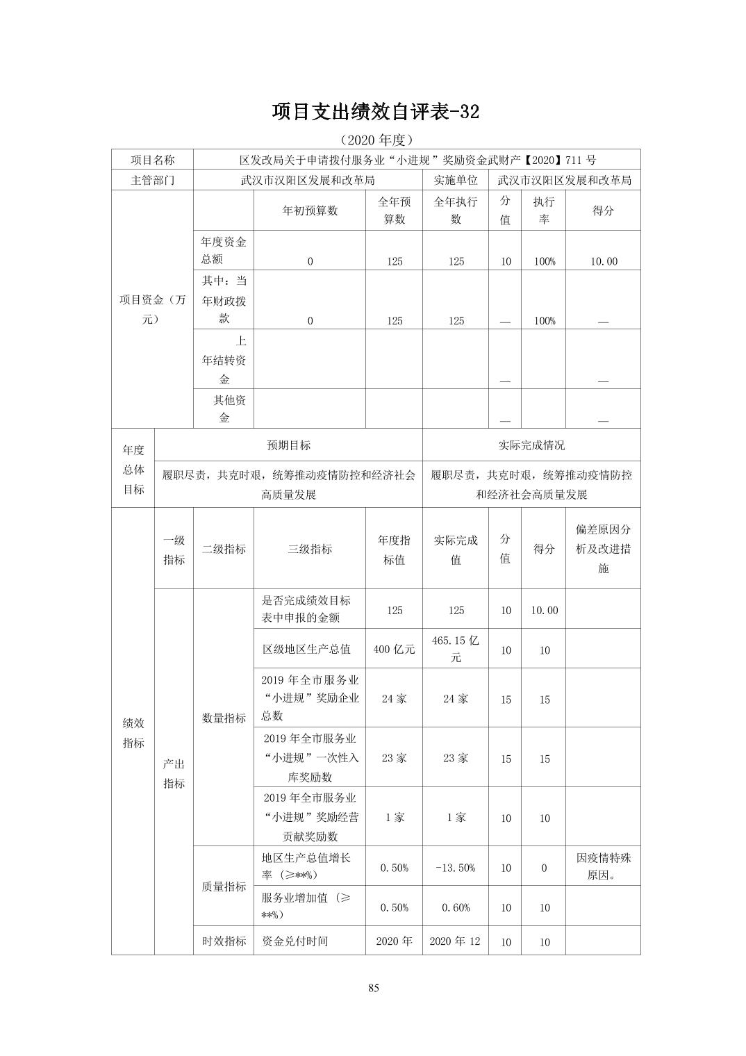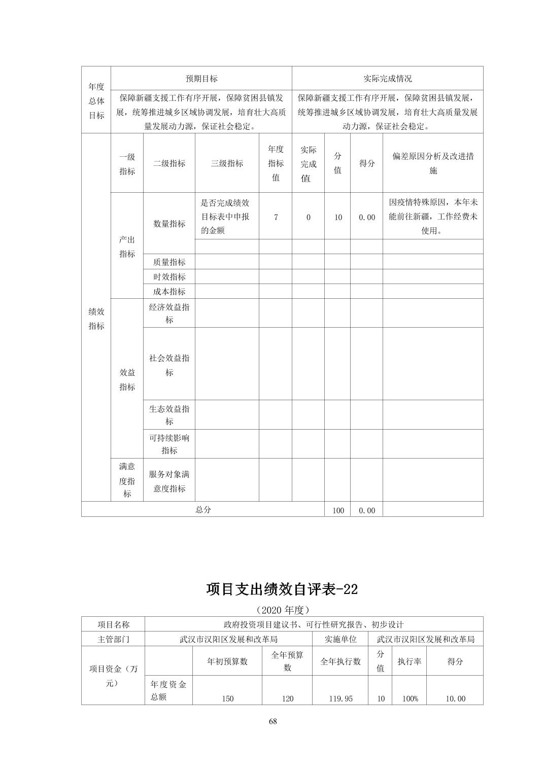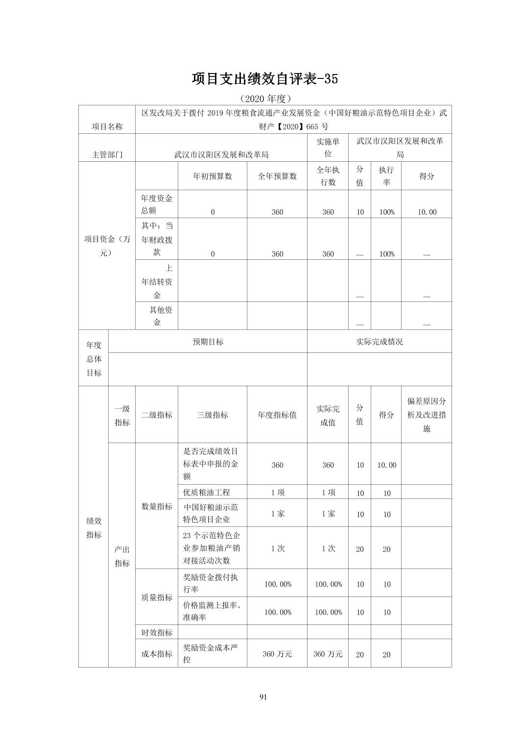 武汉市汉阳区发展和改革局-2020年度部门决算公开文件