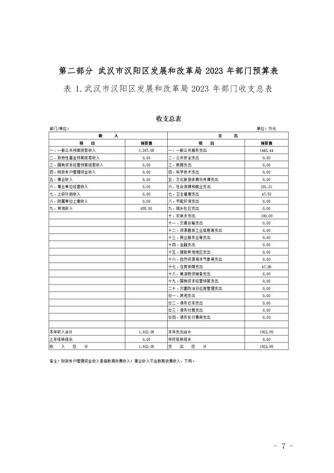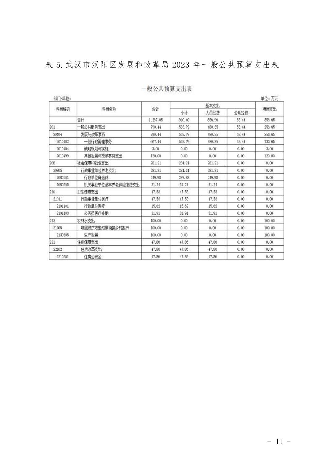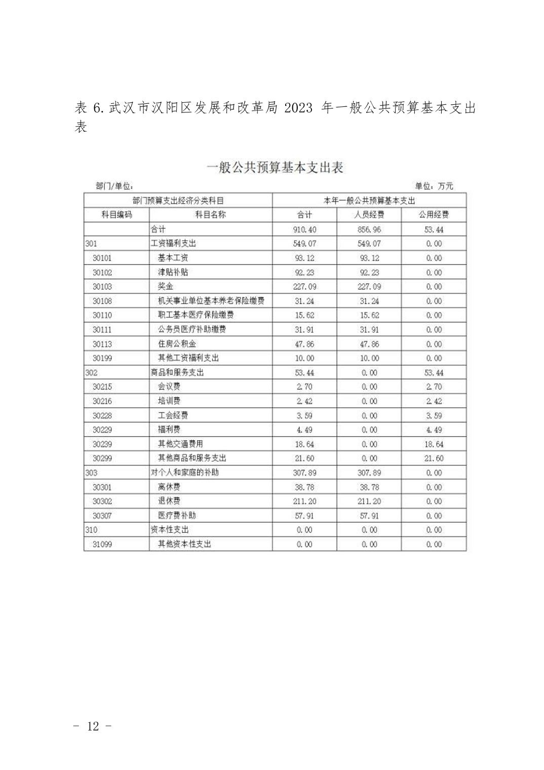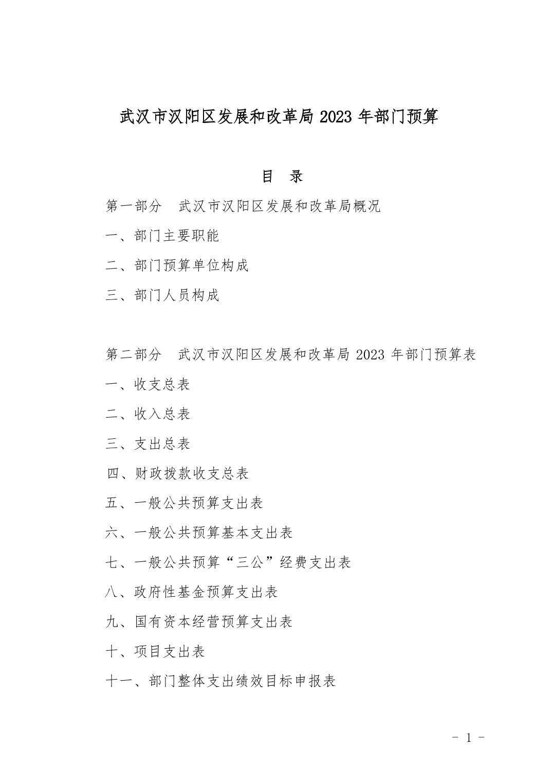 武汉市汉阳区发展和改革局2023年部门预算及“三公”经费预算公开