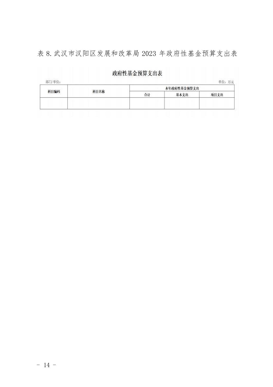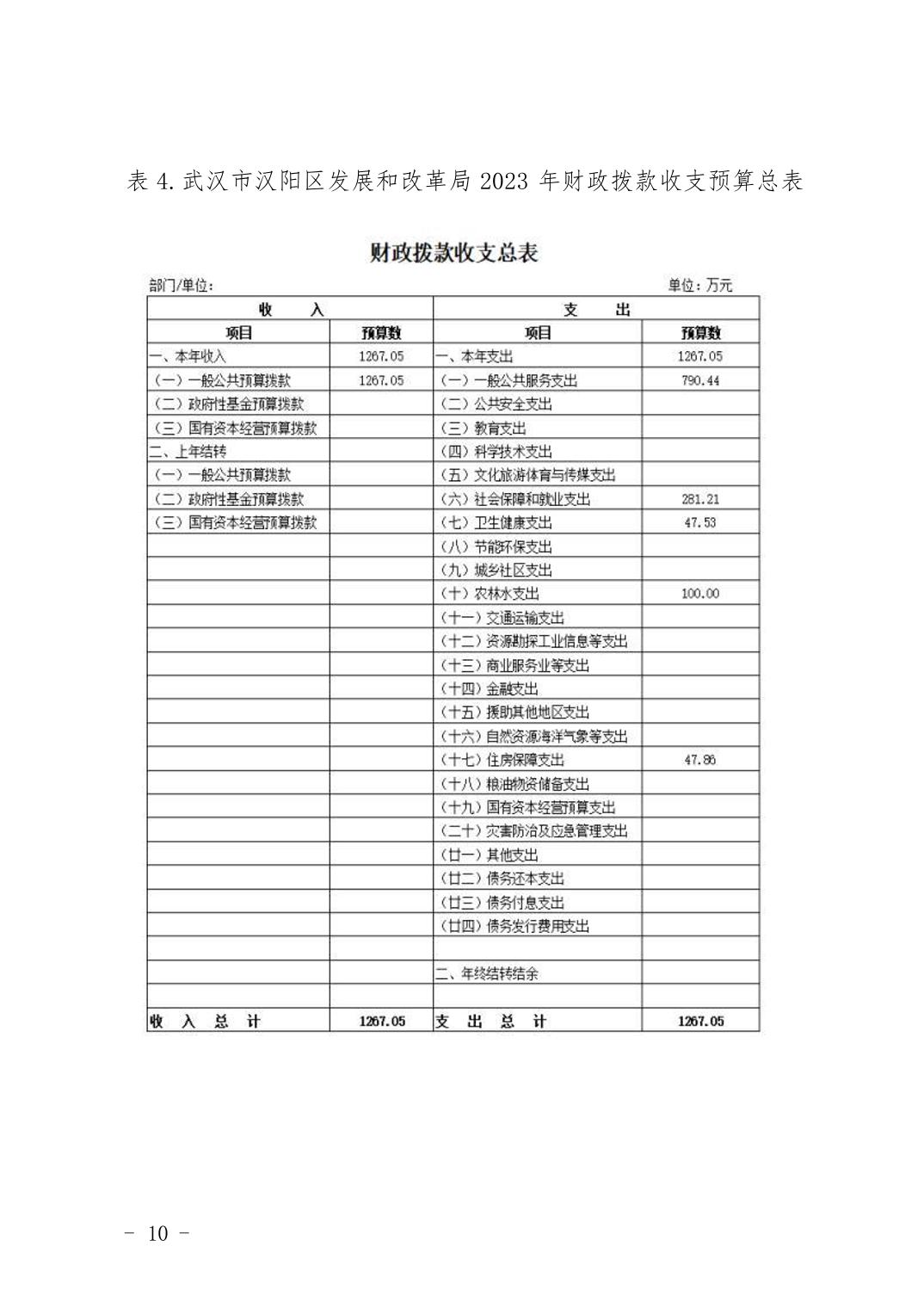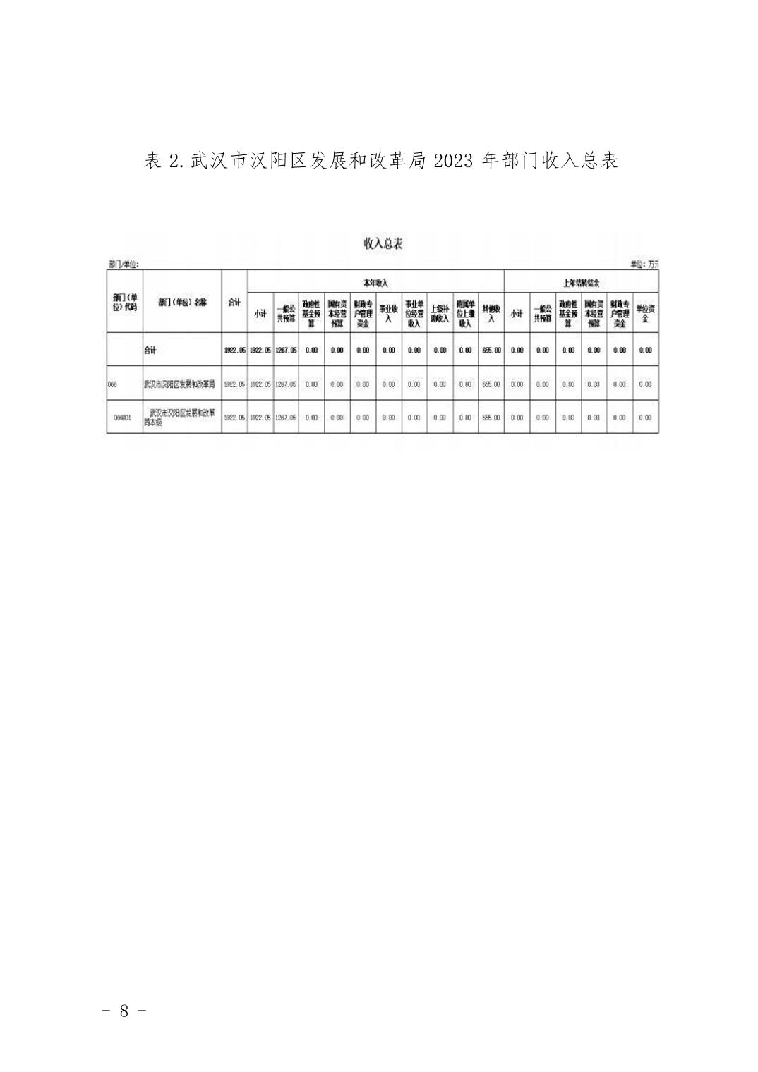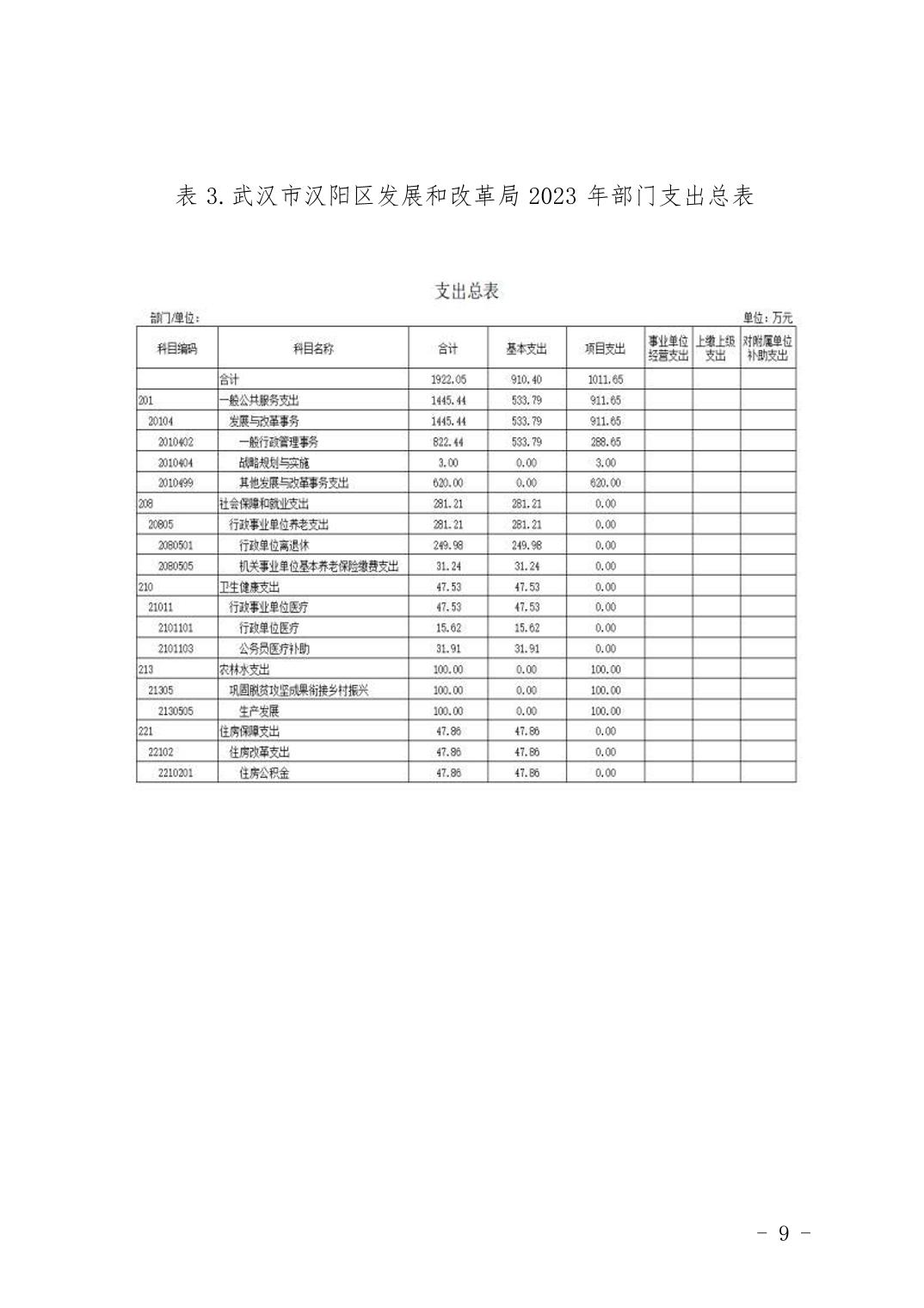 武汉市汉阳区发展和改革局2023年部门预算及“三公”经费预算公开