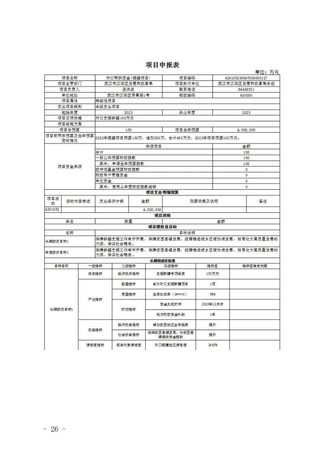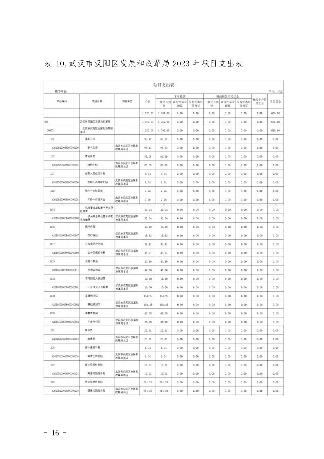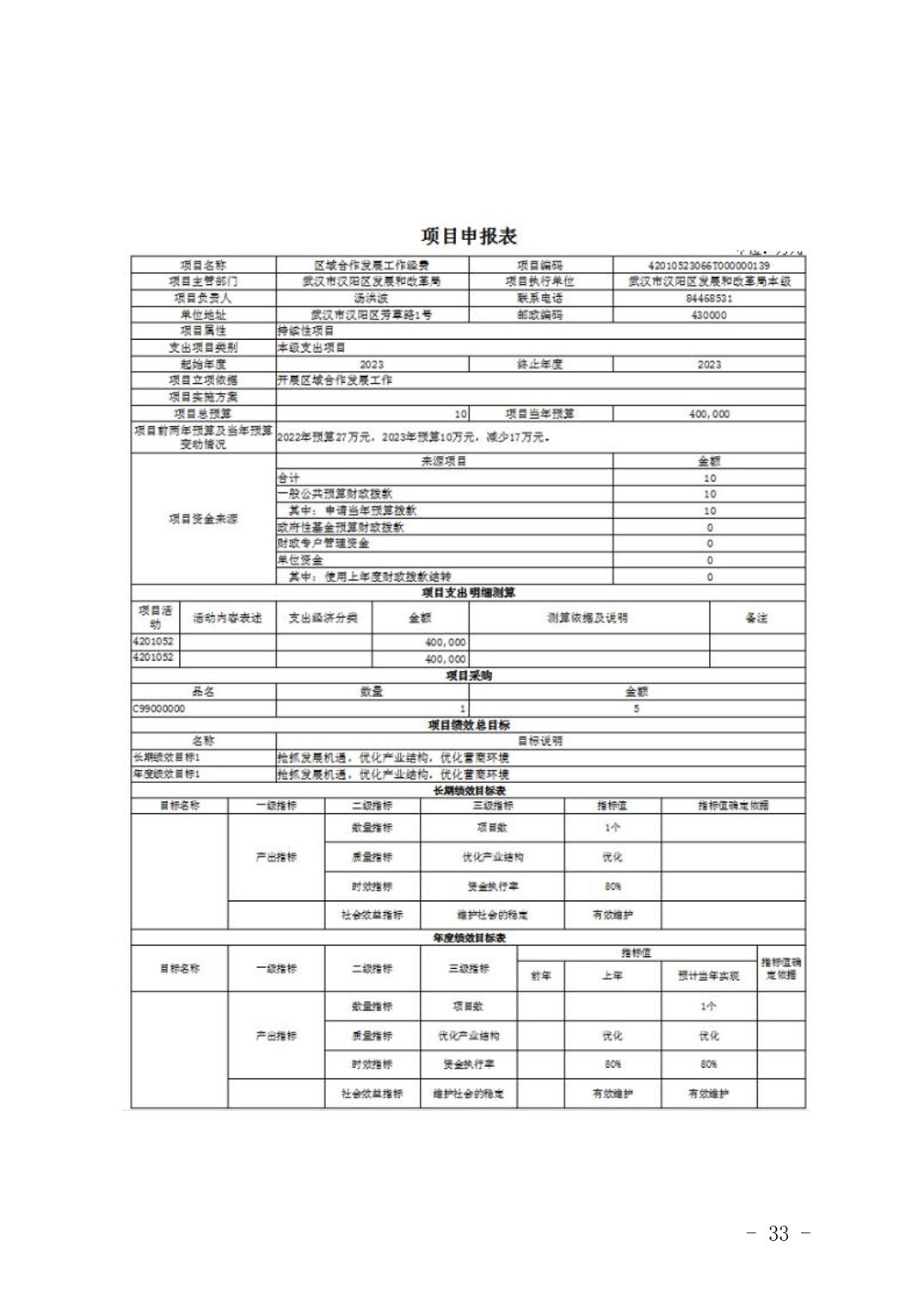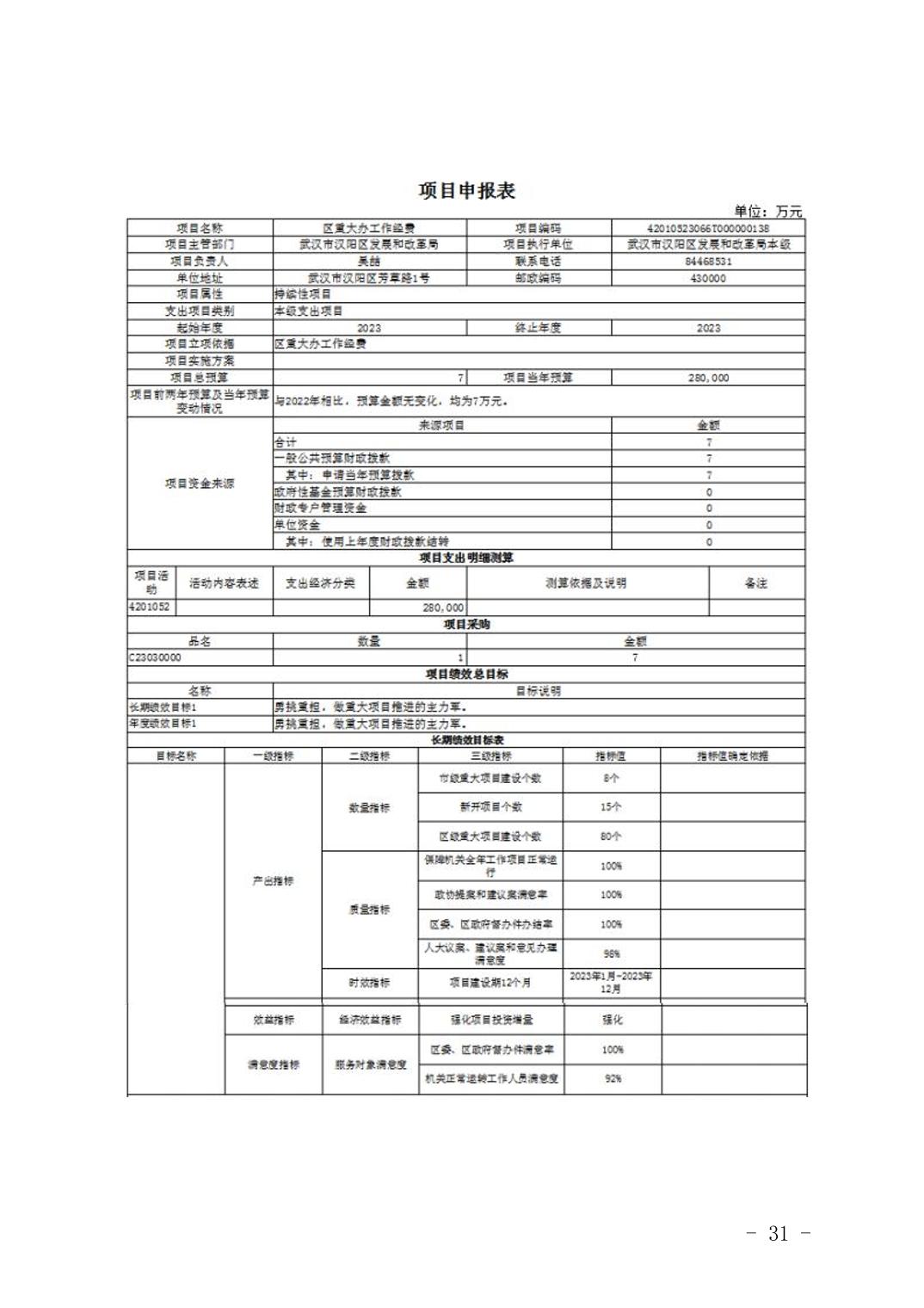 武汉市汉阳区发展和改革局2023年部门预算及“三公”经费预算公开