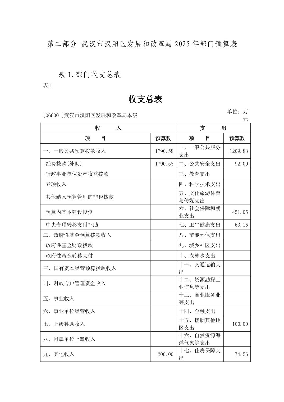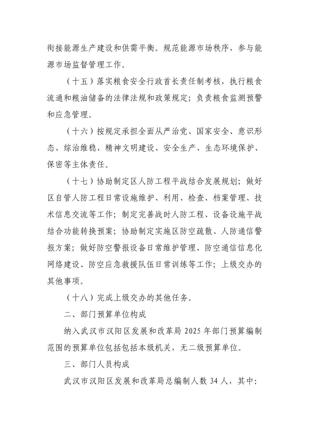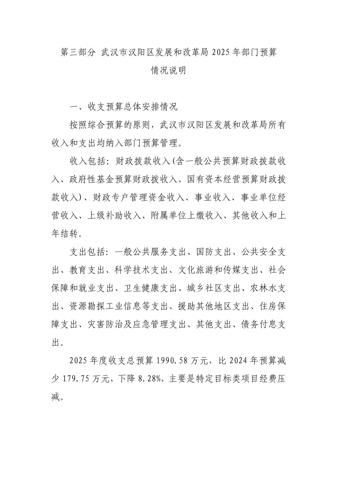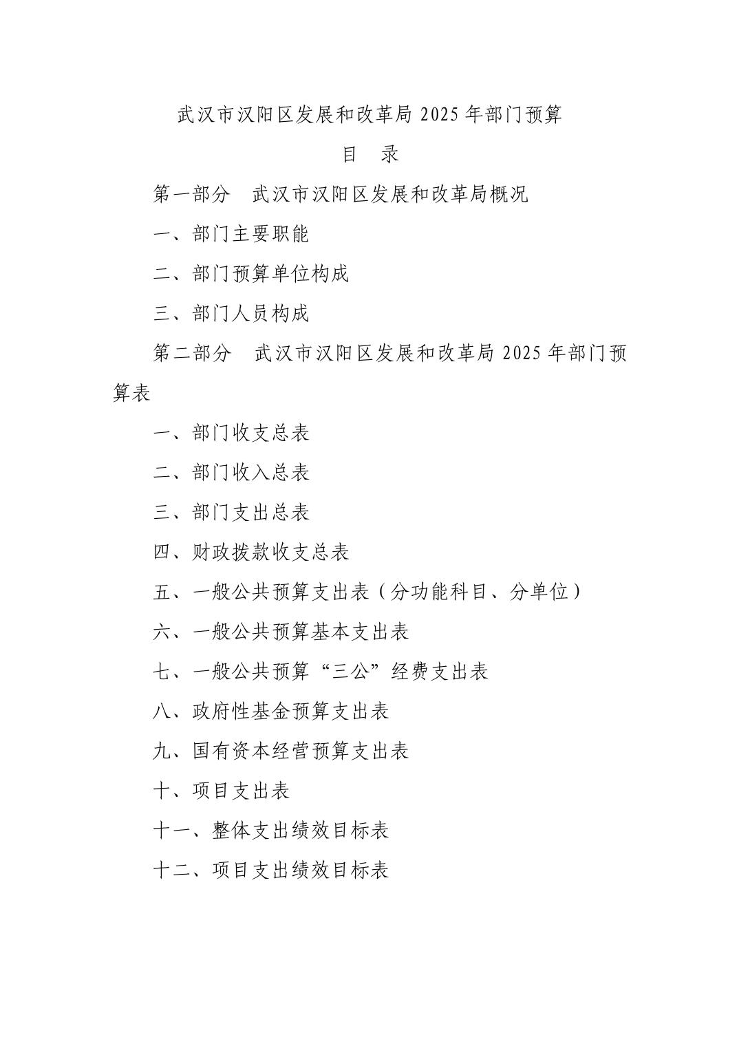 武汉市汉阳区发展和改革局2025年部门预算公开