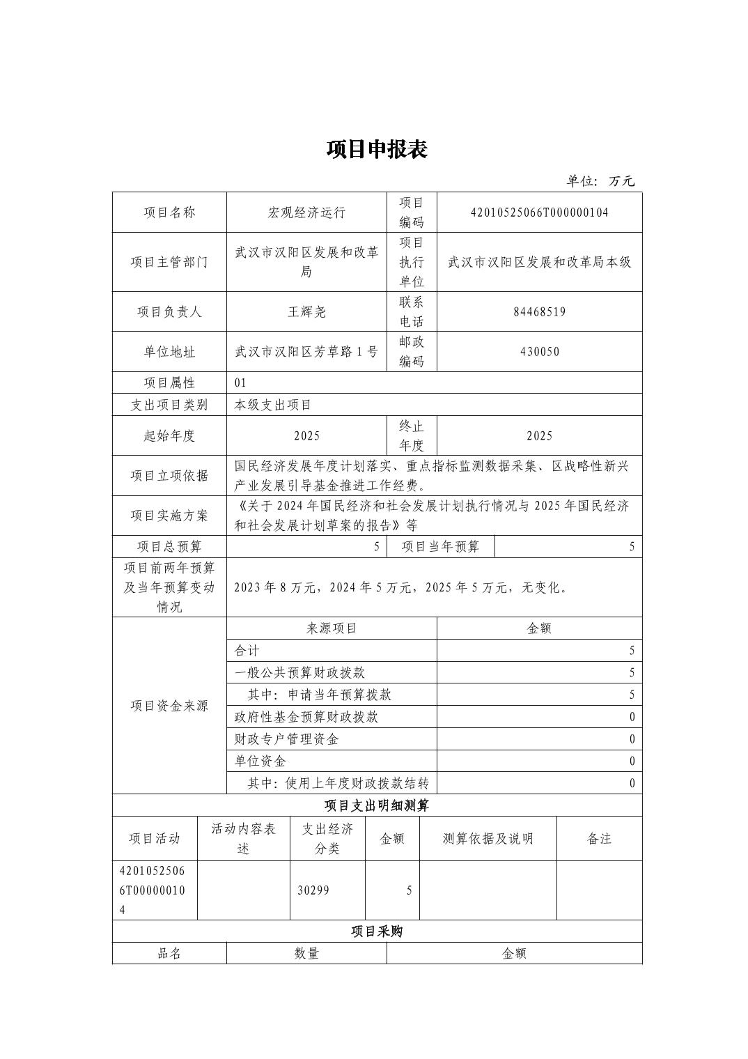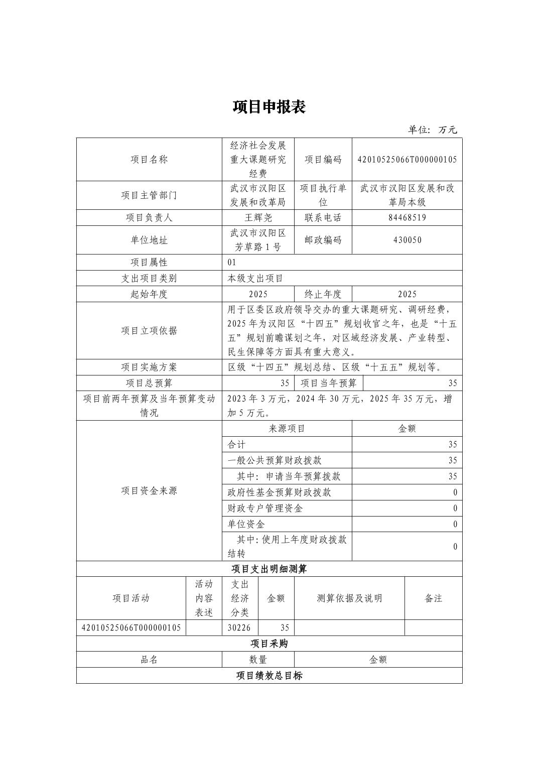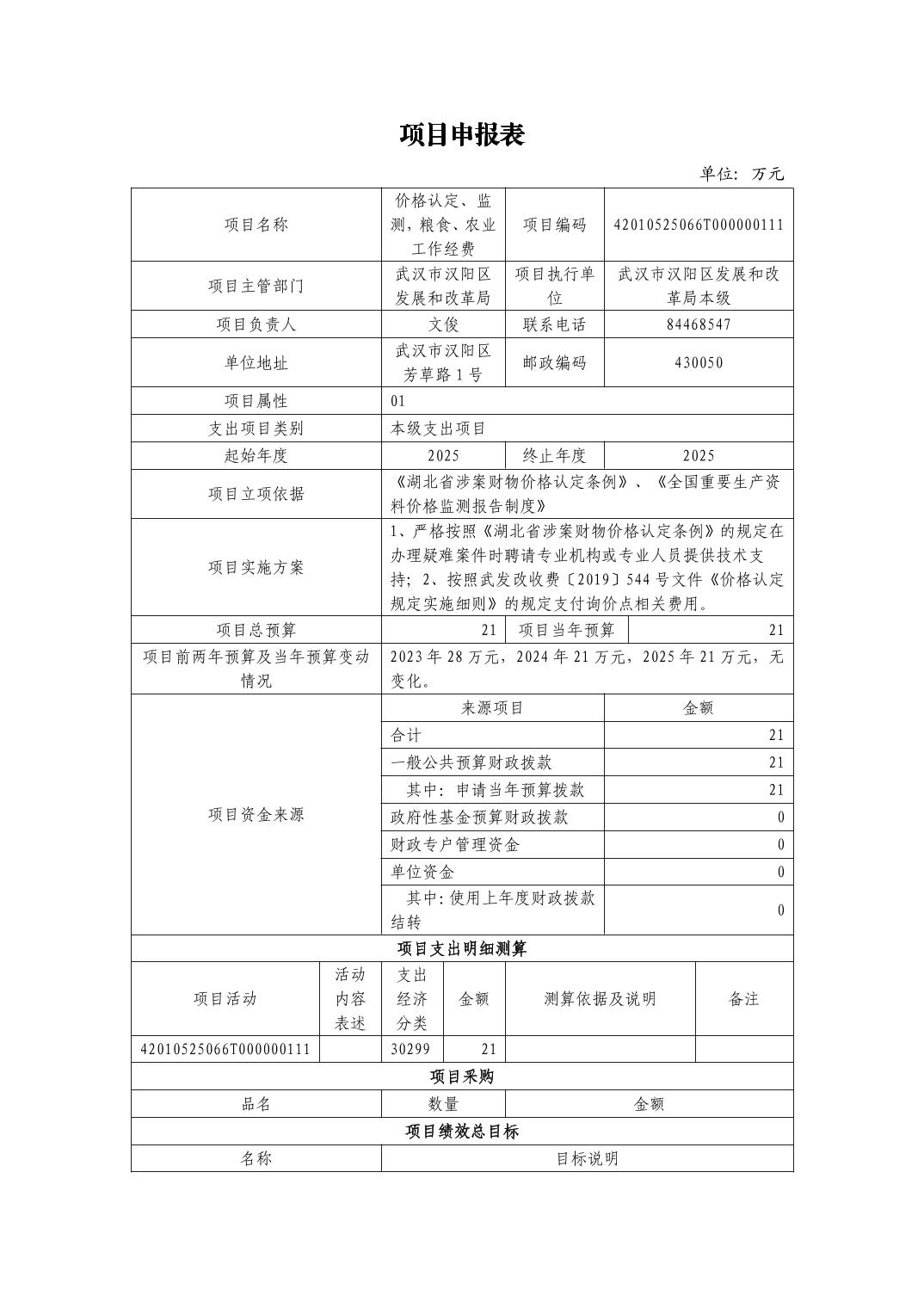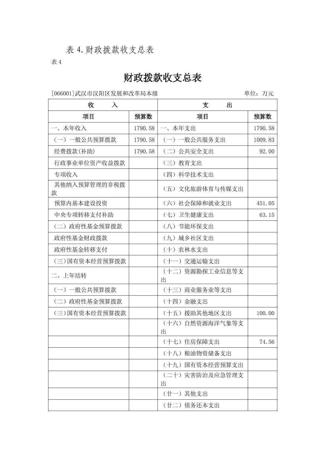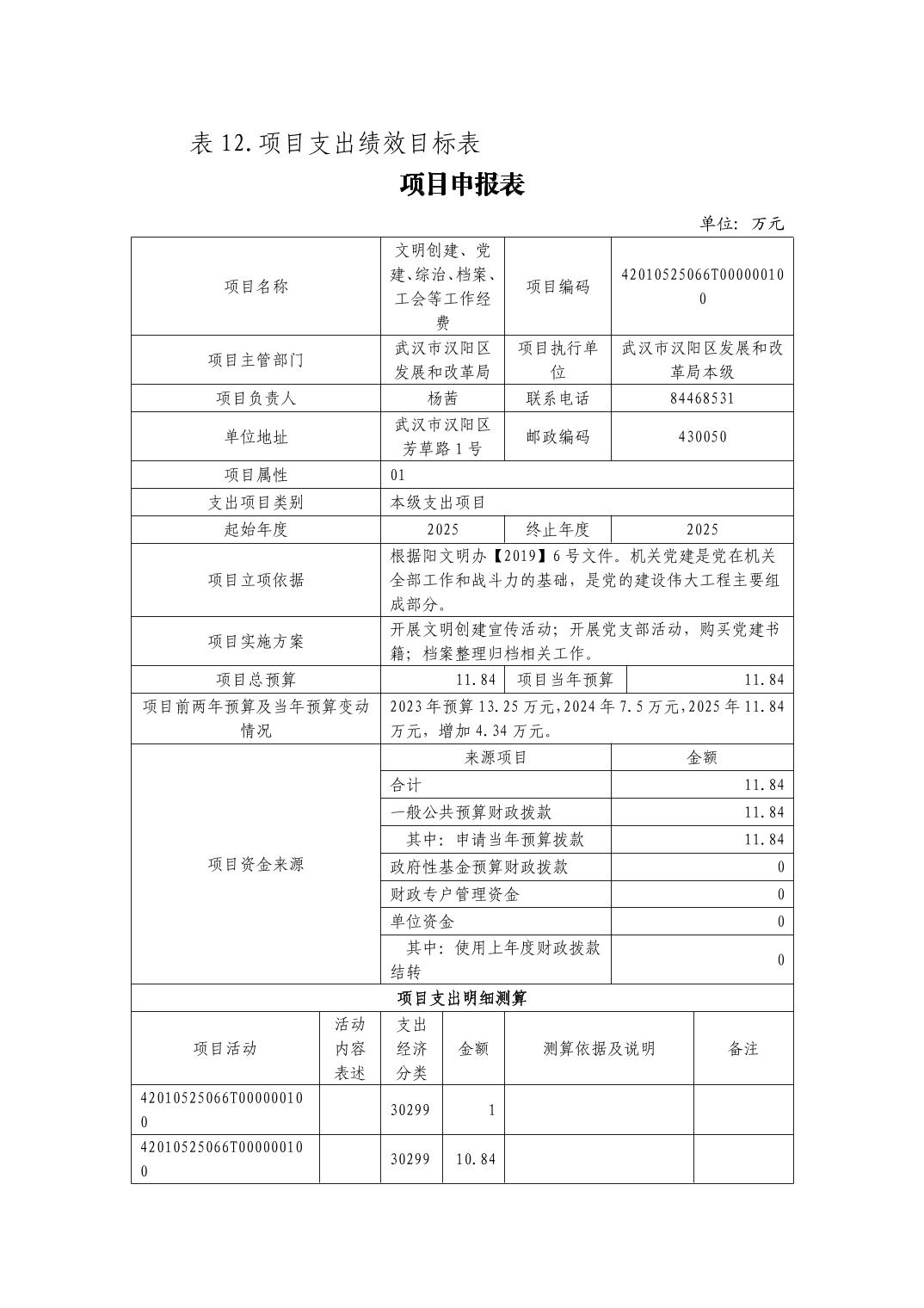 武汉市汉阳区发展和改革局2025年部门预算公开
