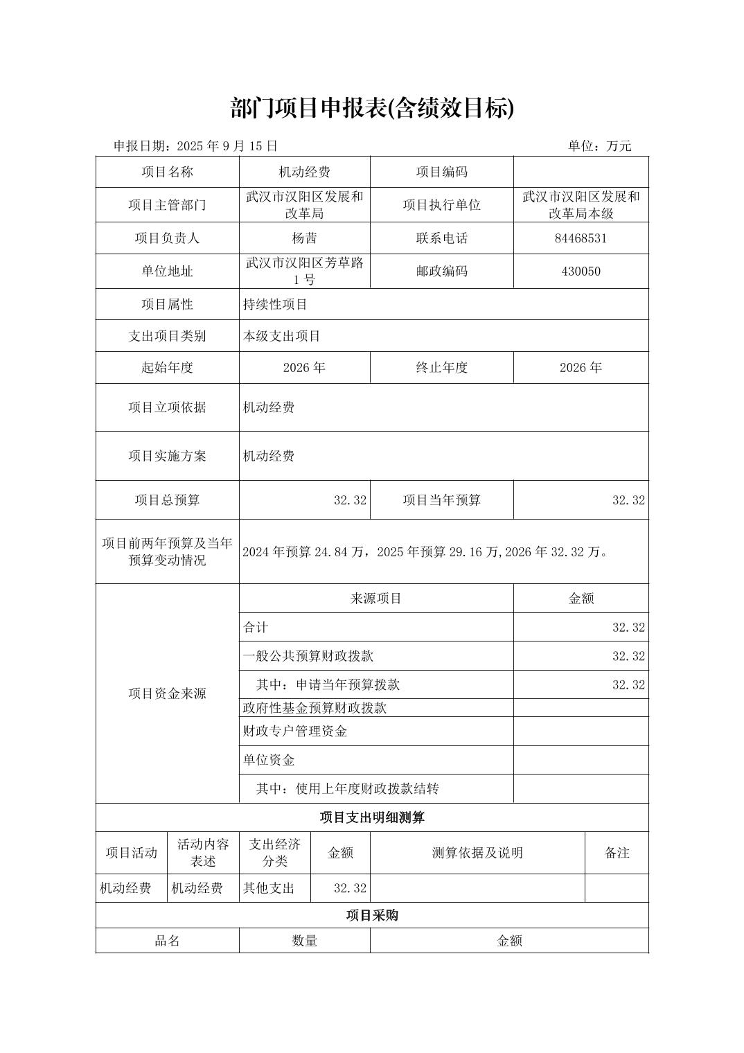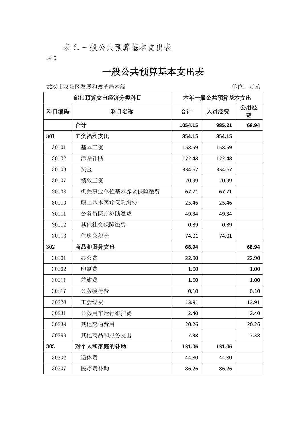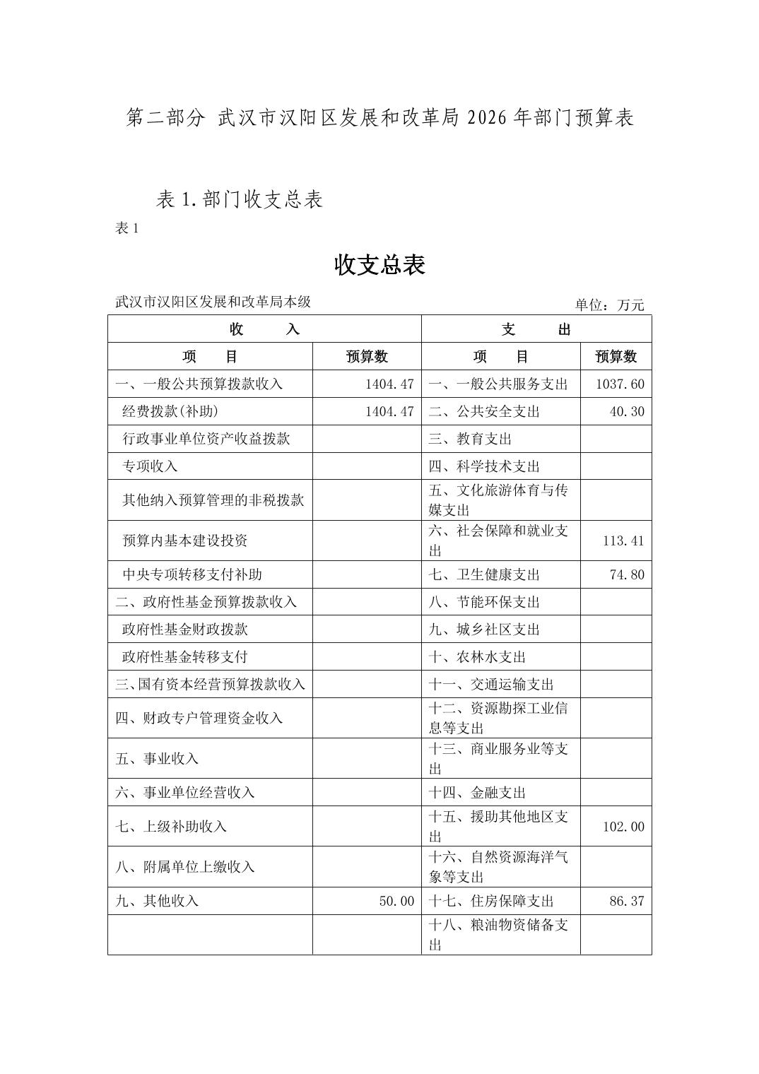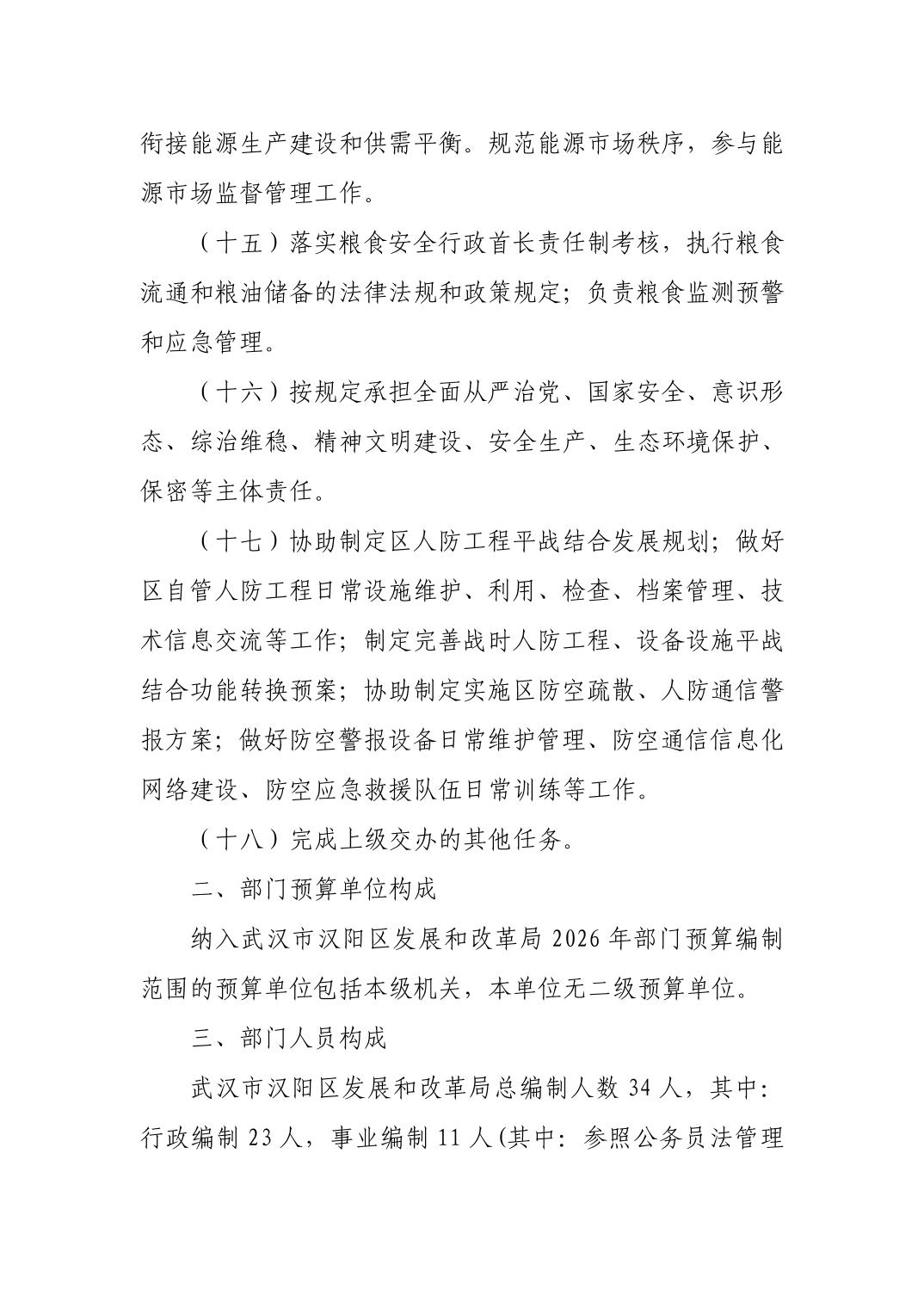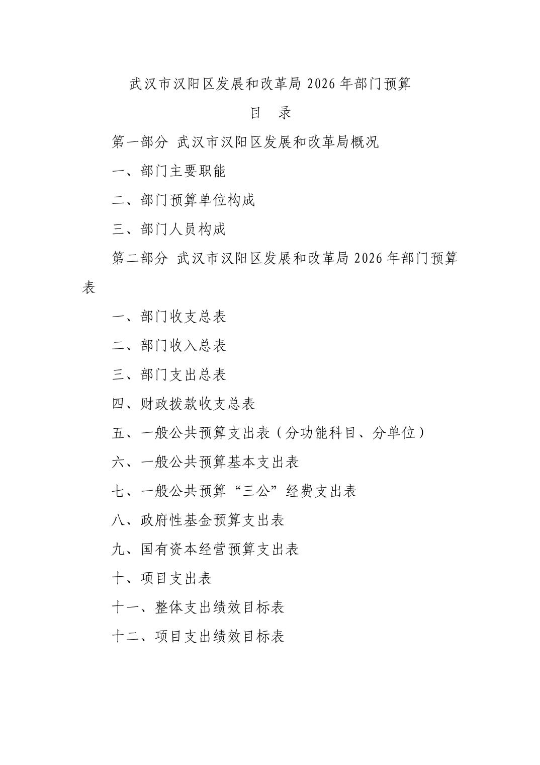武汉市汉阳区发展和改革局2026年部门预算公开