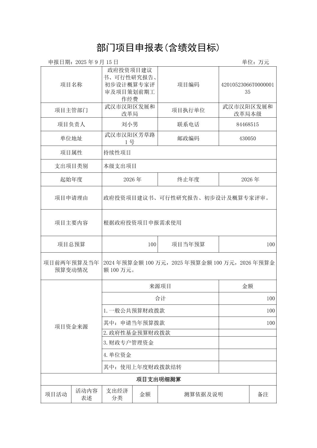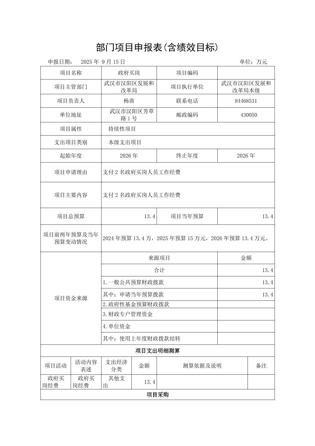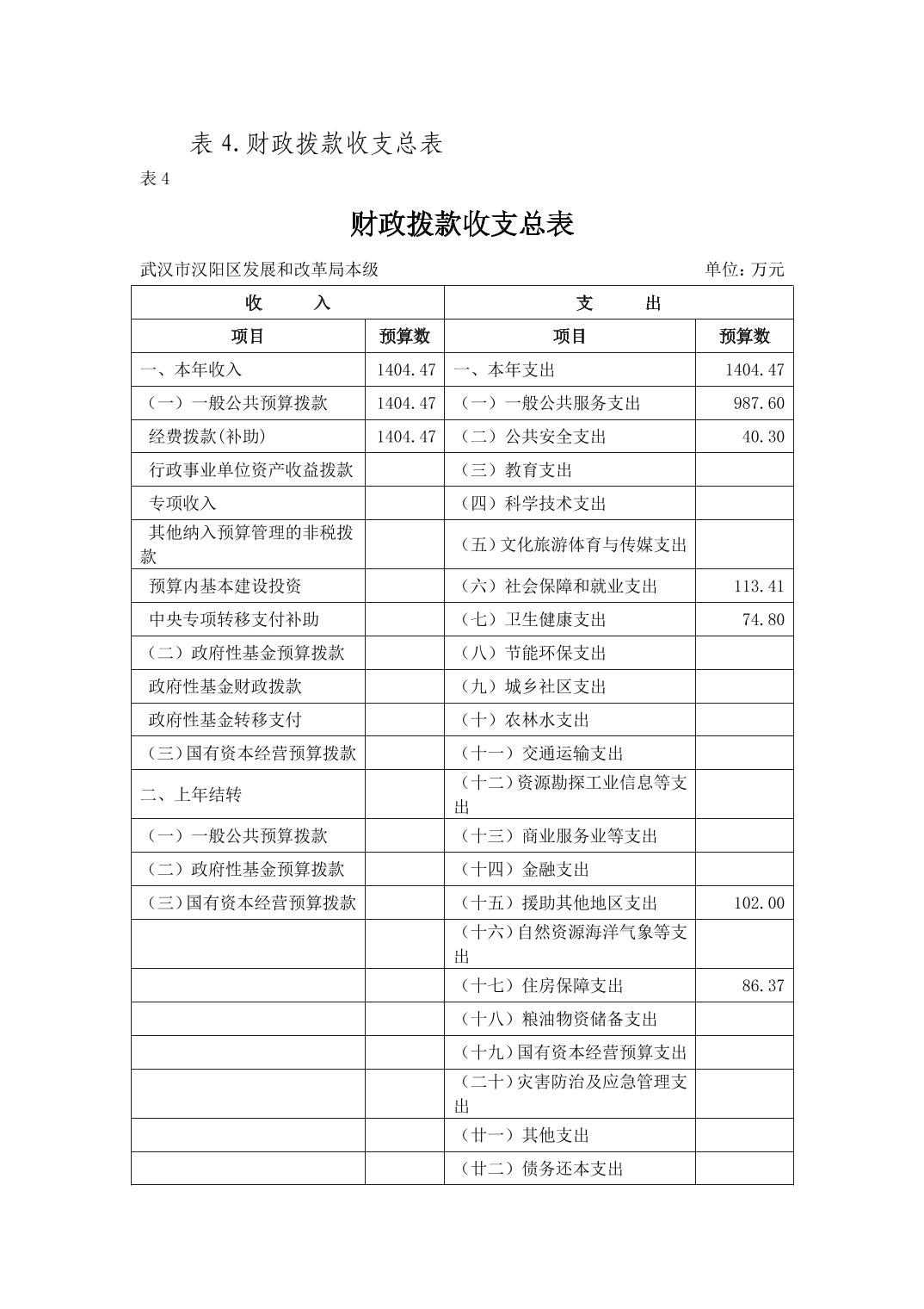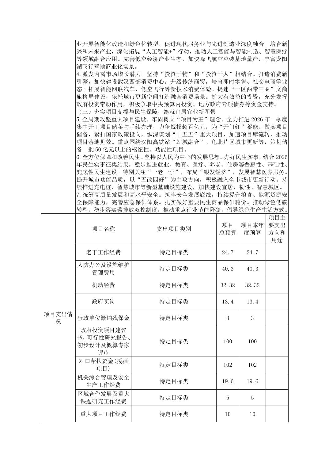 武汉市汉阳区发展和改革局2026年部门预算公开