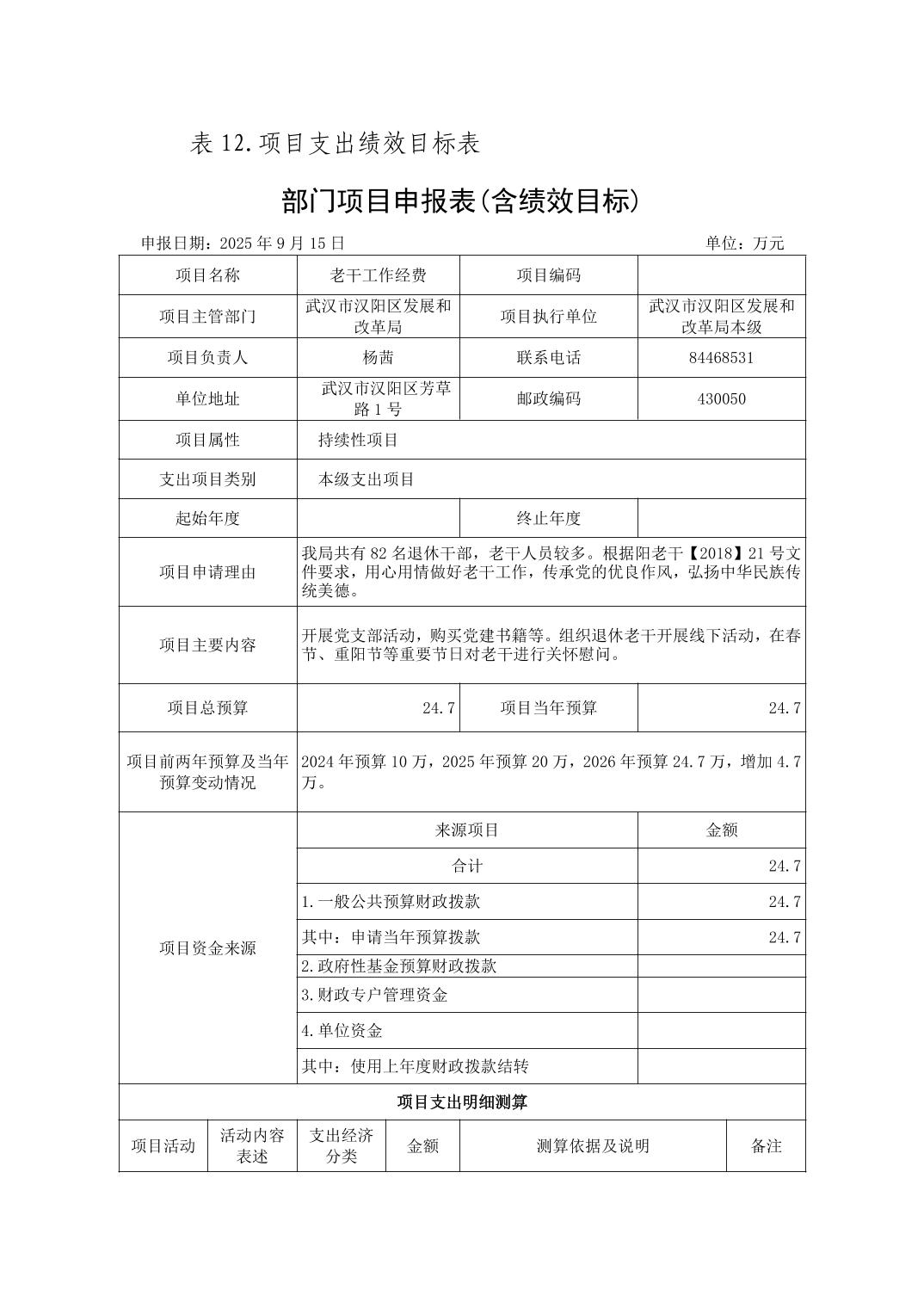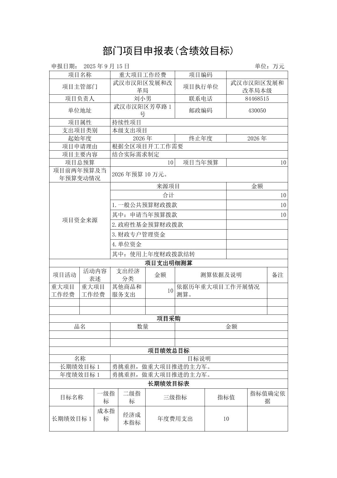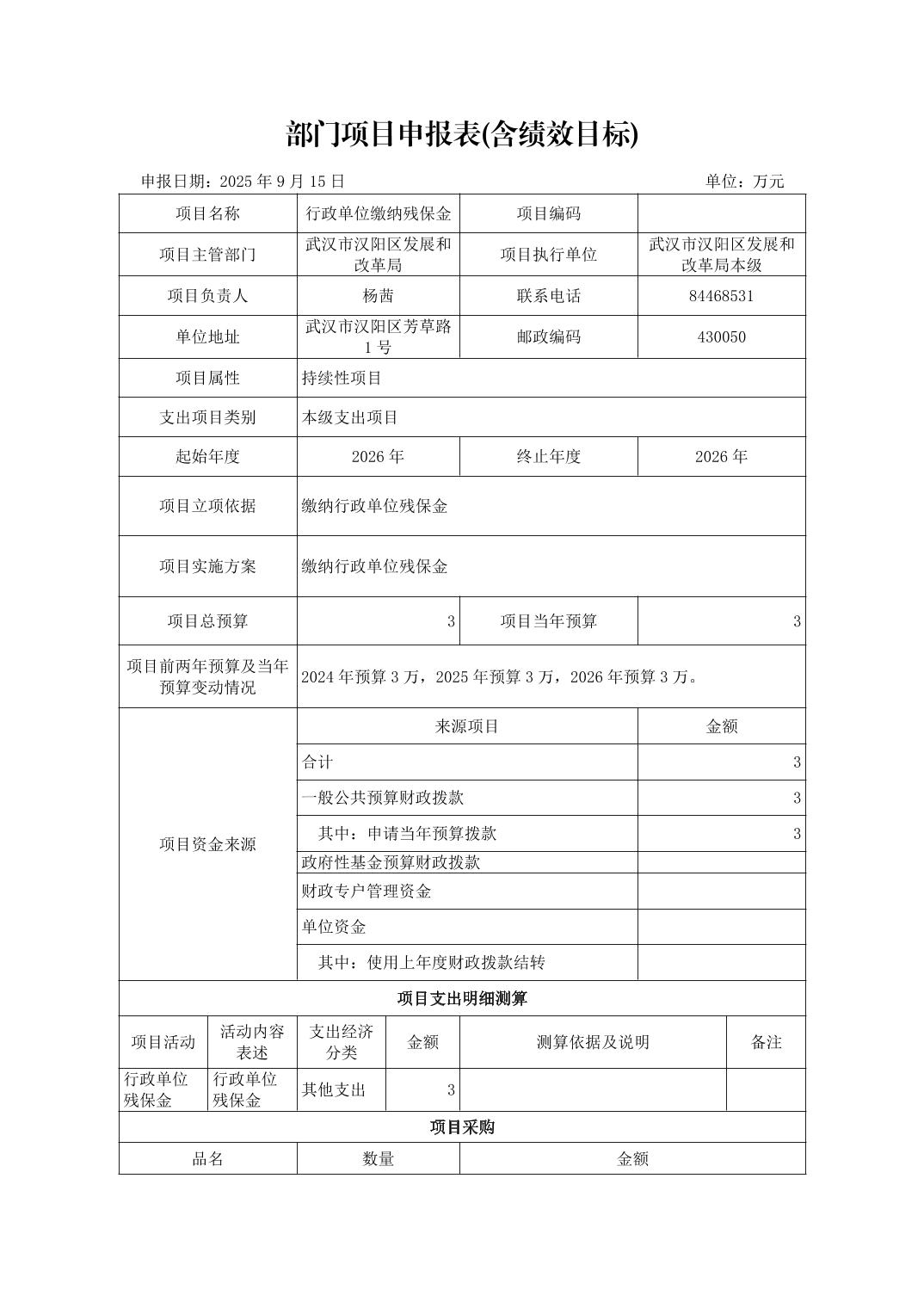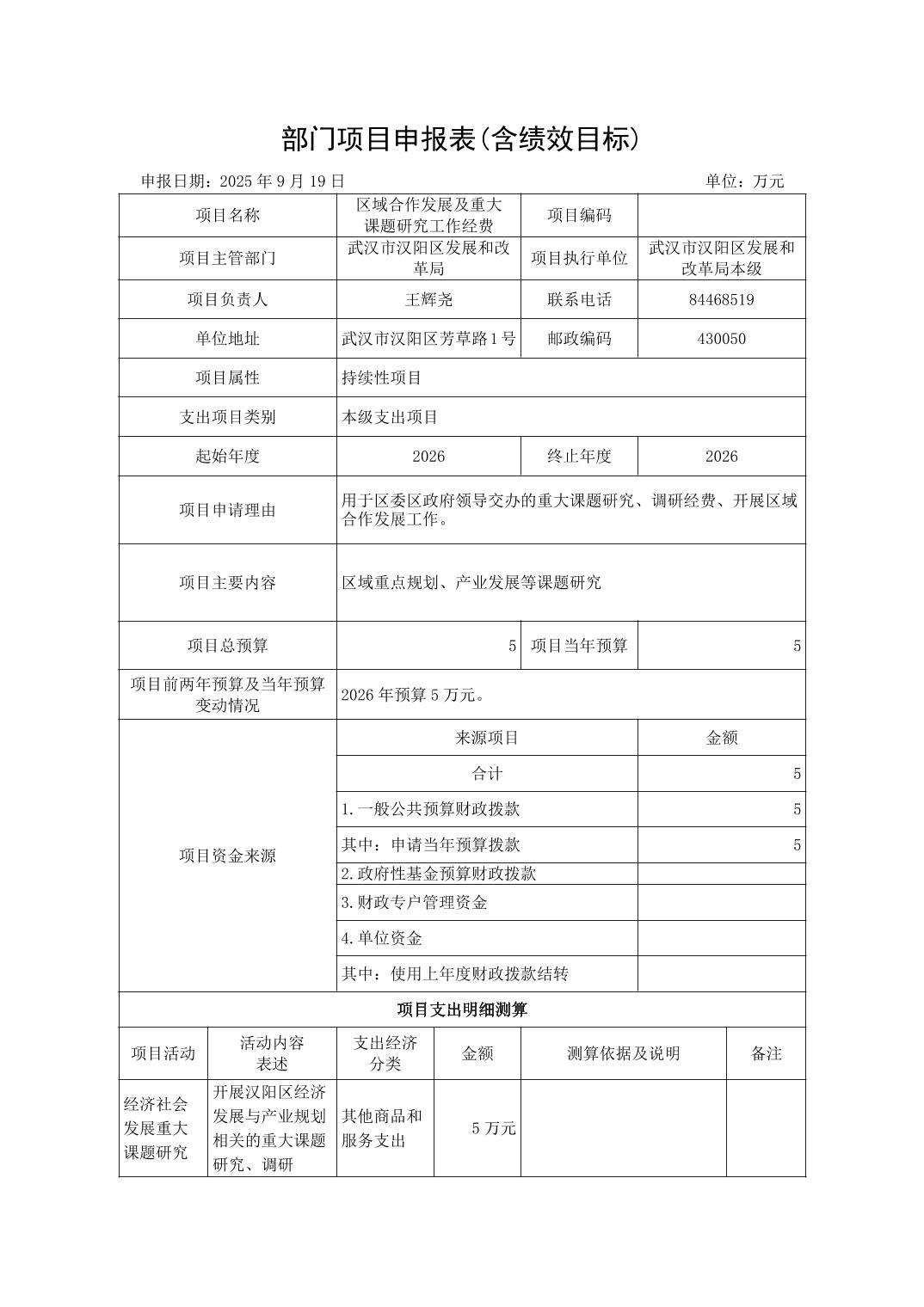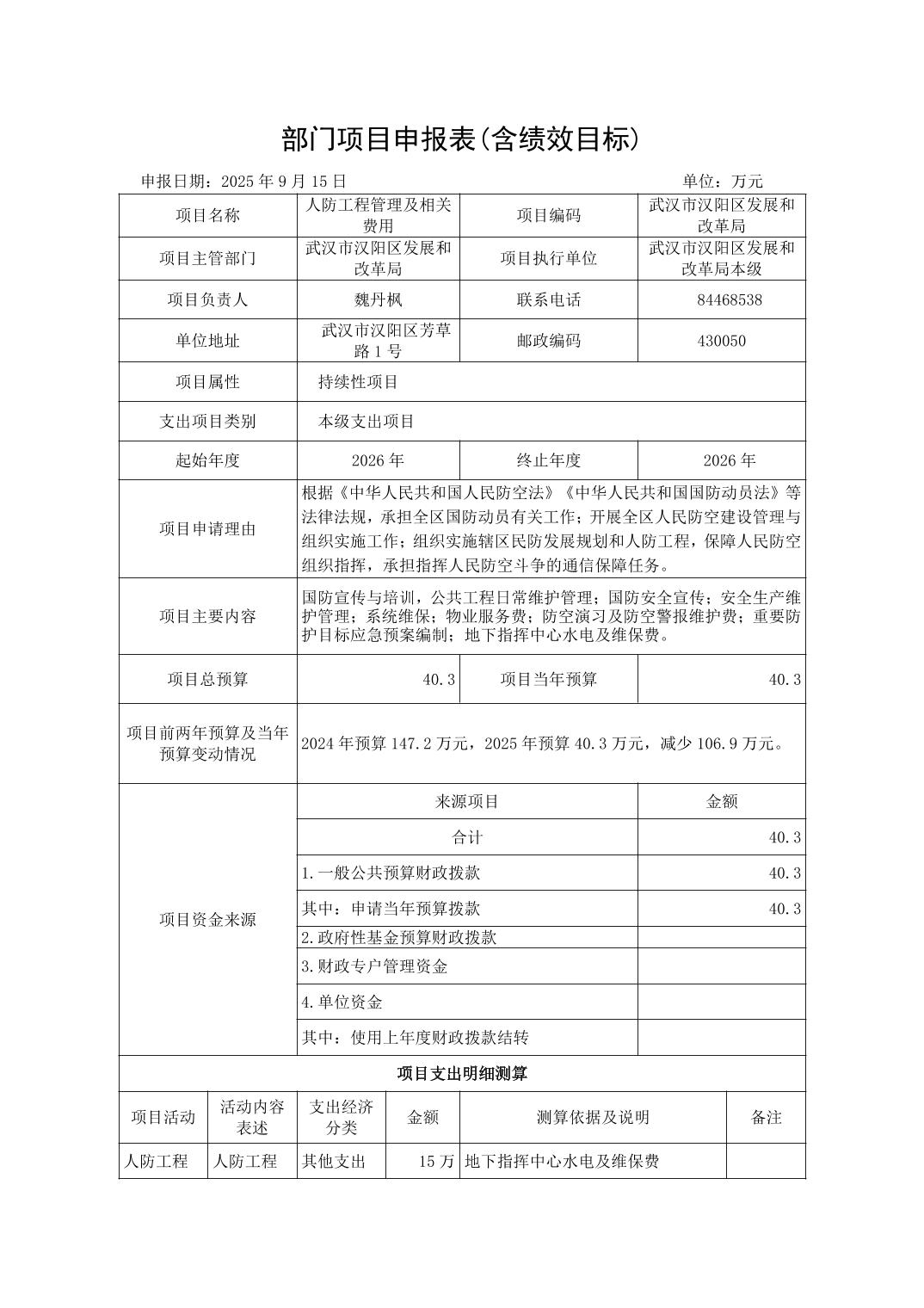 武汉市汉阳区发展和改革局2026年部门预算公开