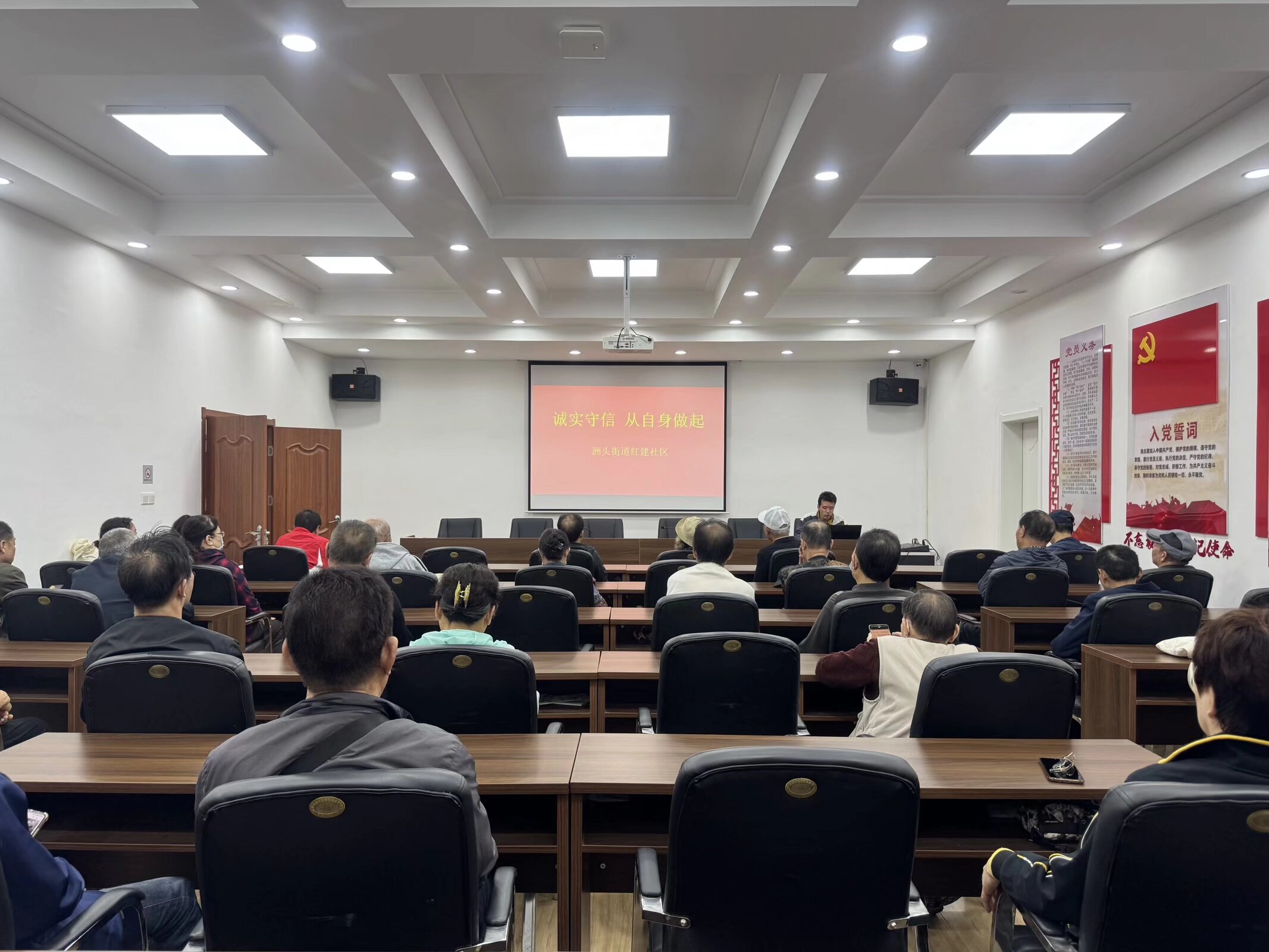 为进一步加强社区诚信建设,提高居民的诚信意识,营造诚实守信的良好社区氛围,2025年10月16日武汉市汉阳区洲头街道红建社区开展“诚实守信,从自身做起”为主题宣传讲座。