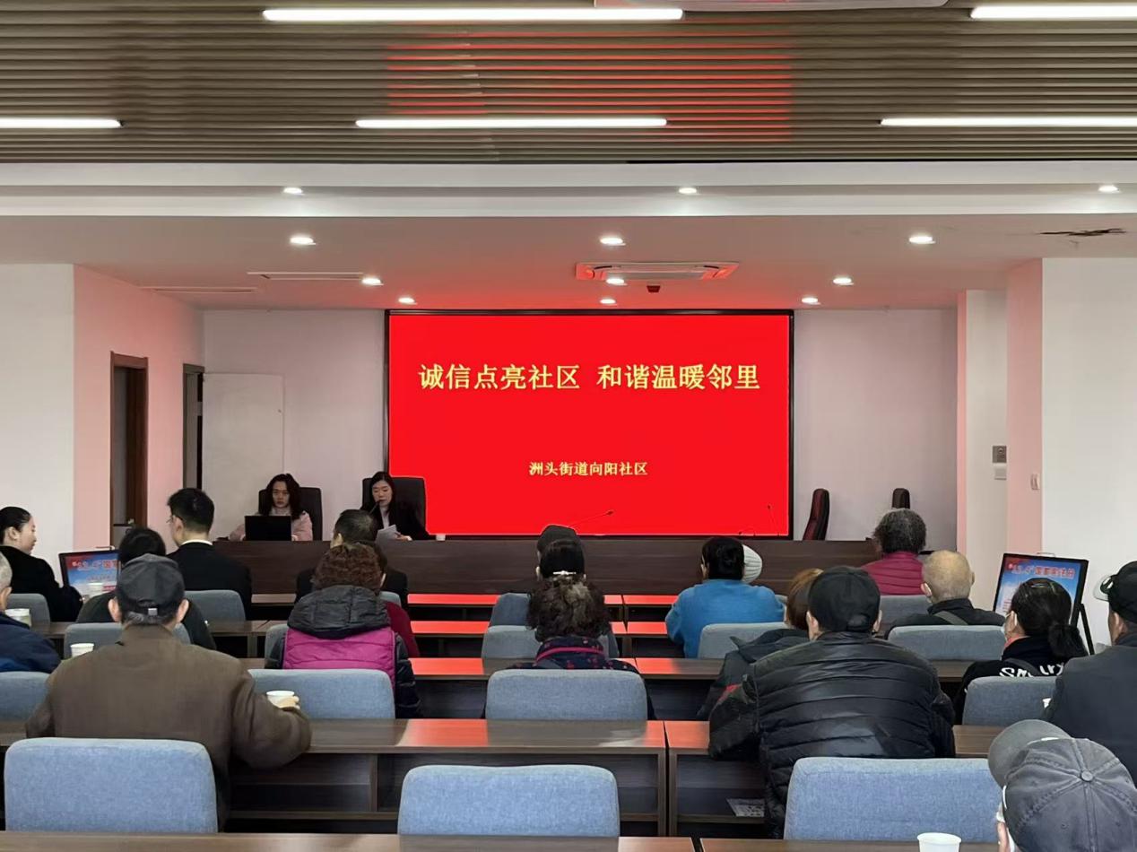为进一步弘扬诚信文化,提升社区居民的诚信意识,营造“守信光荣、失信可耻”的社区氛围,2025年12月3日,武汉市汉阳区洲头街道向阳社区开展以“诚信点亮社区 和谐温暖邻里”为主题的诚信宣讲活动。