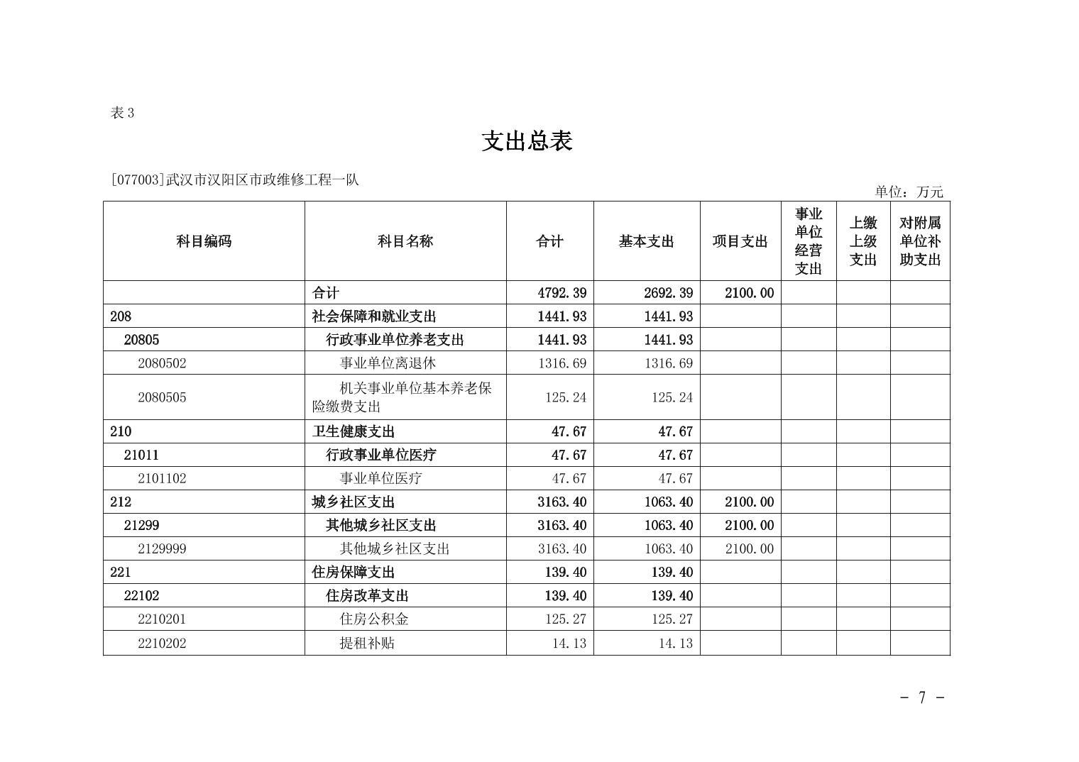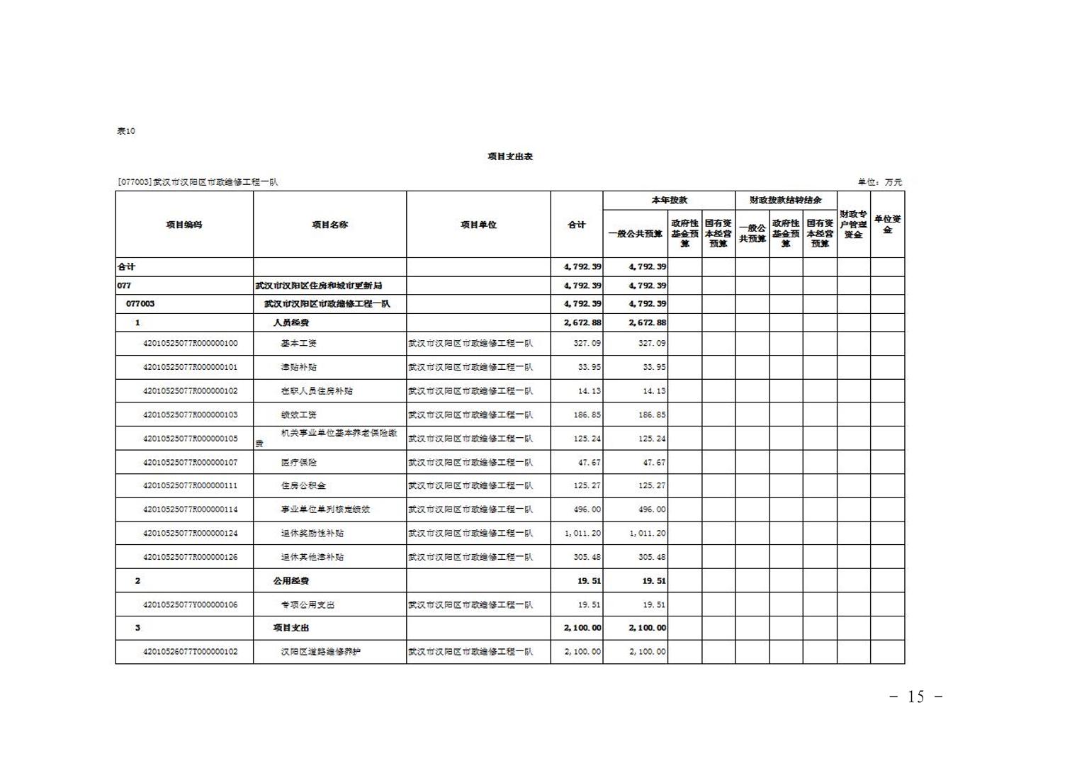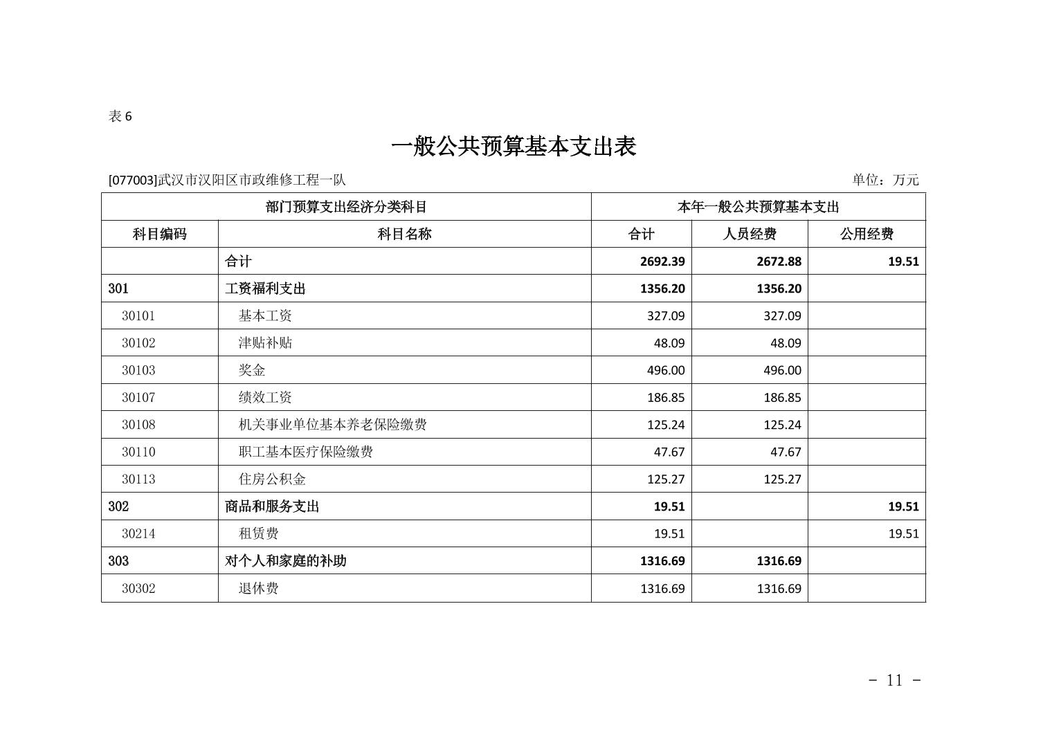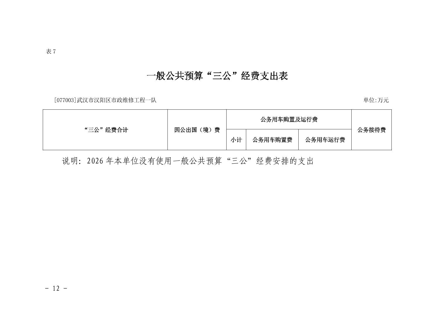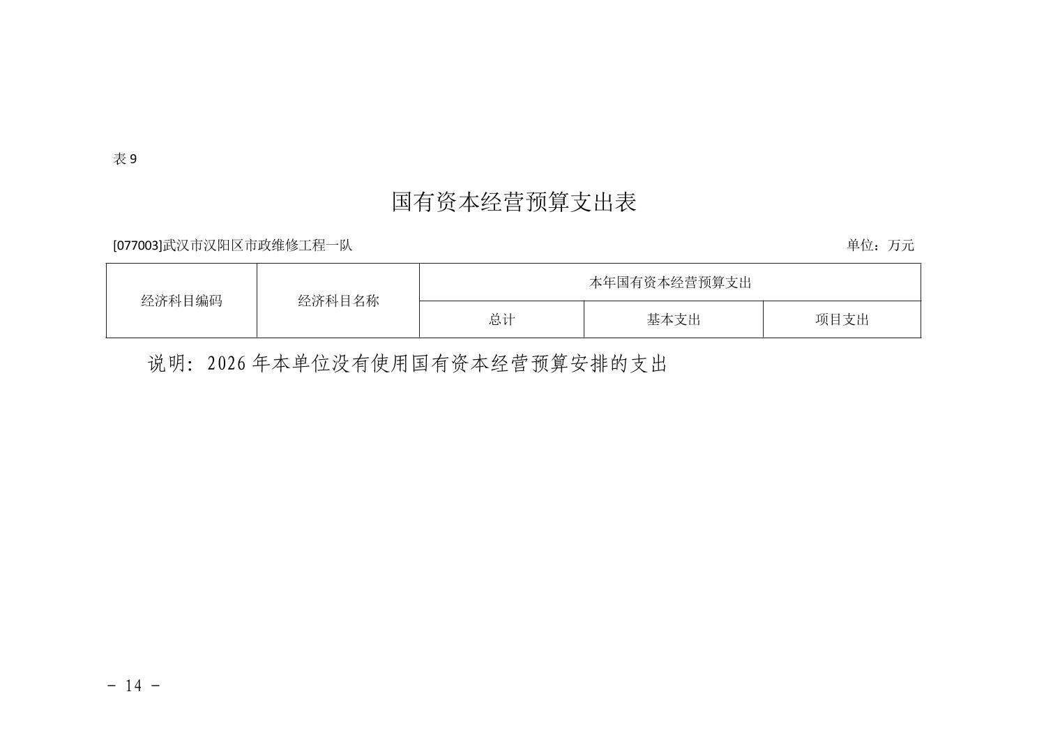 武汉市汉阳区市政维修工程一队2026年部门预算