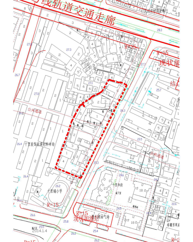 具体详见十里铺小学扩大片旧城改建项目征收范围红线图。