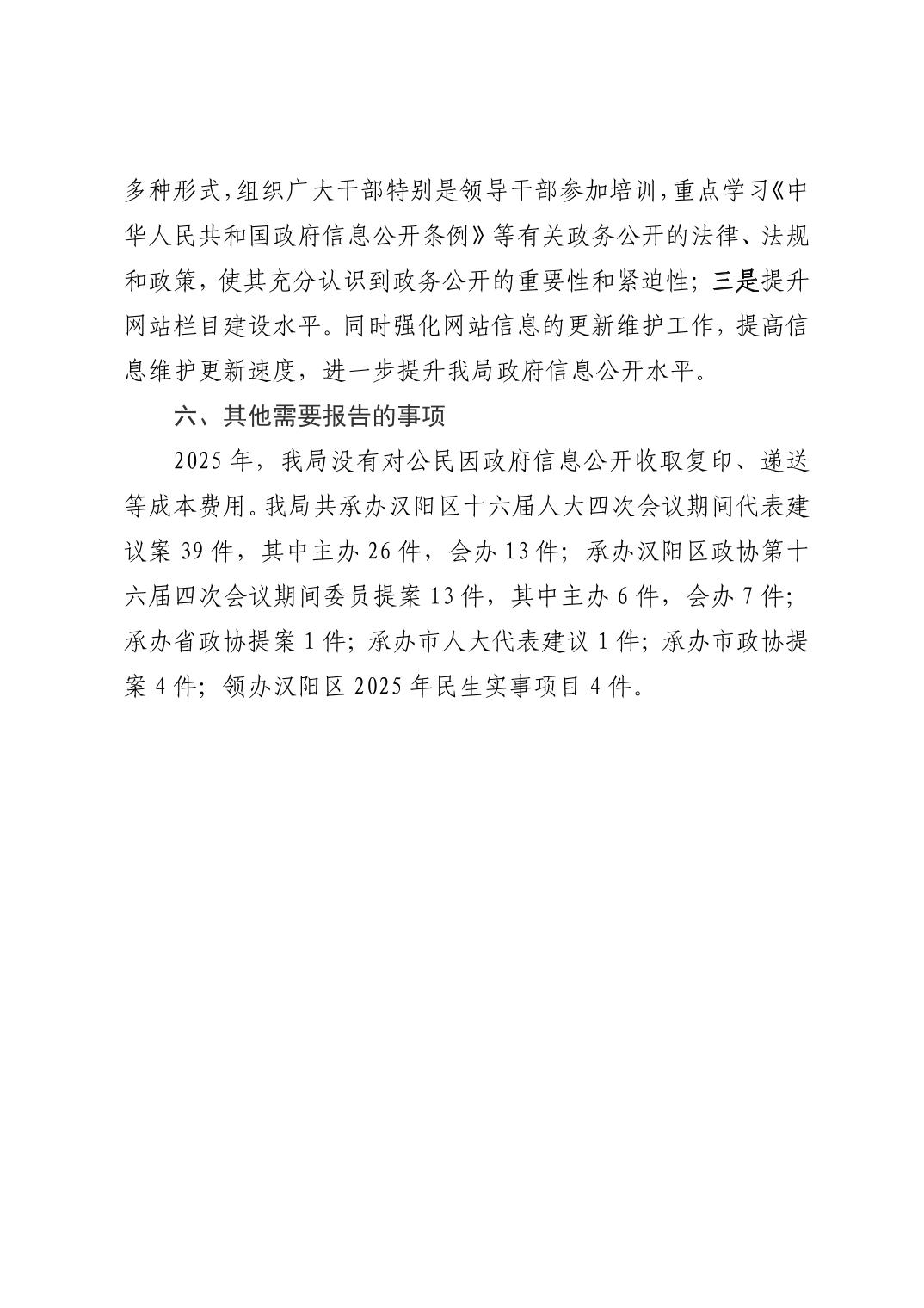 2025年汉阳区住房和城市更新局政府信息 公开年度报告