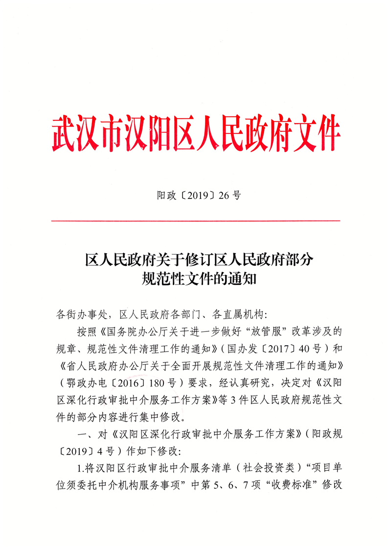 阳政〔2019〕26号—区人民政府关于修订区人民政府部分规范性文件的通知