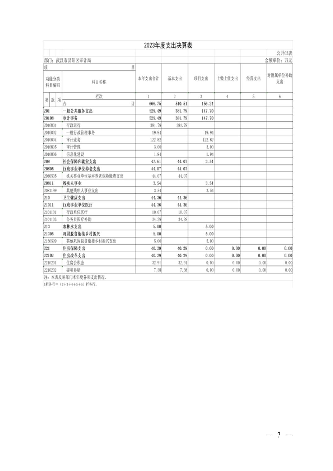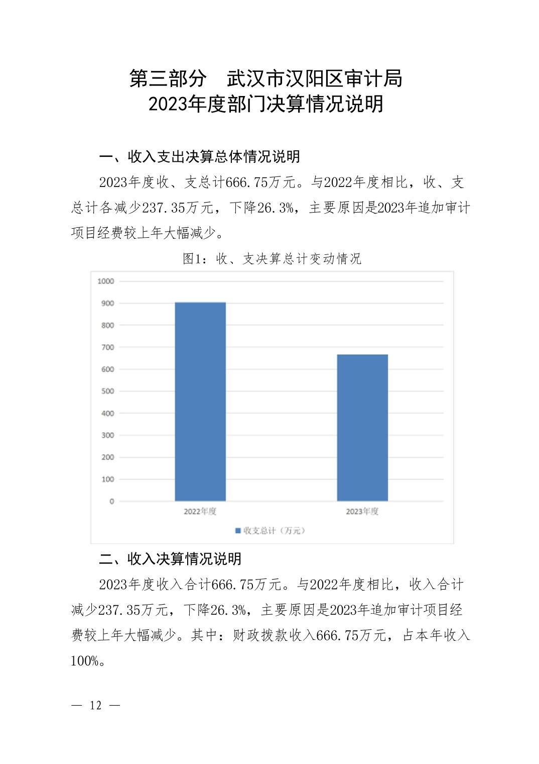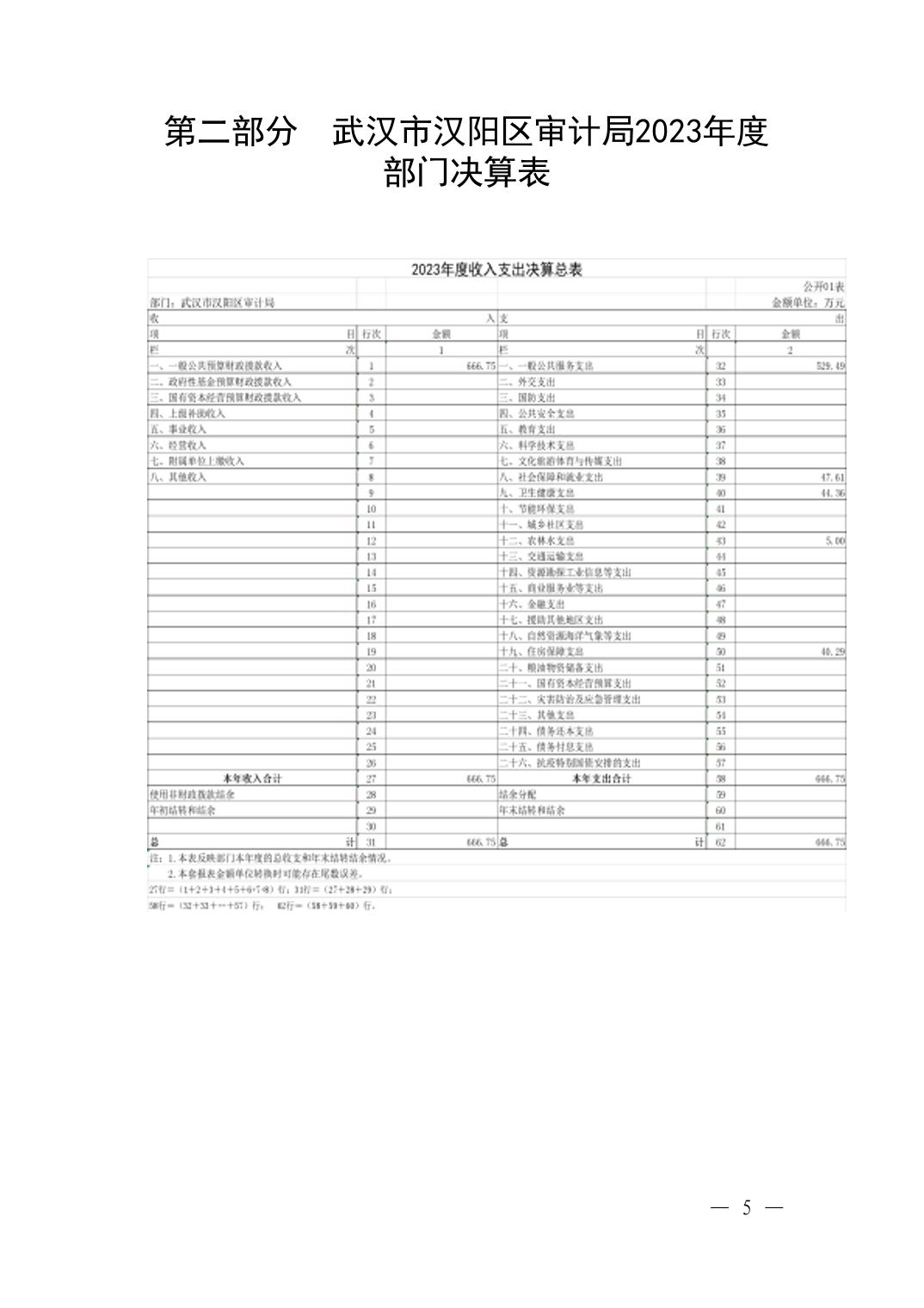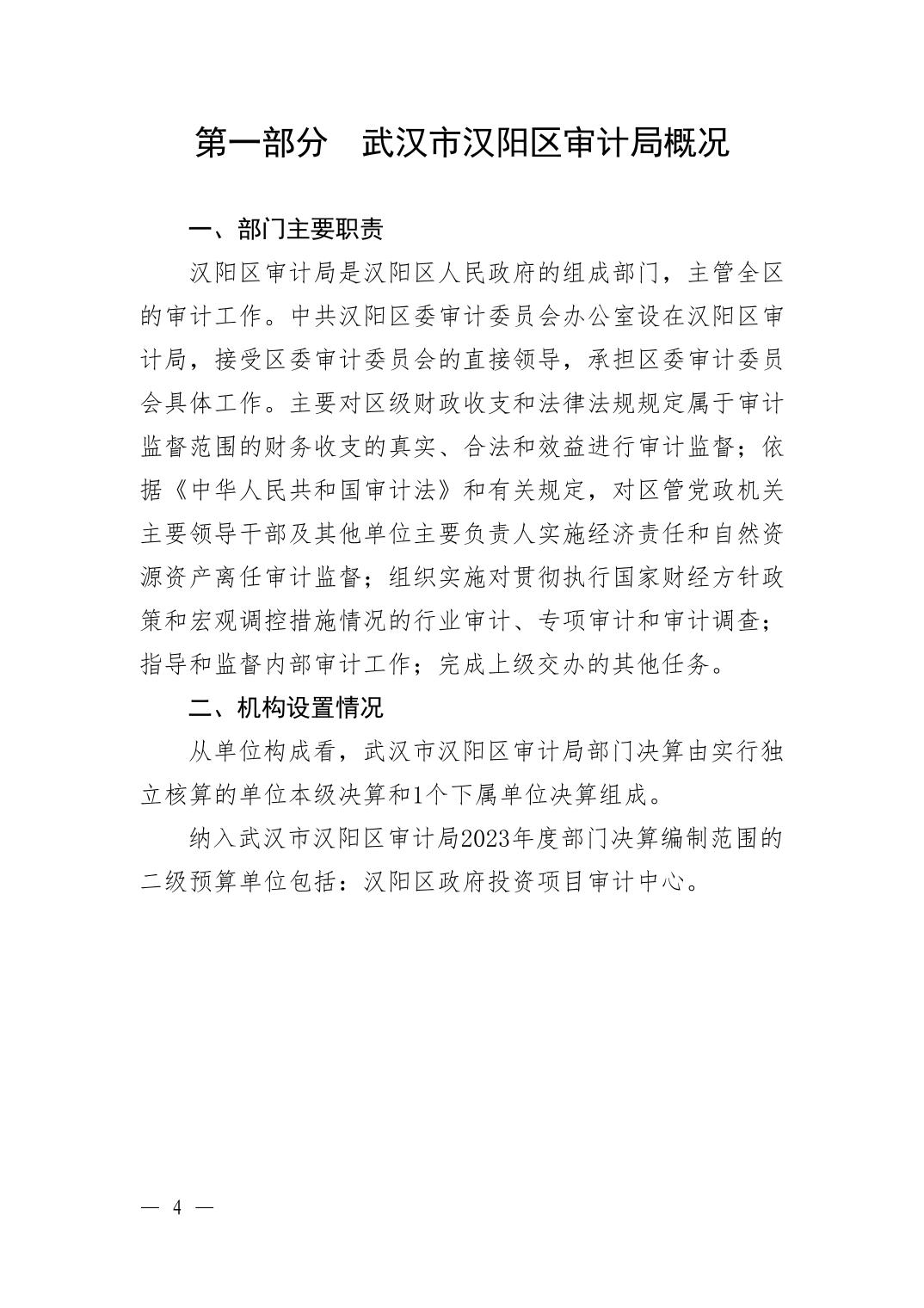 2023年度武汉市汉阳区审计局部门决算公开