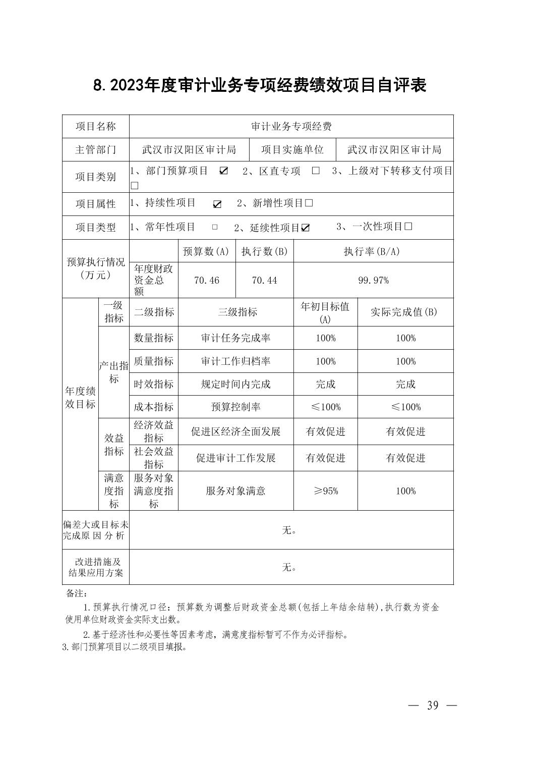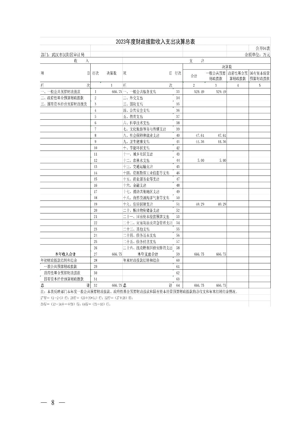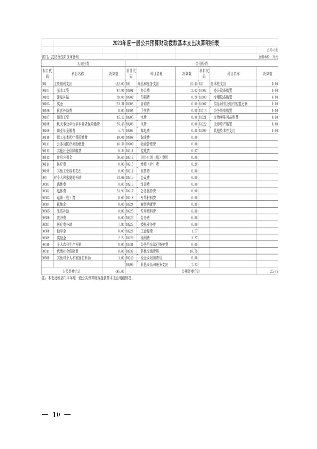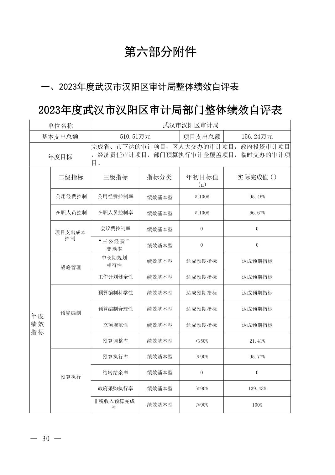 2023年度武汉市汉阳区审计局部门决算公开