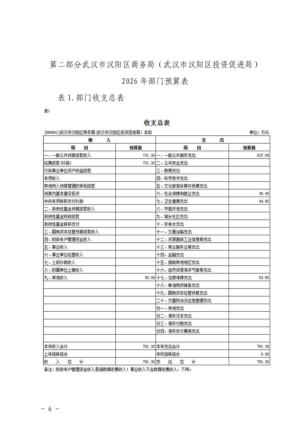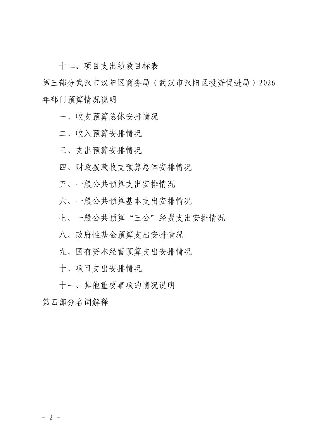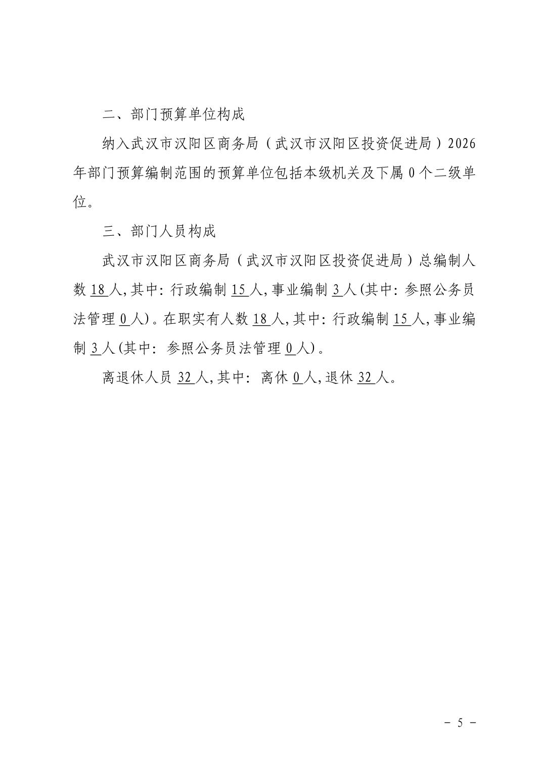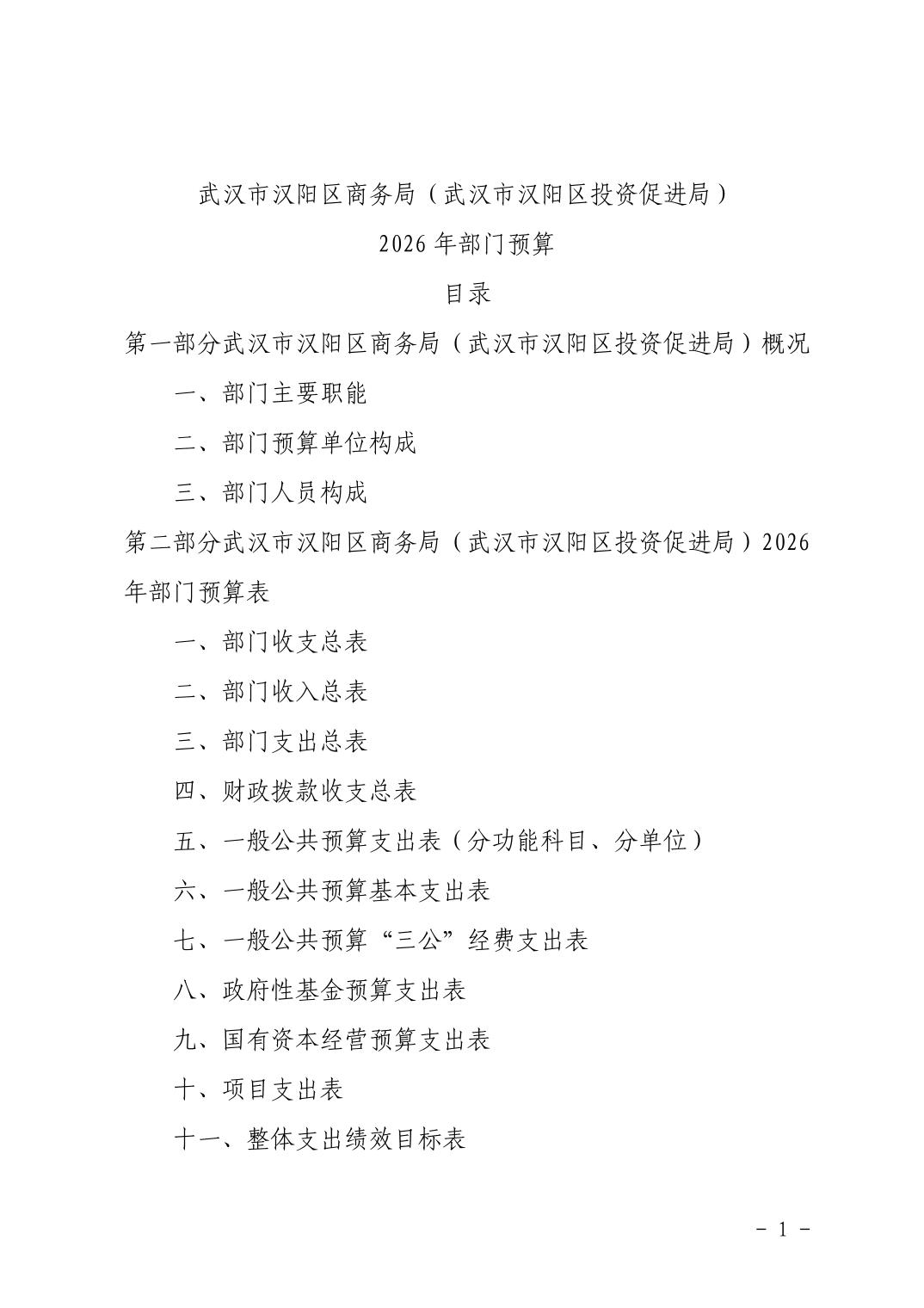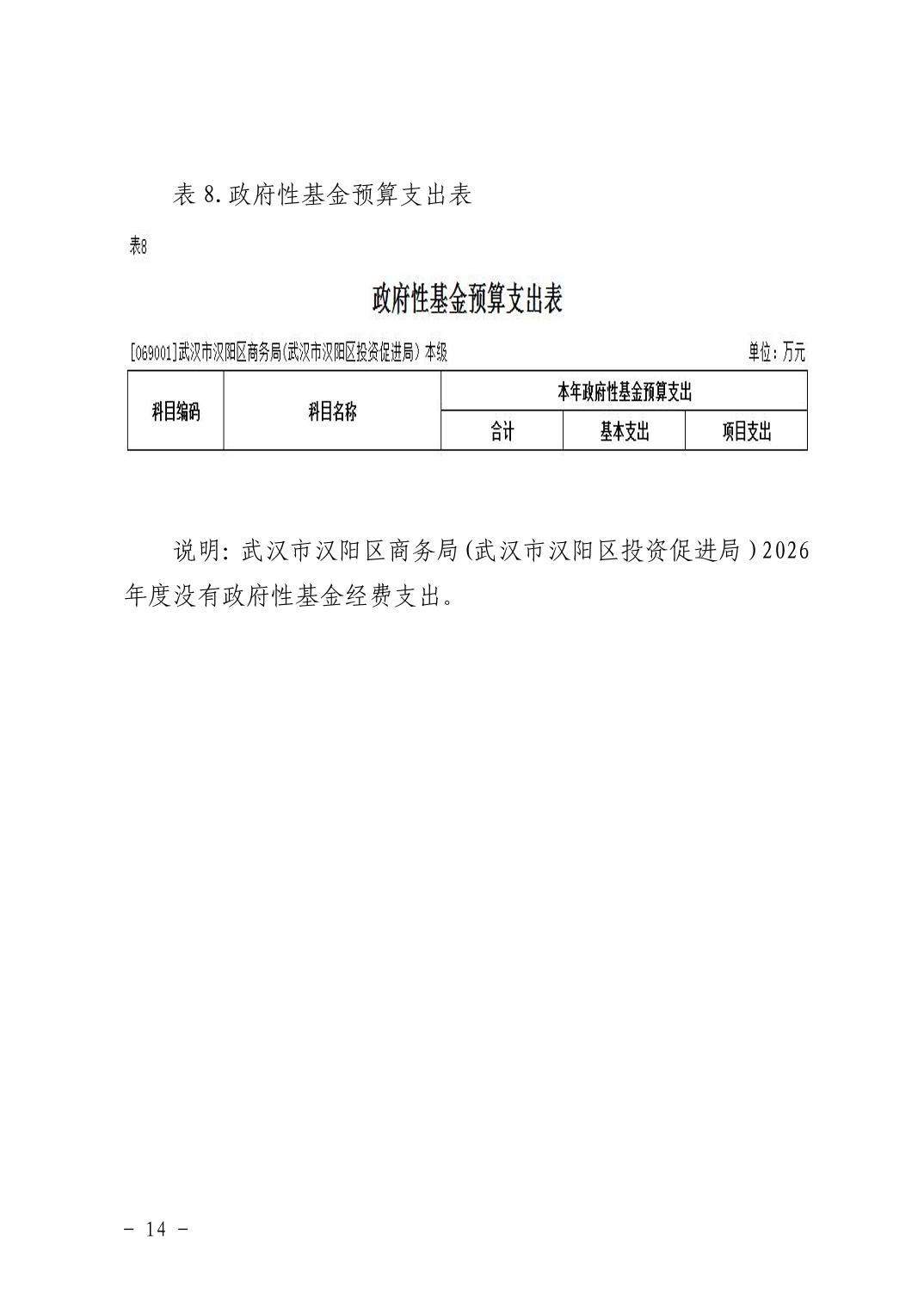 武汉市汉阳区商务局(武汉市汉阳区投资促进局) 2026年部门预算