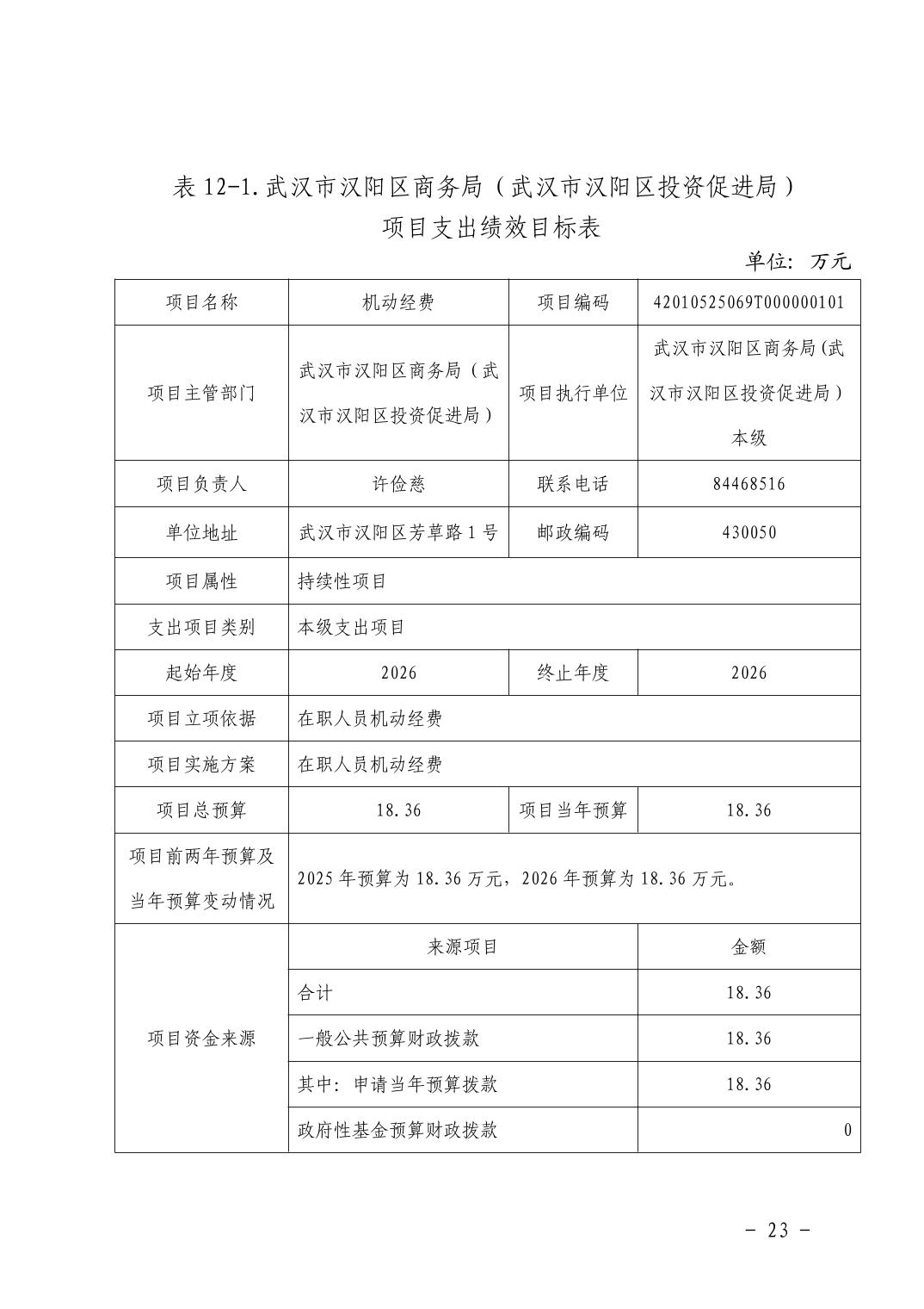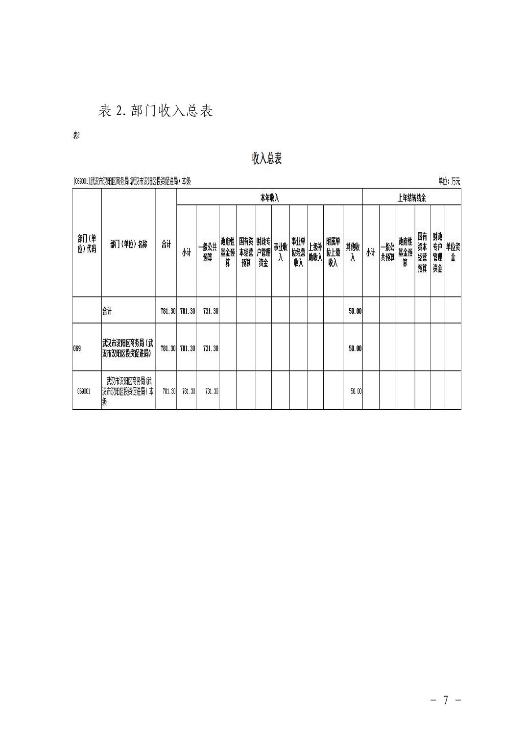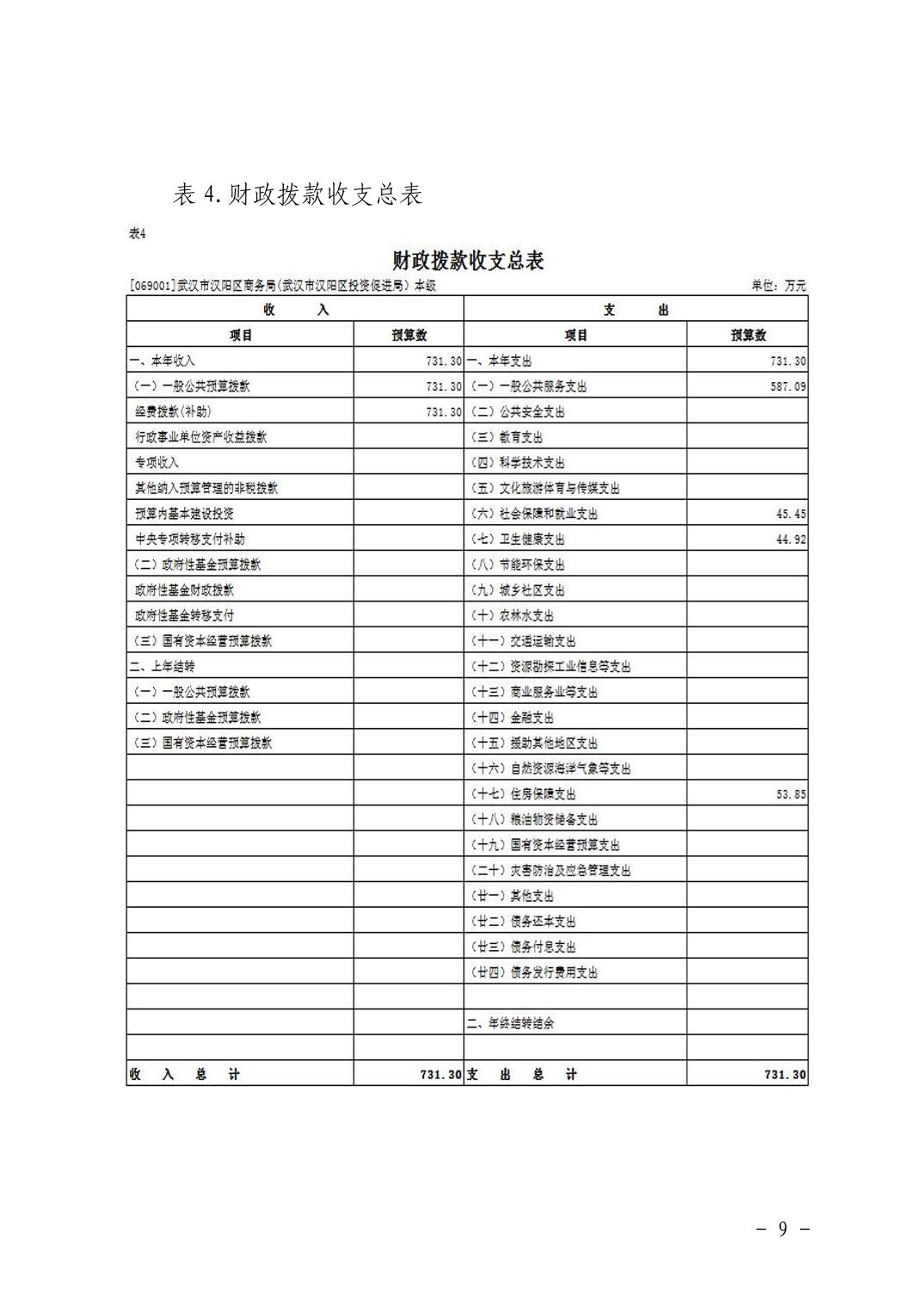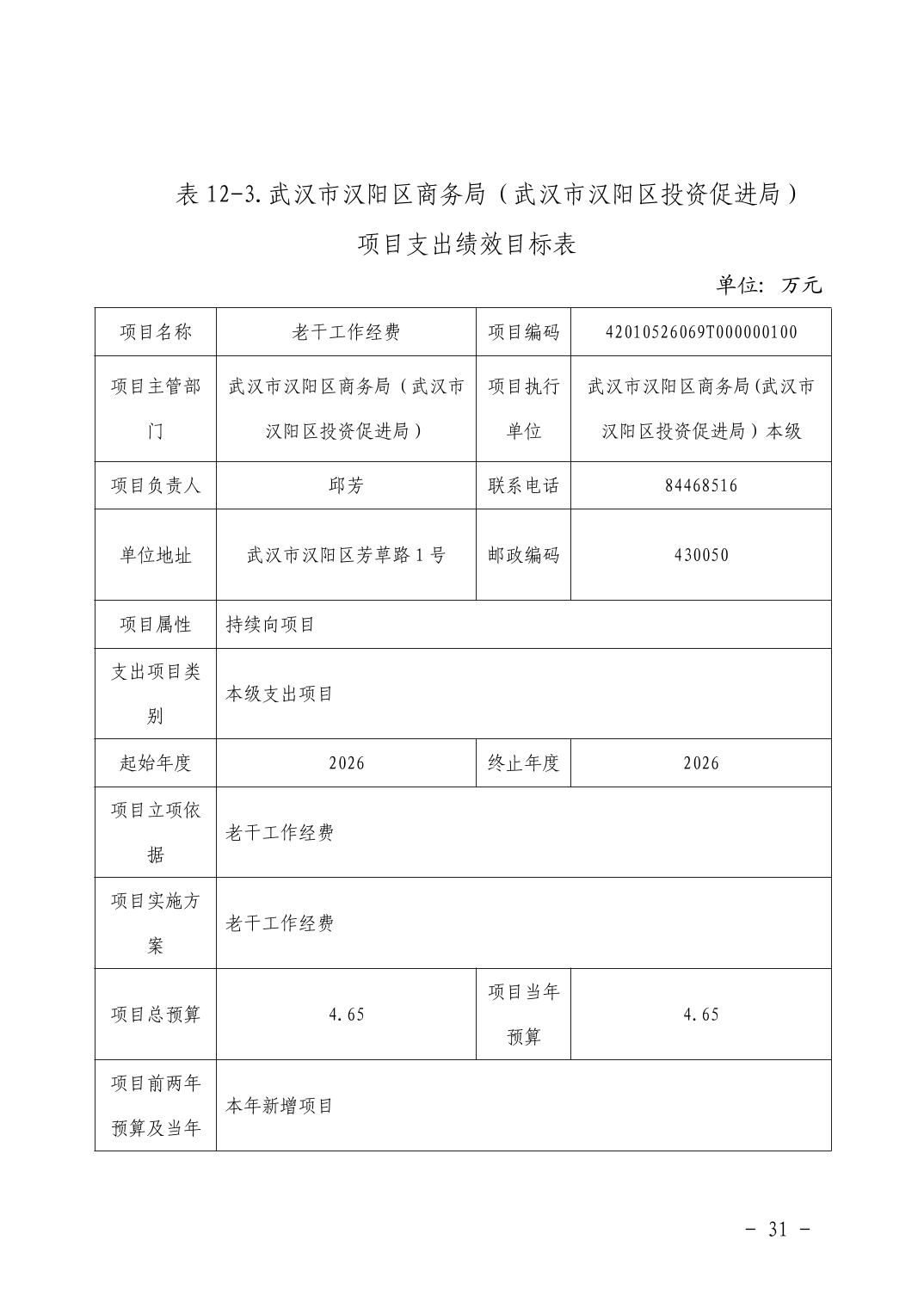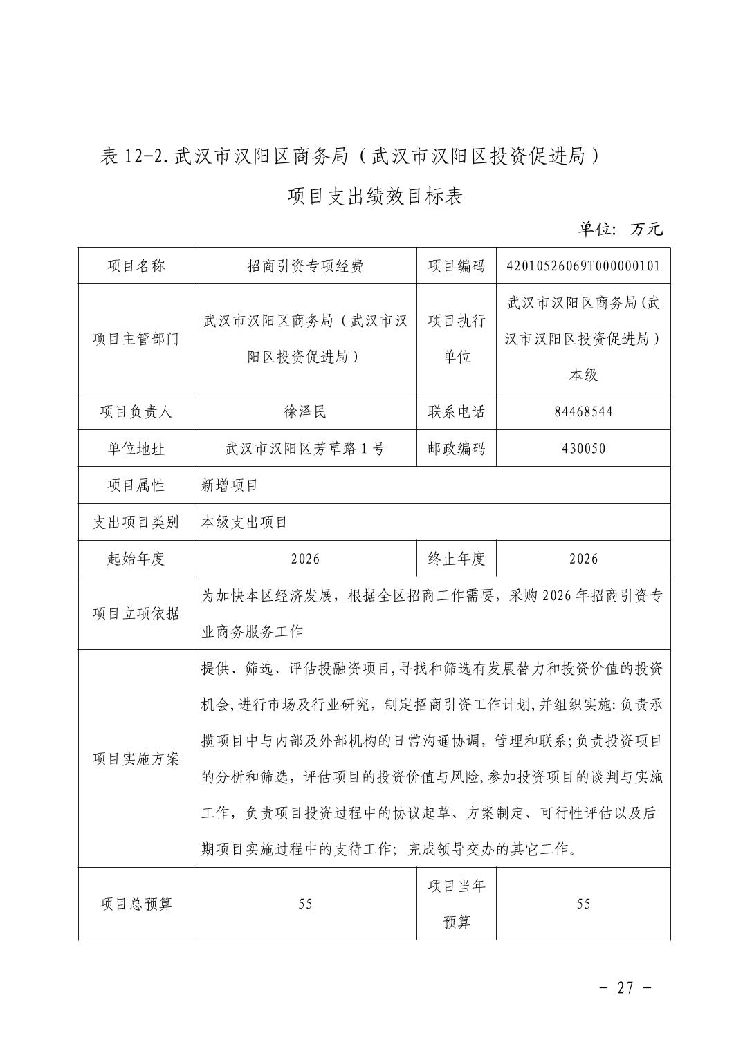 武汉市汉阳区商务局(武汉市汉阳区投资促进局) 2026年部门预算