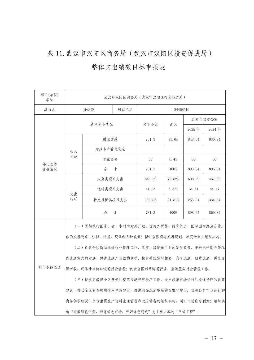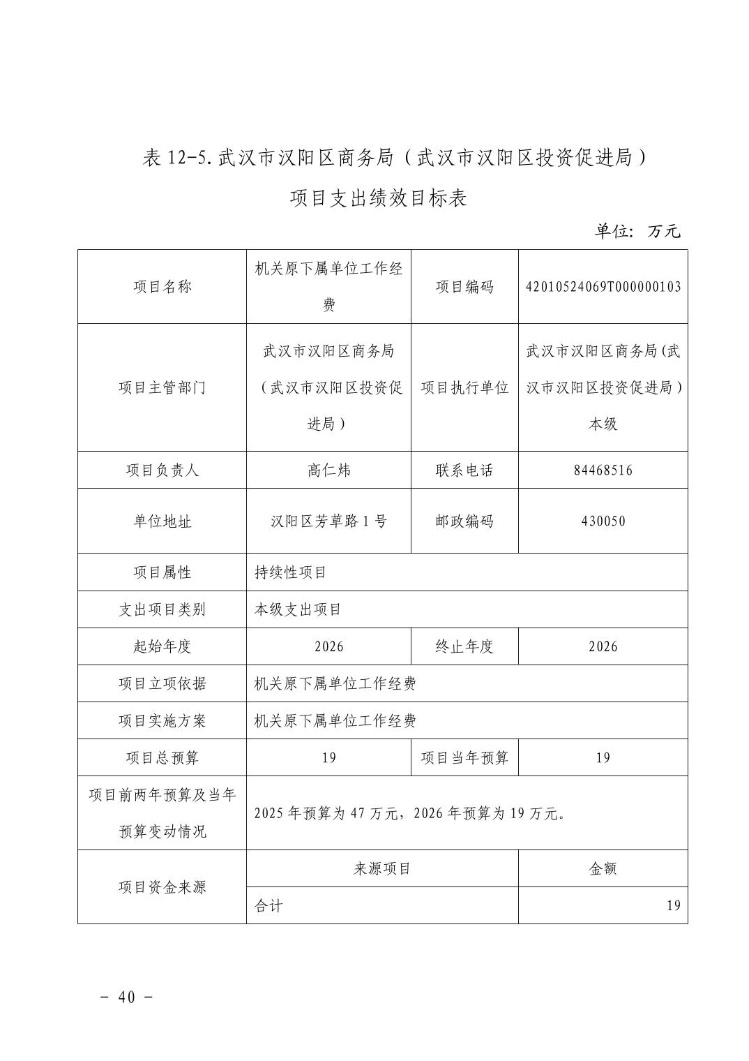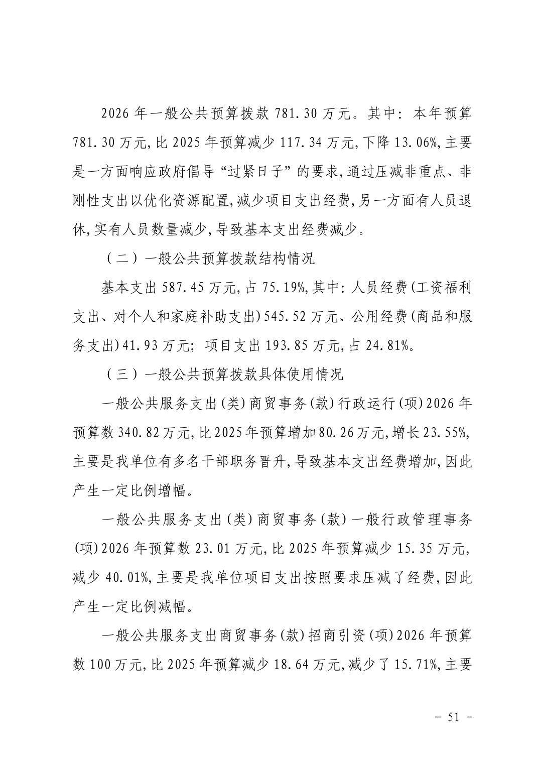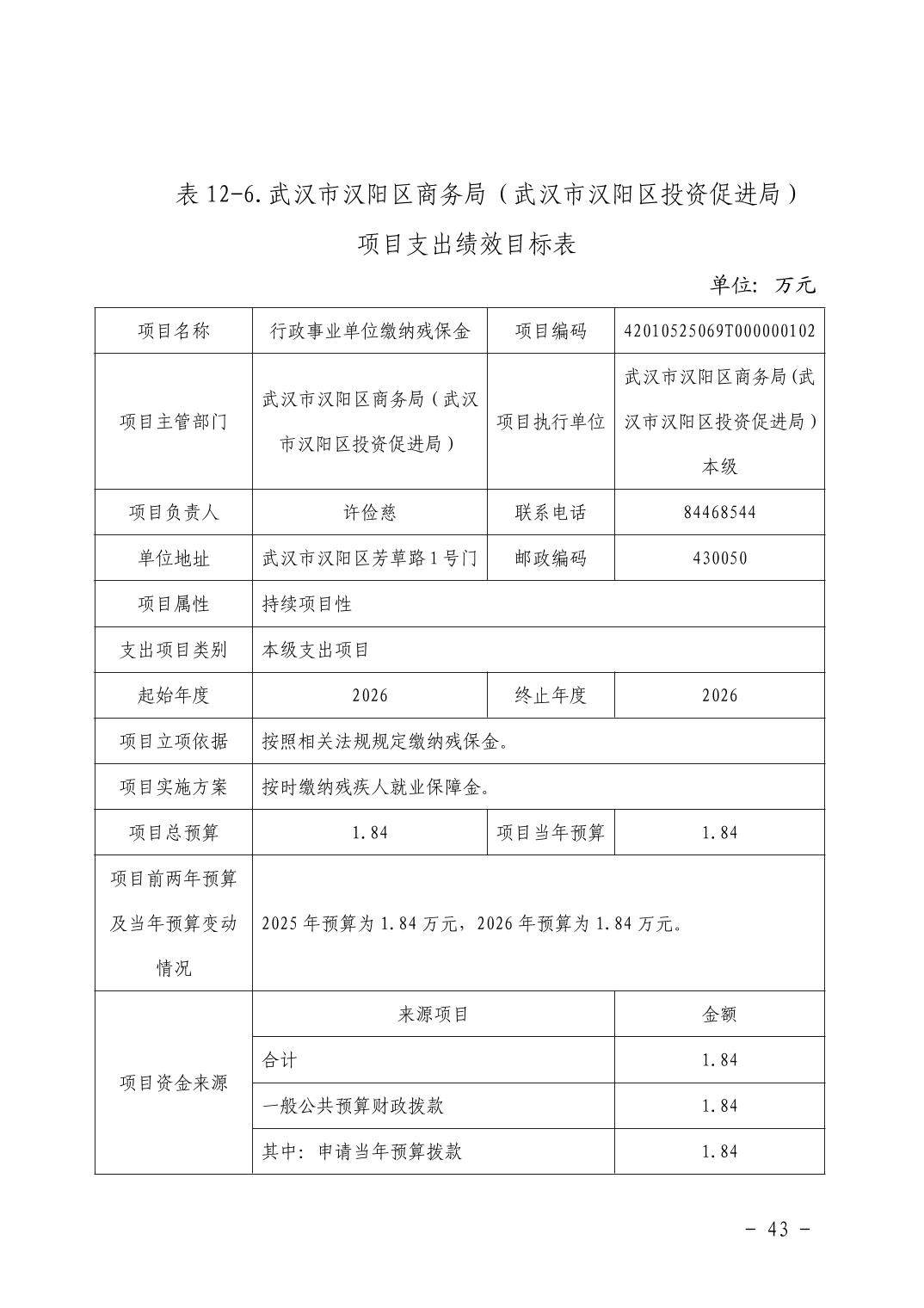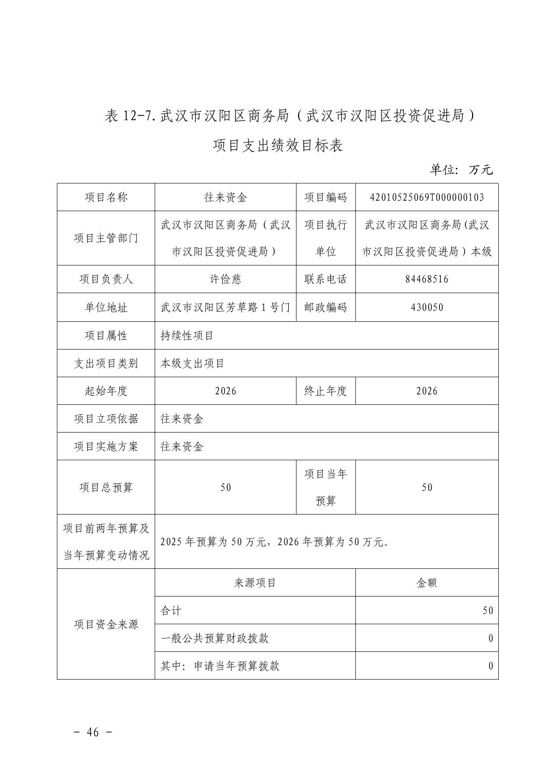武汉市汉阳区商务局(武汉市汉阳区投资促进局) 2026年部门预算
