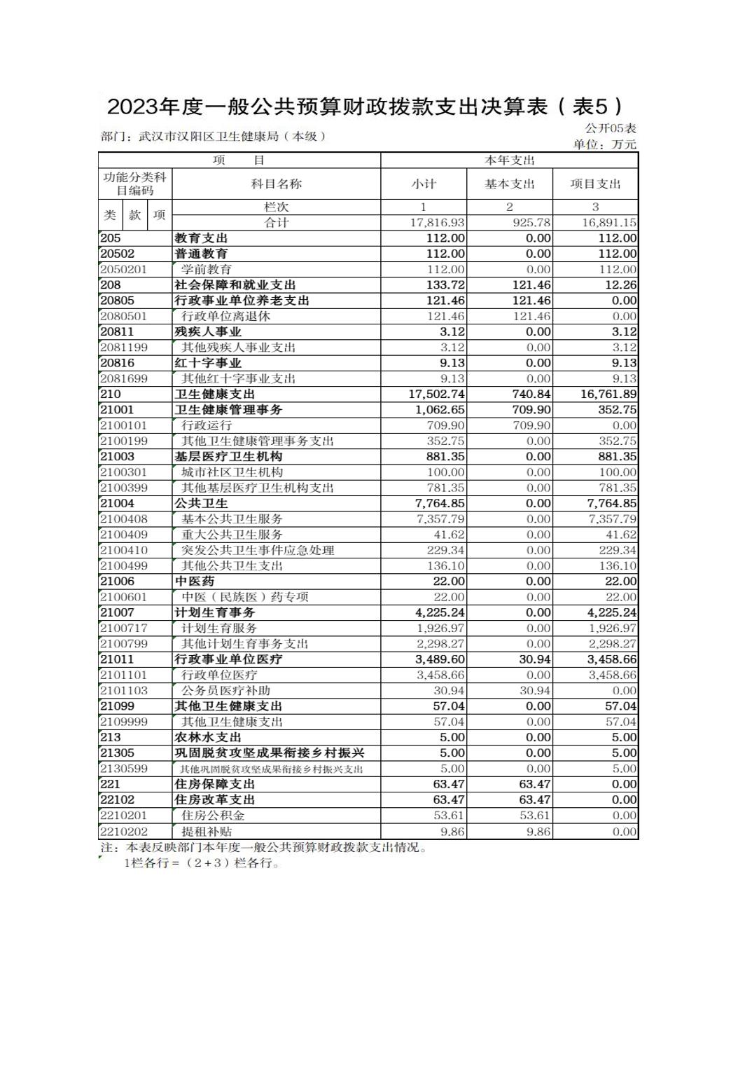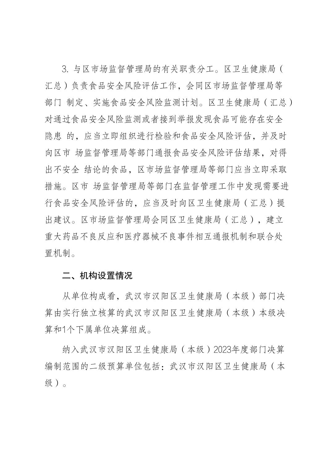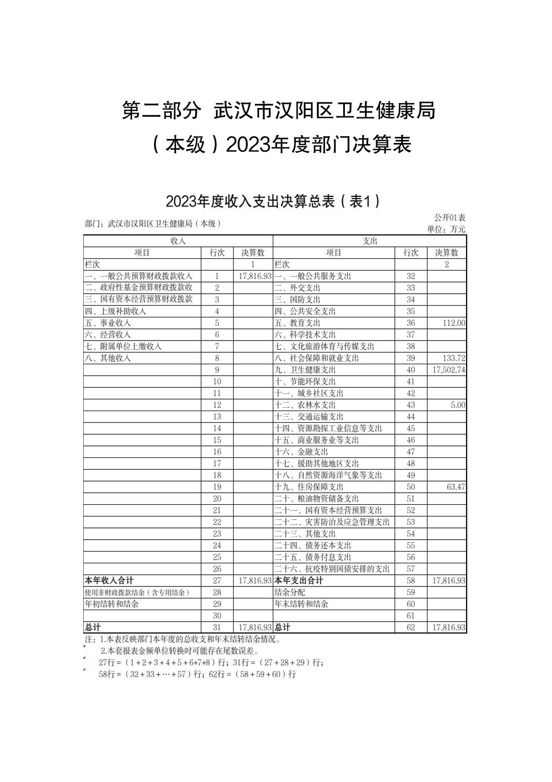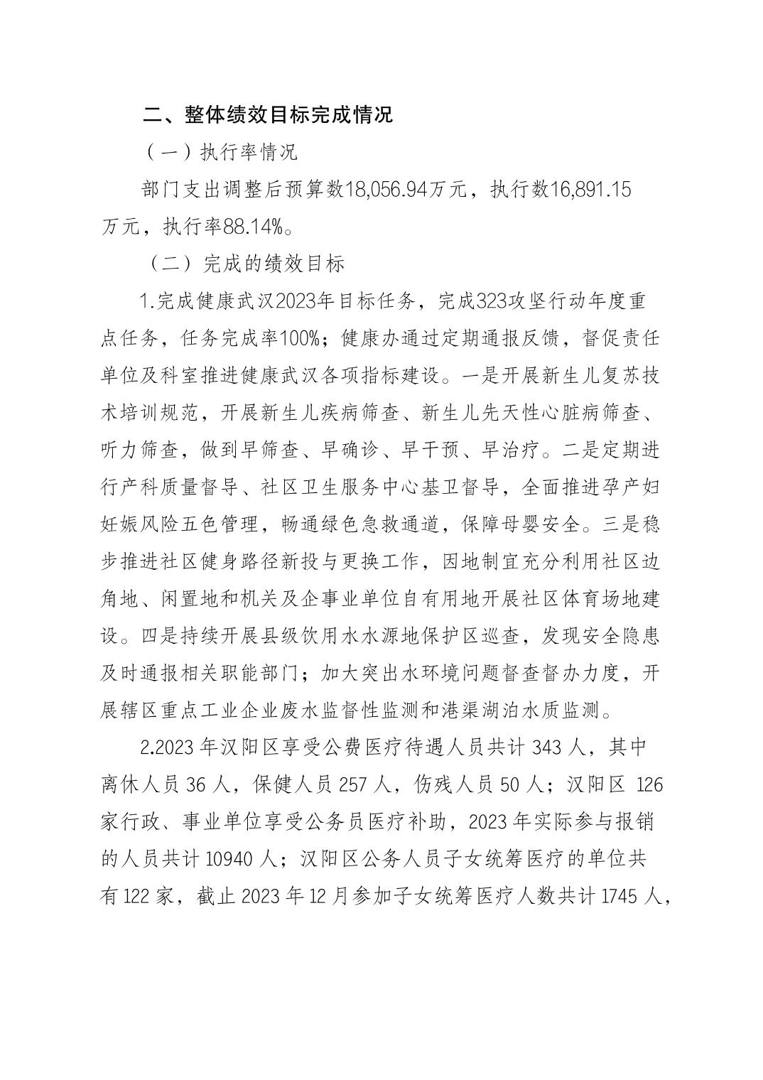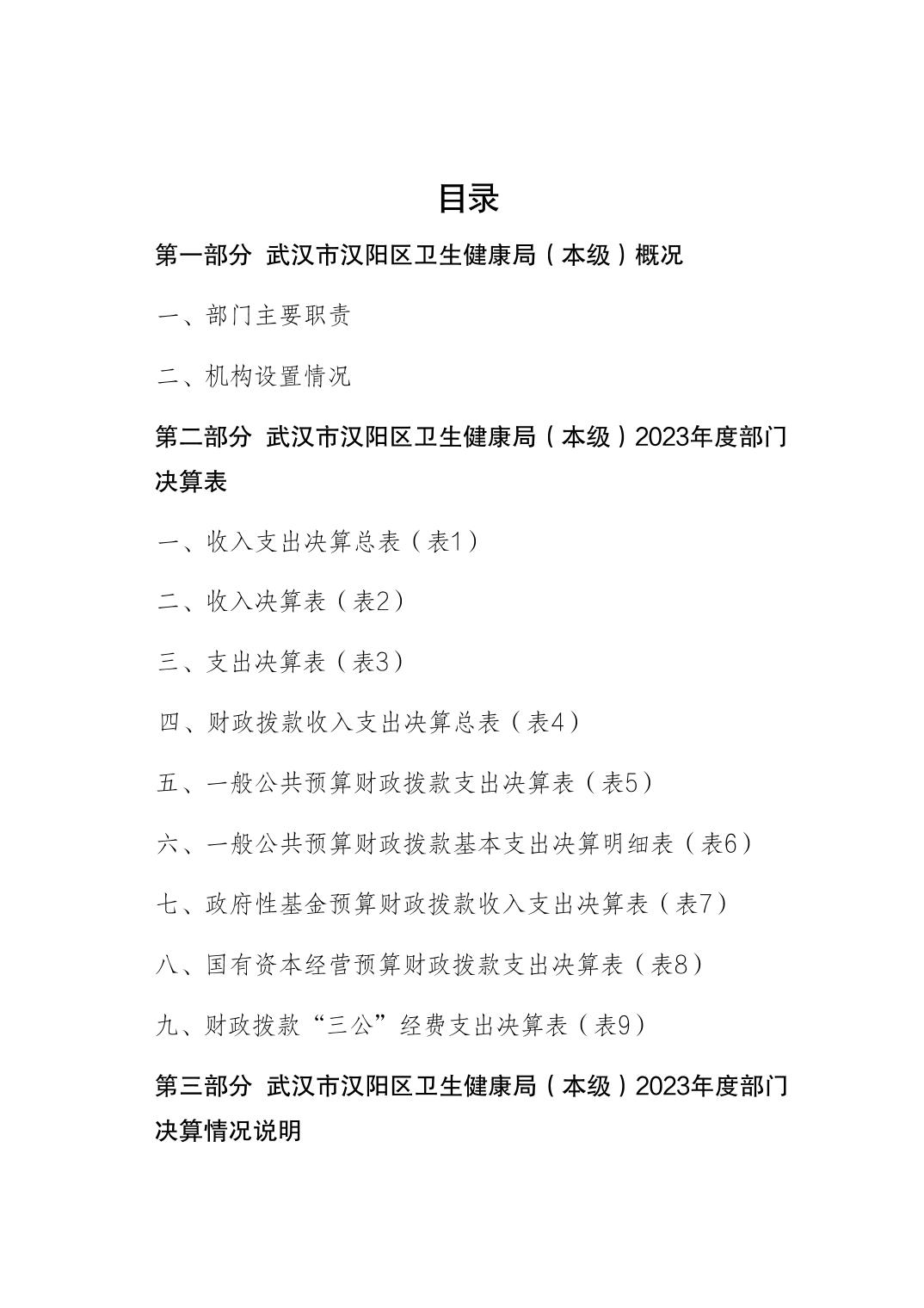 2023年度武汉市汉阳区卫生健康局(本级)部门决算公开