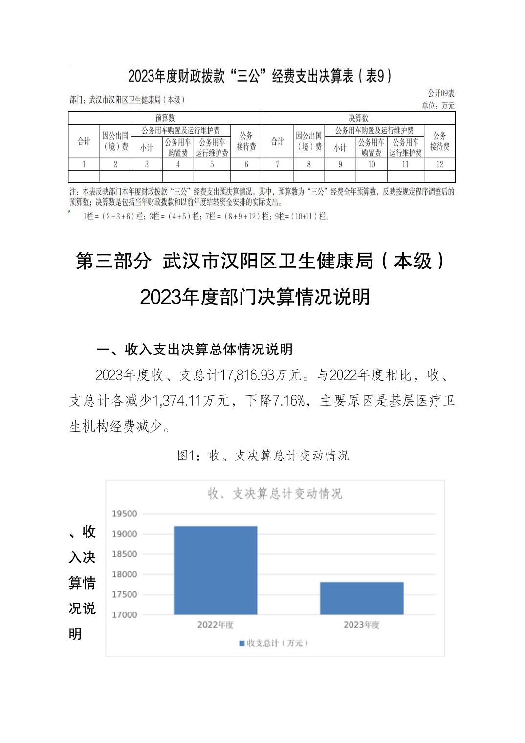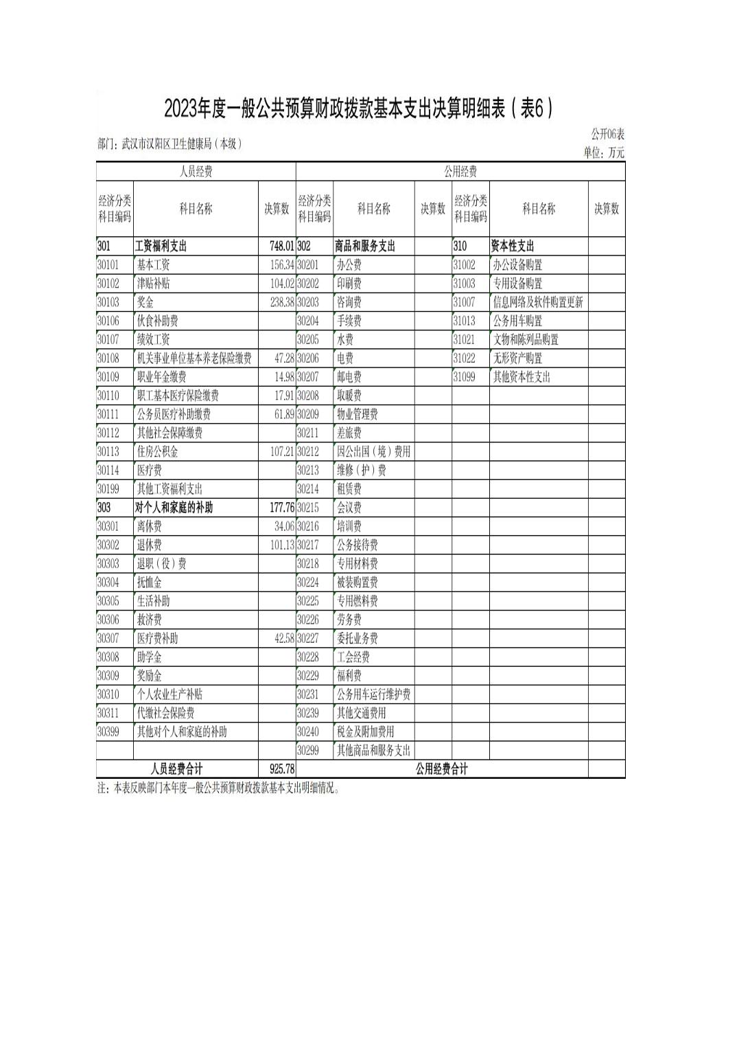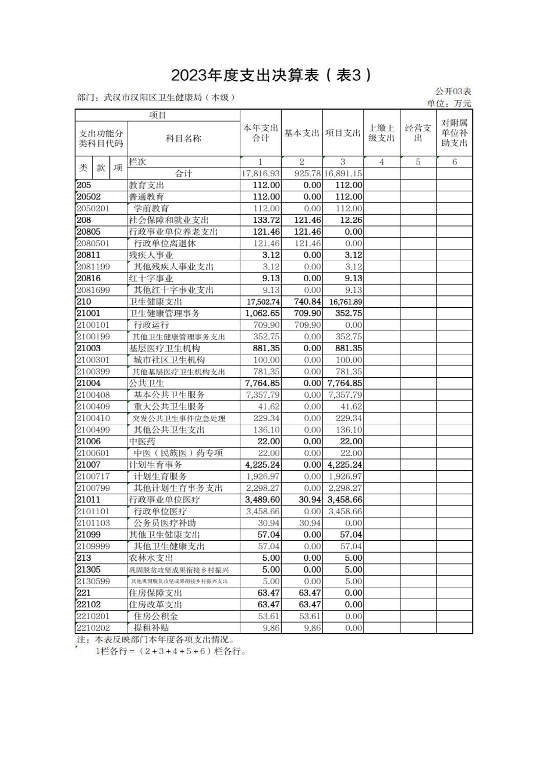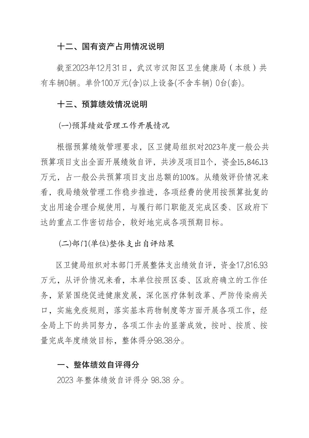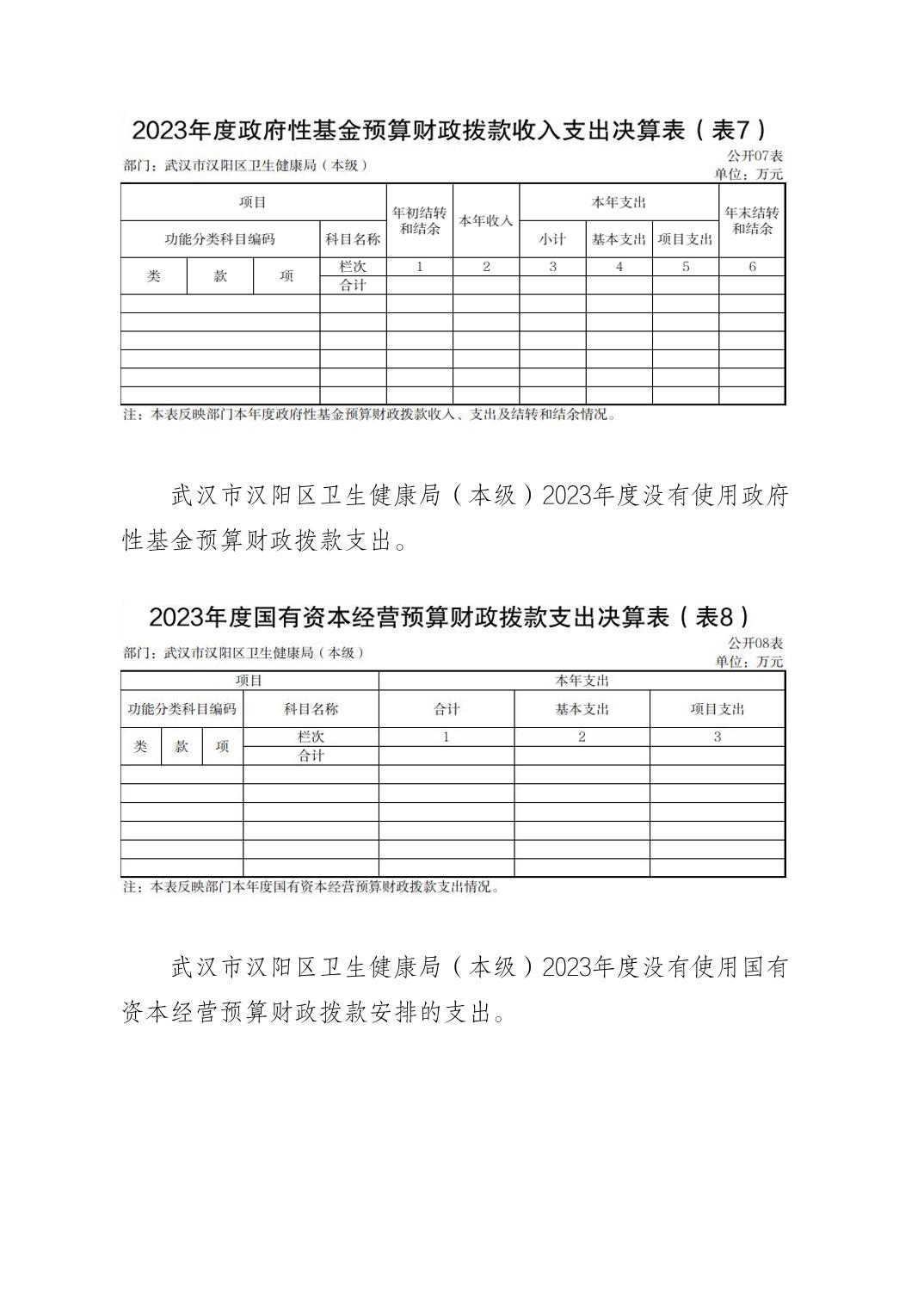 2023年度武汉市汉阳区卫生健康局(本级)部门决算公开