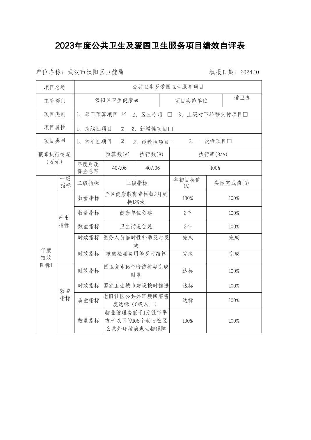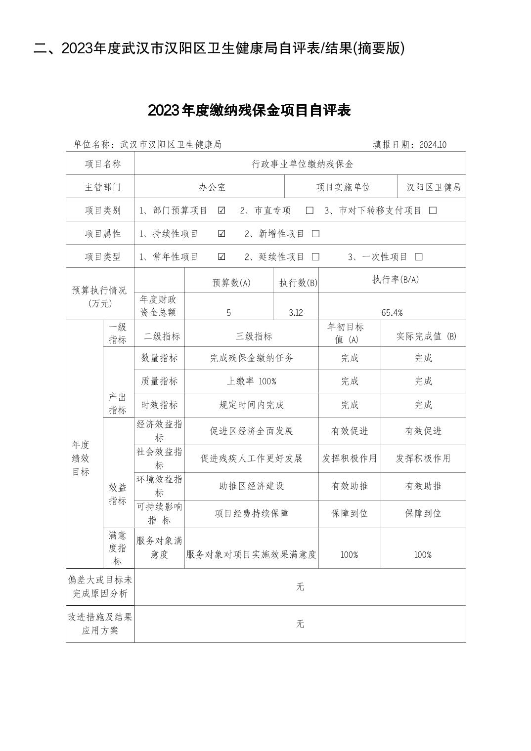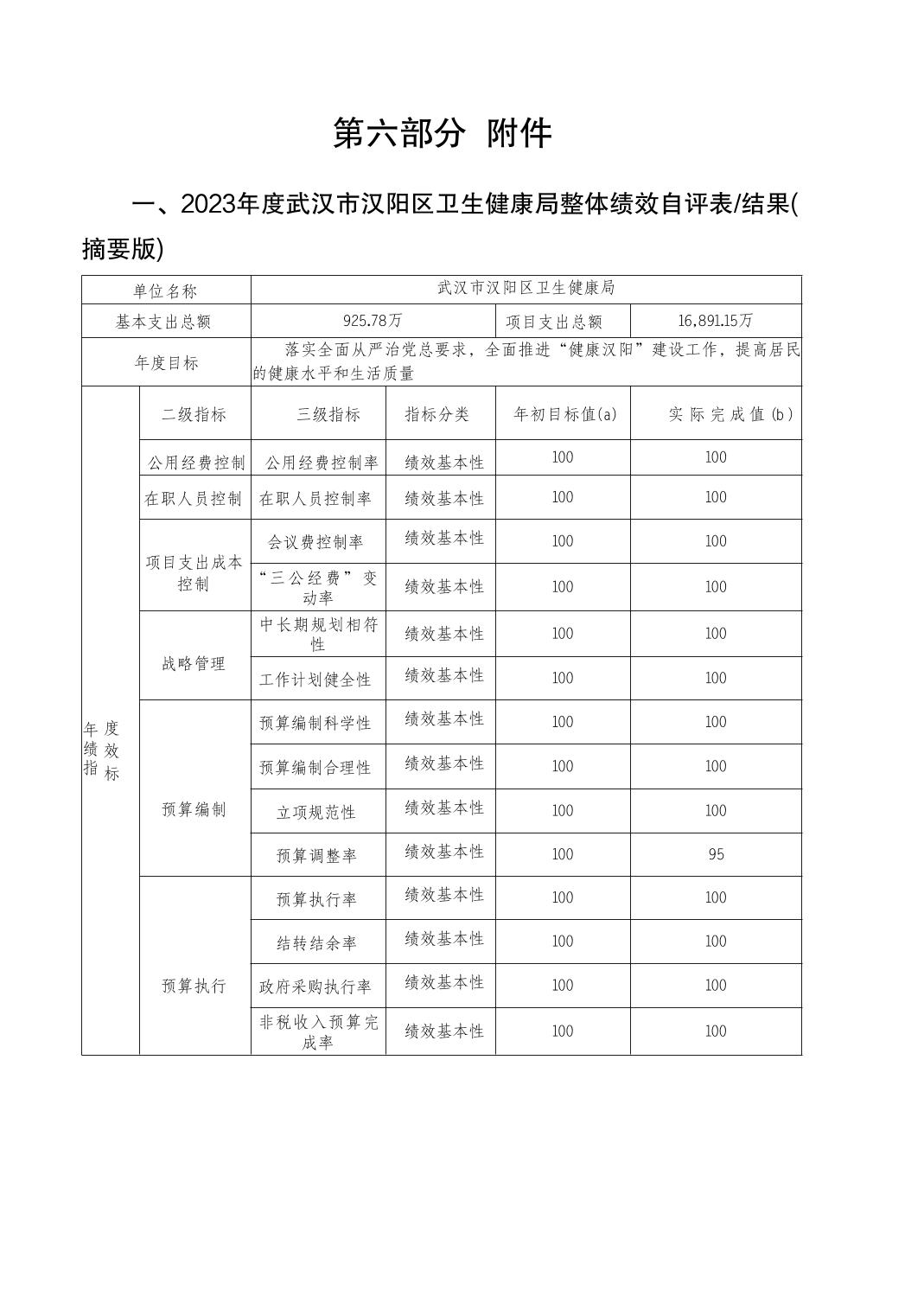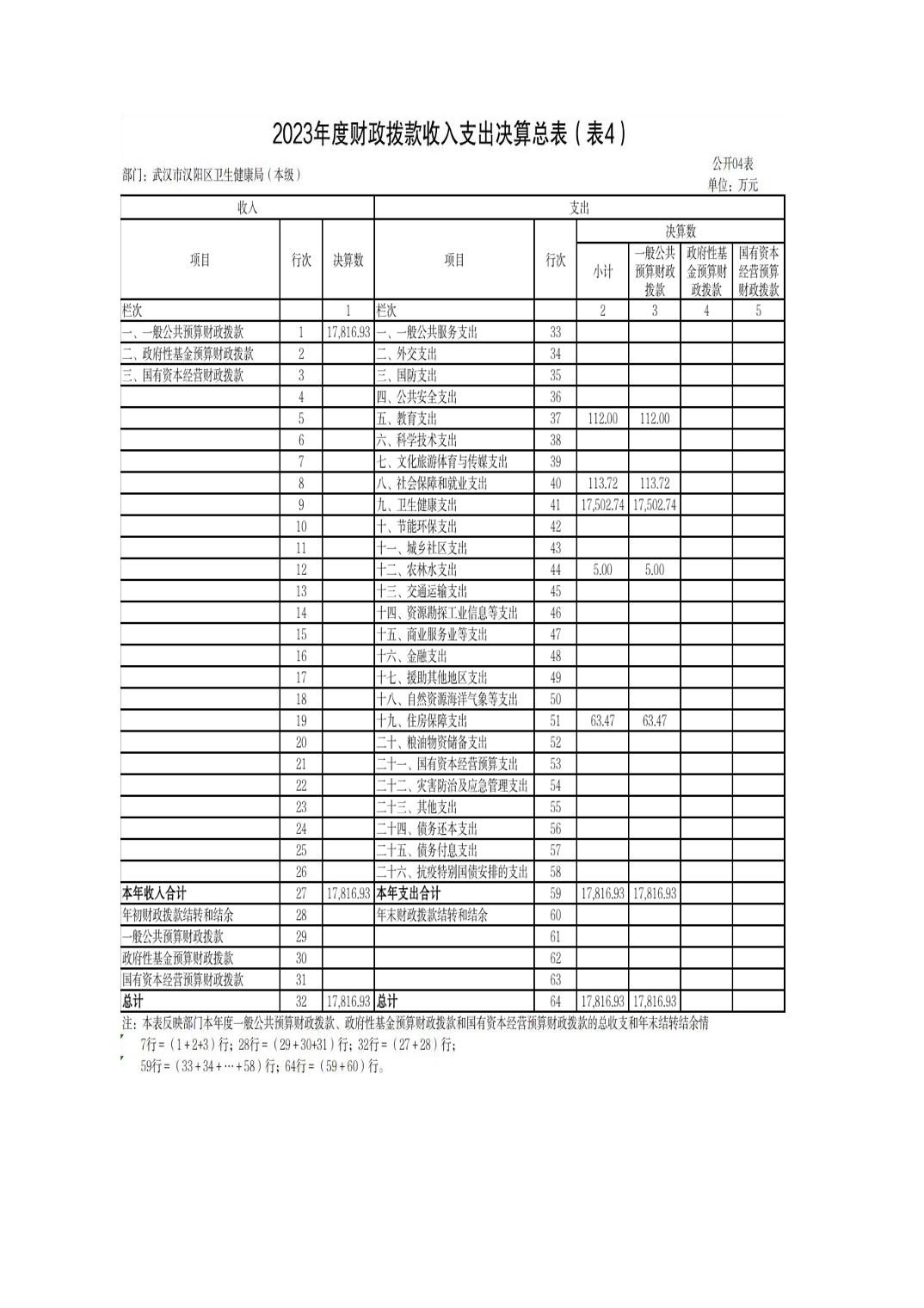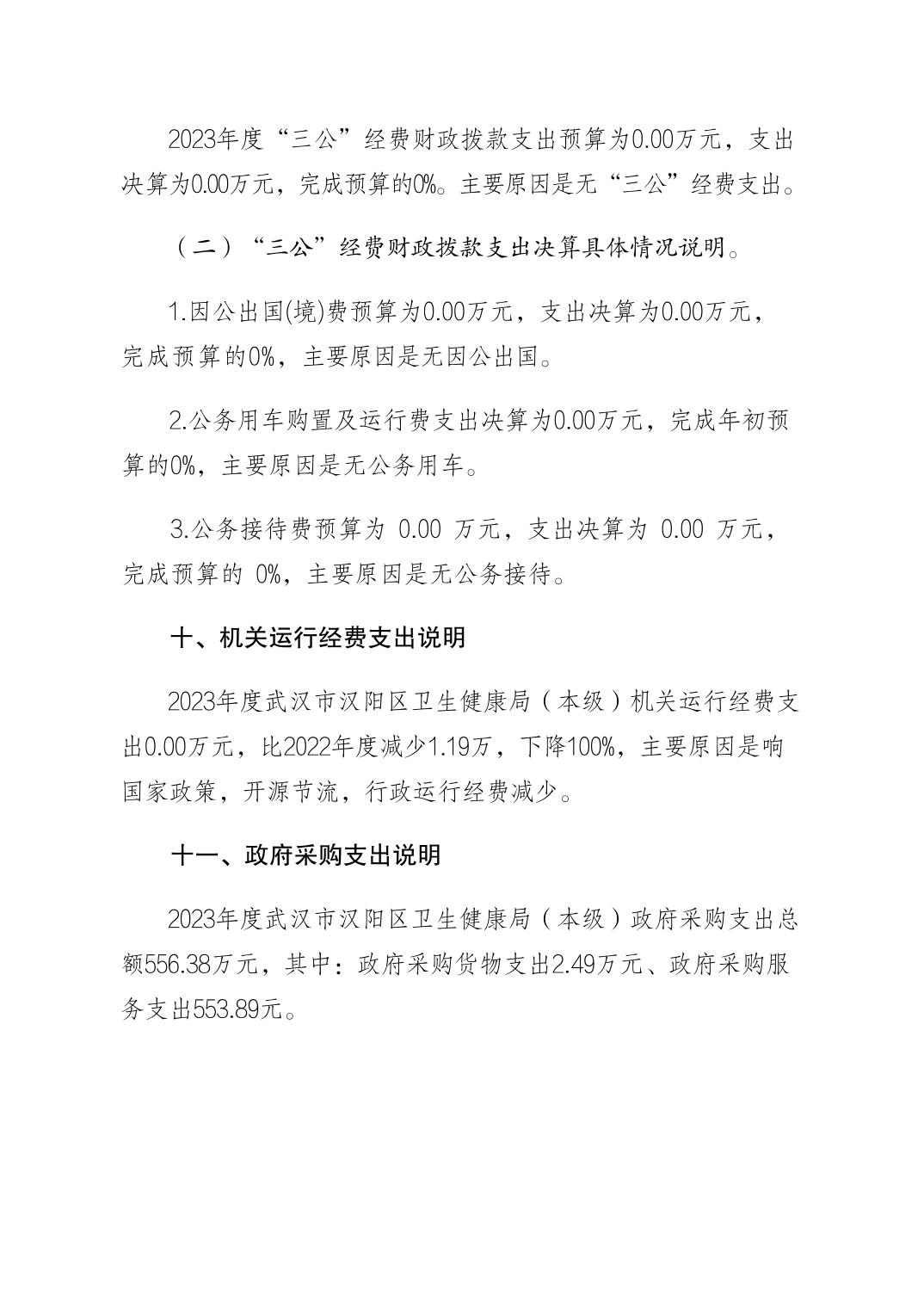 2023年度武汉市汉阳区卫生健康局(本级)部门决算公开
