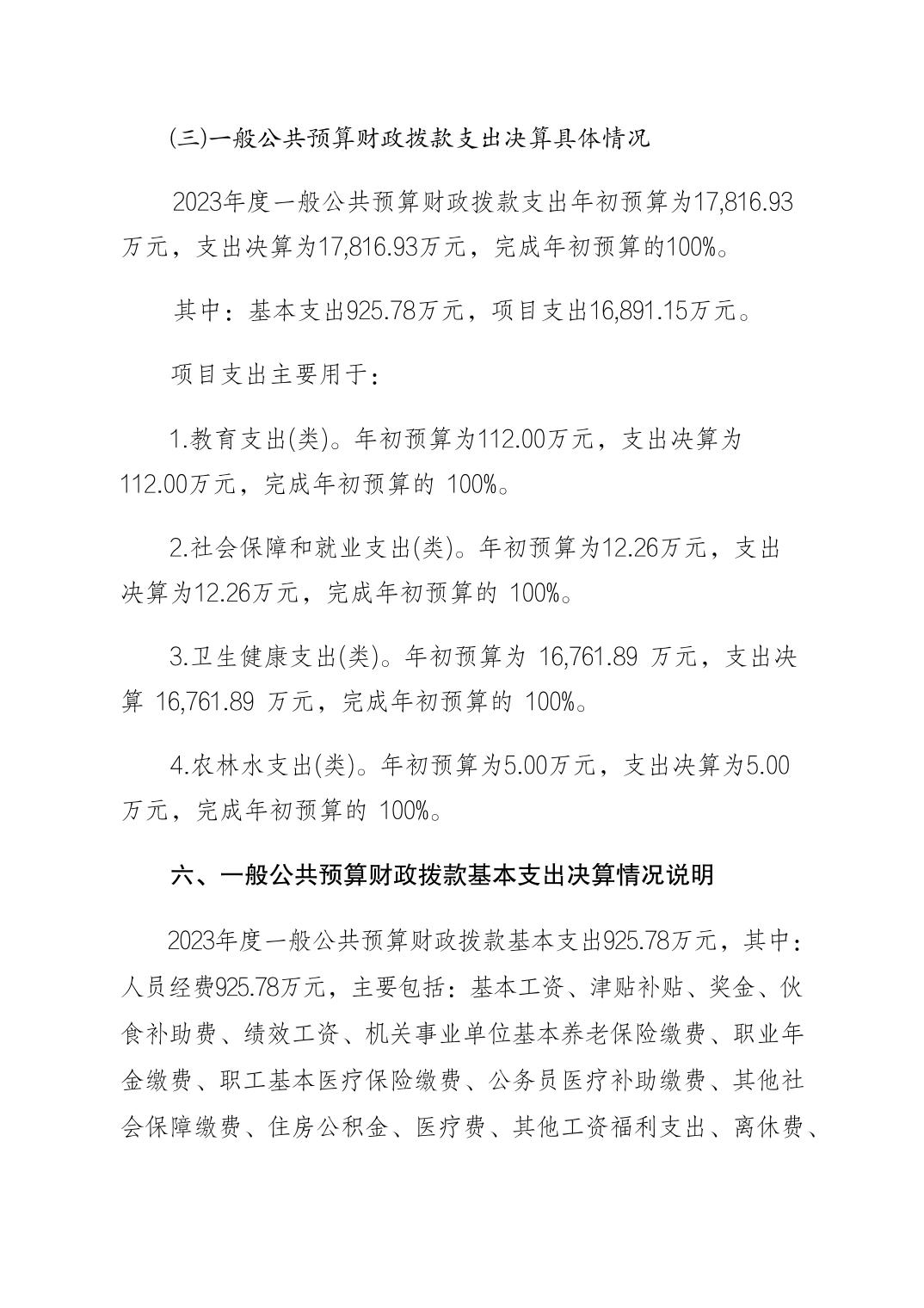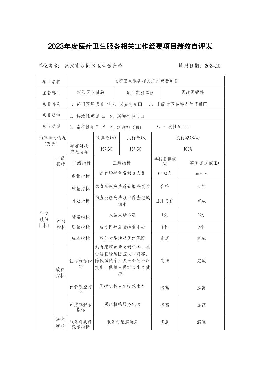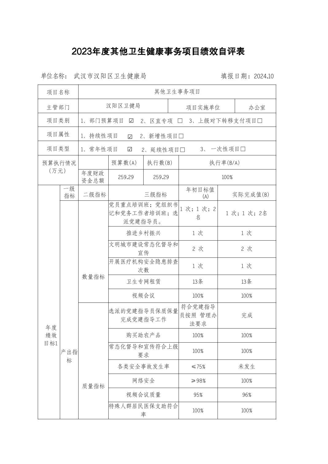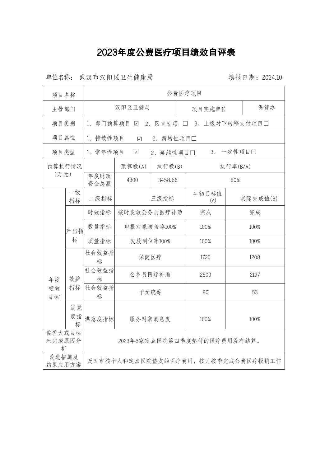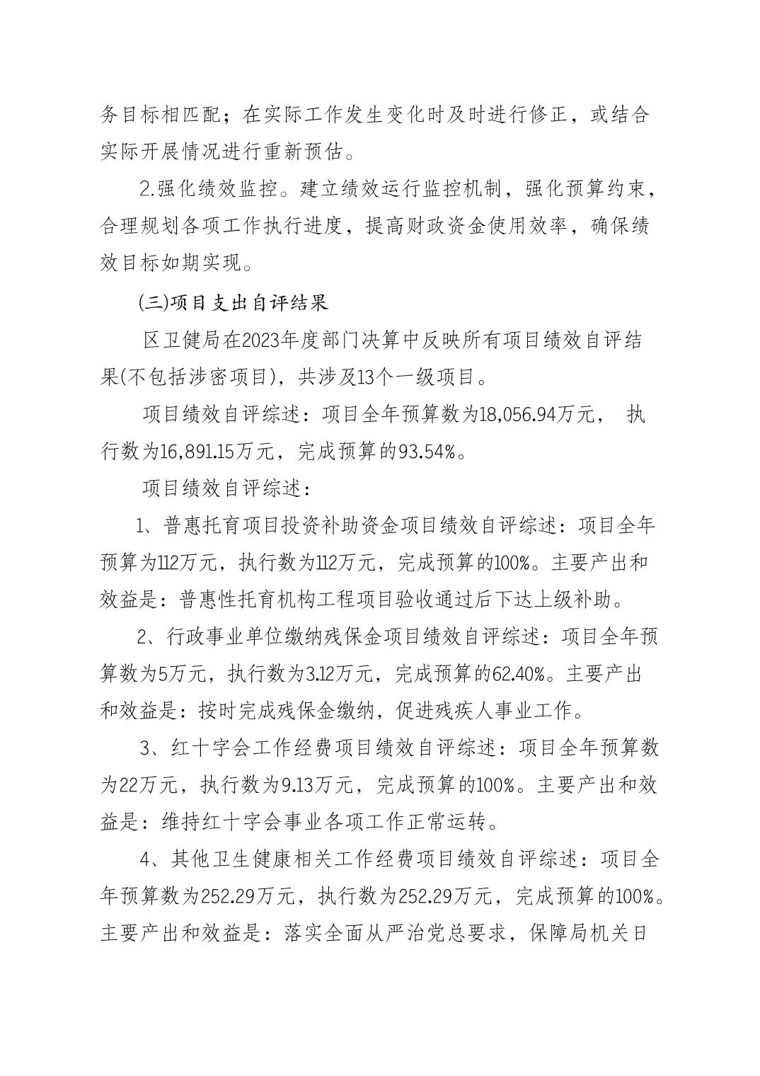 2023年度武汉市汉阳区卫生健康局(本级)部门决算公开