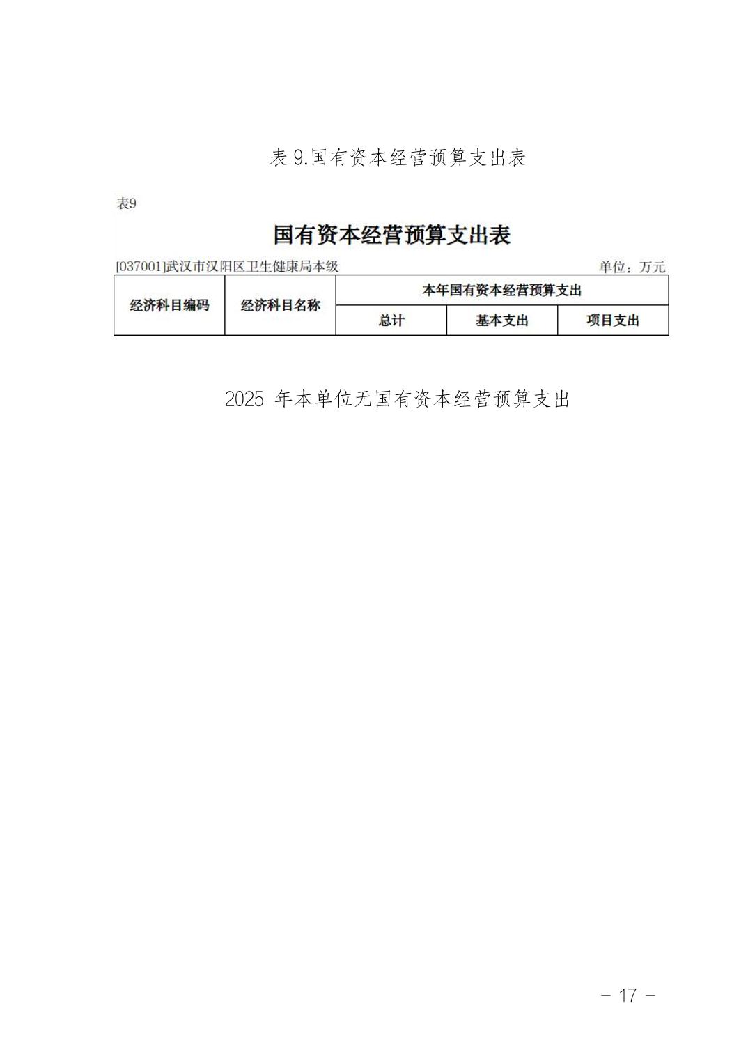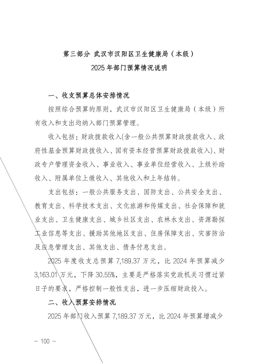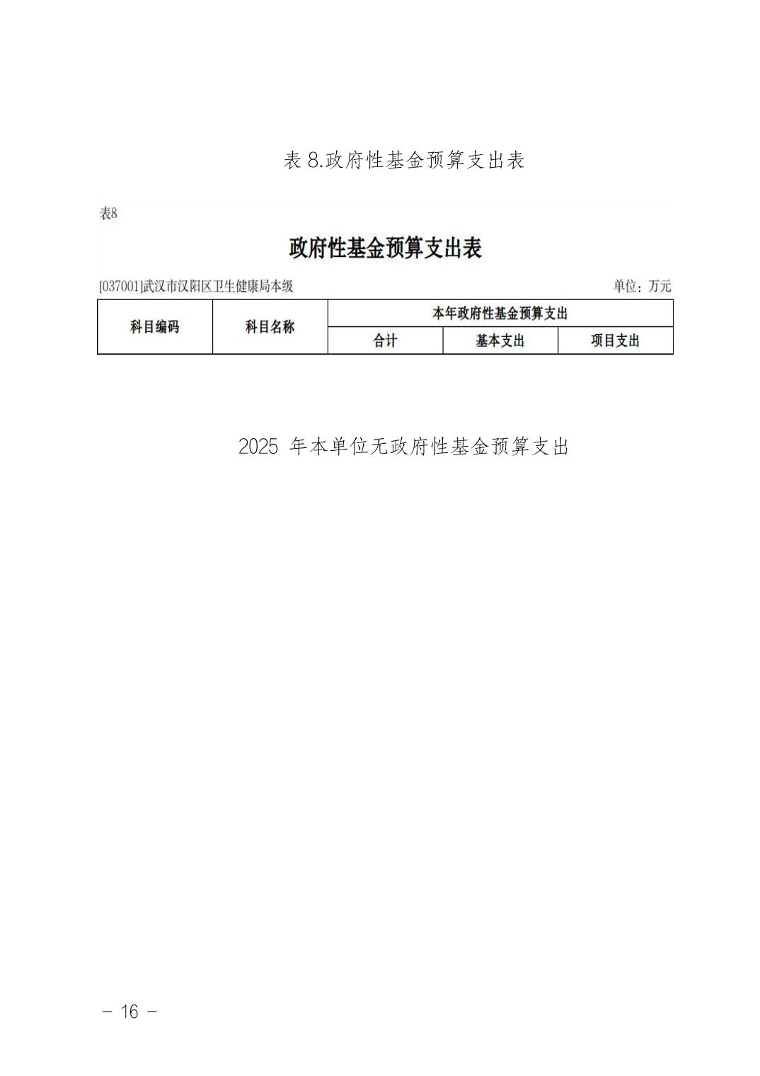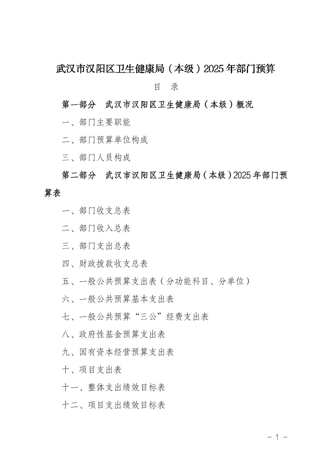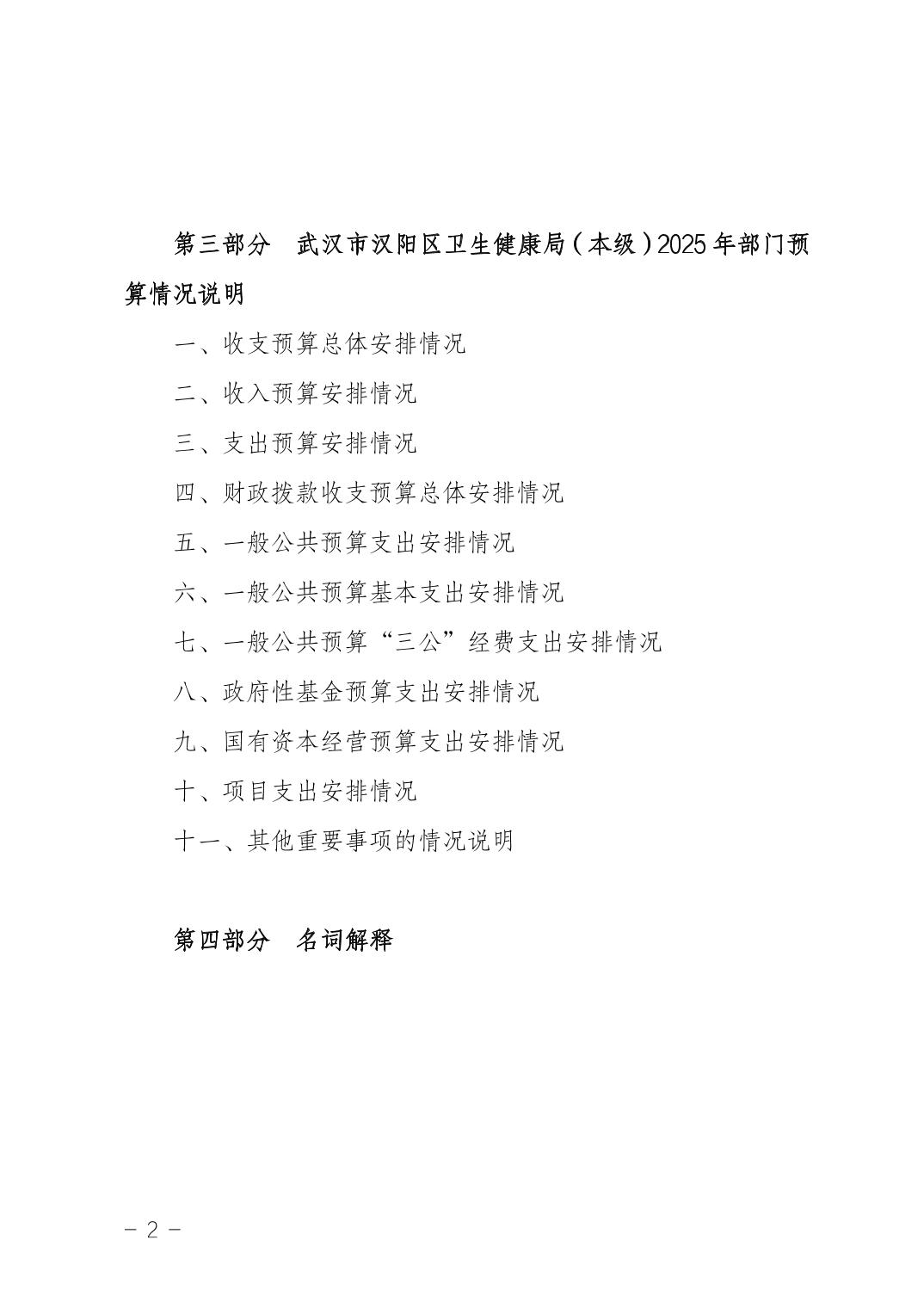 武汉市汉阳区卫生健康局(本级)2025年预算信息公开