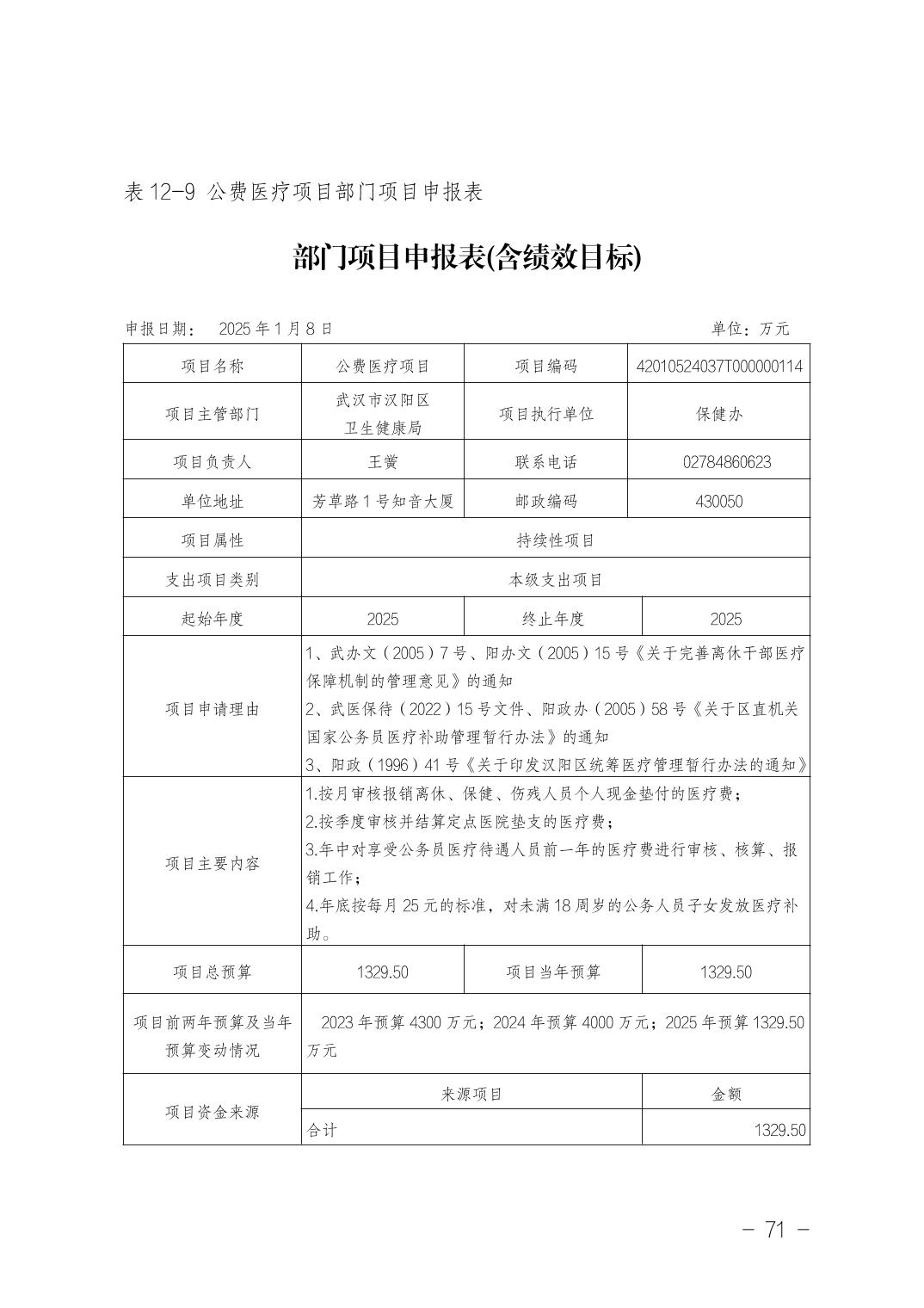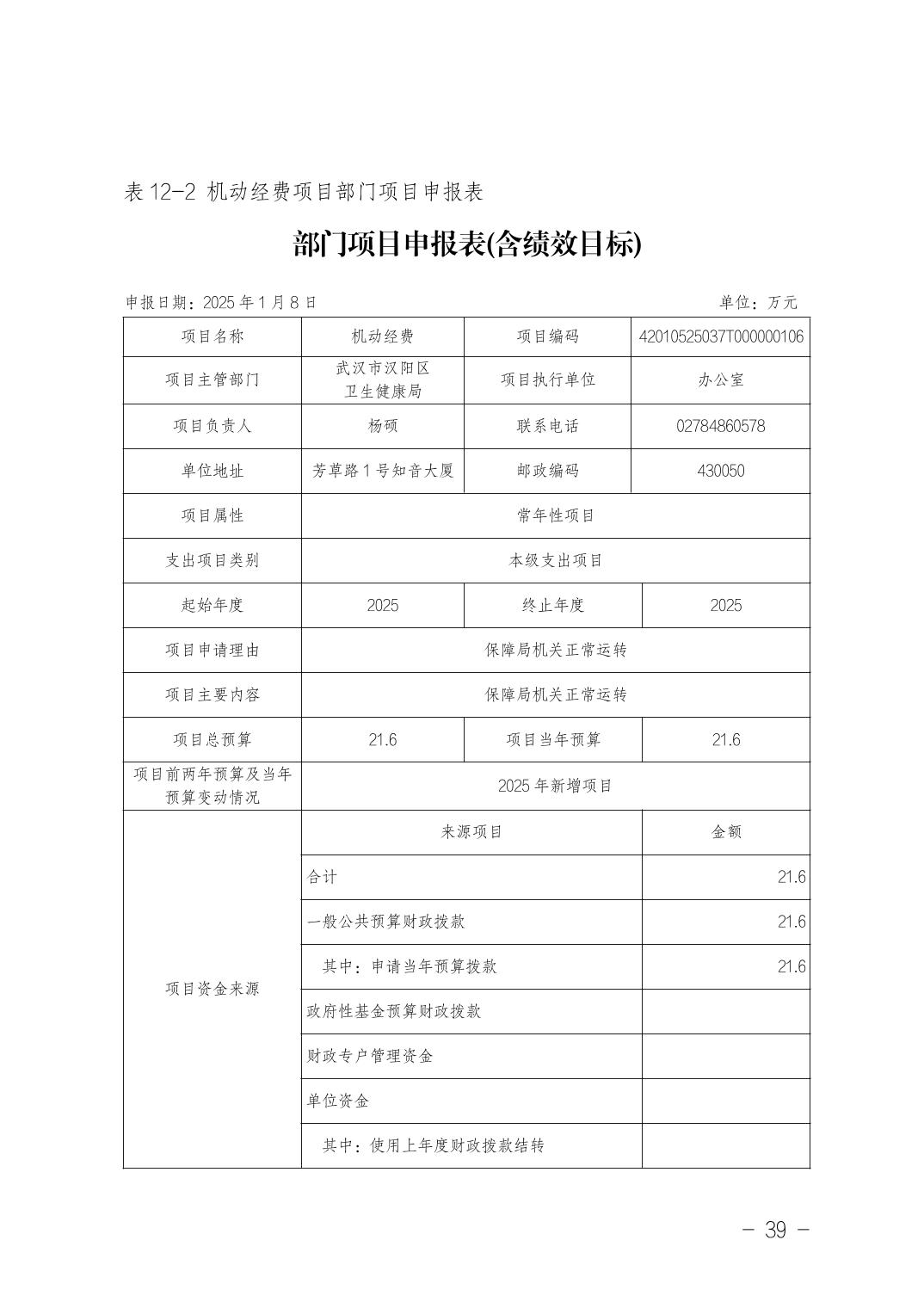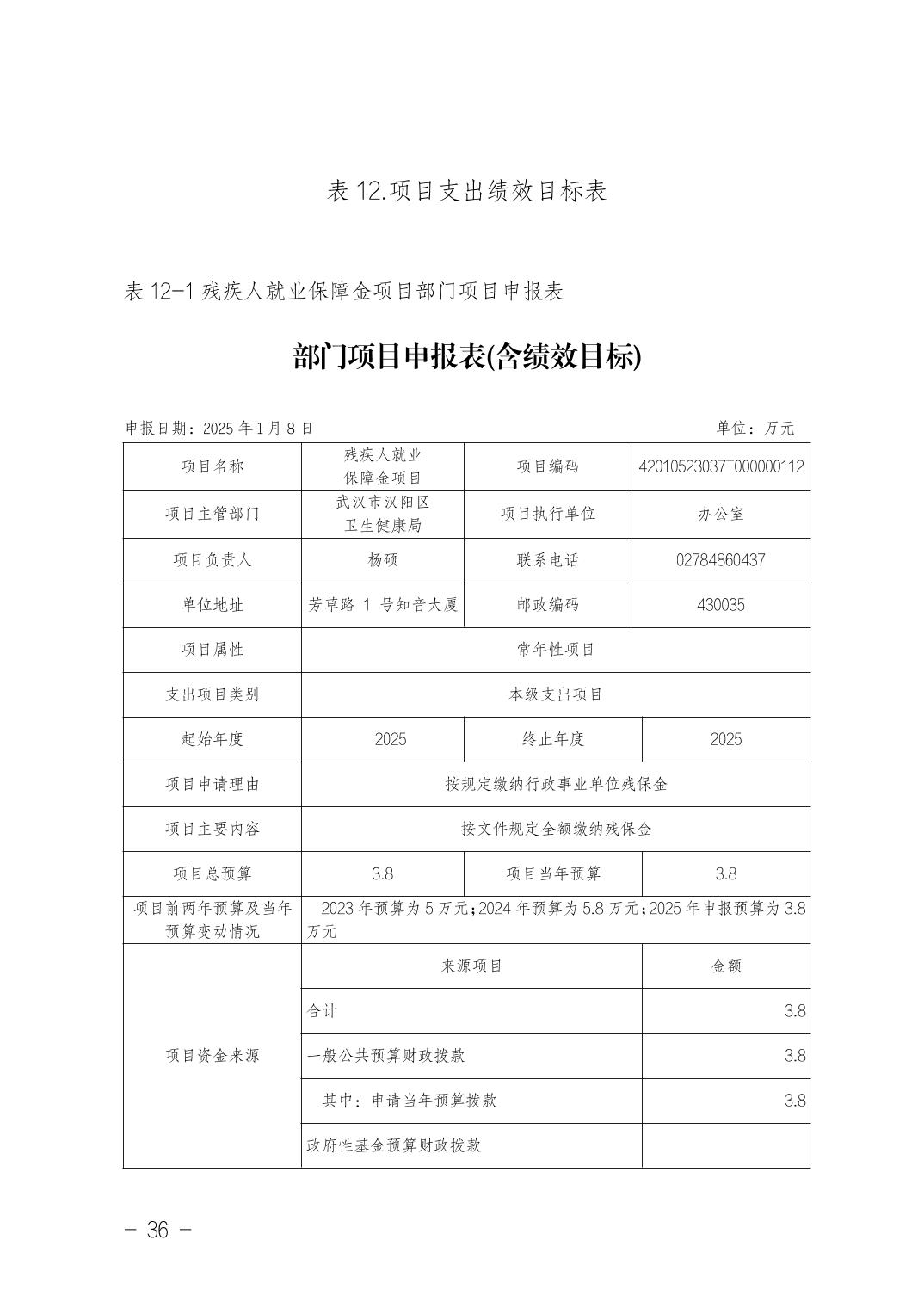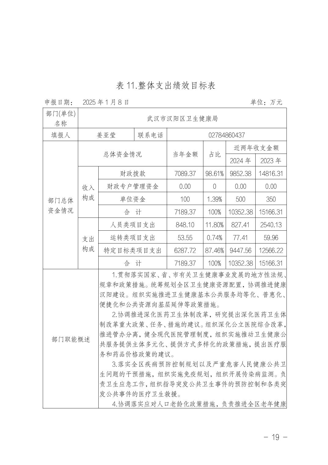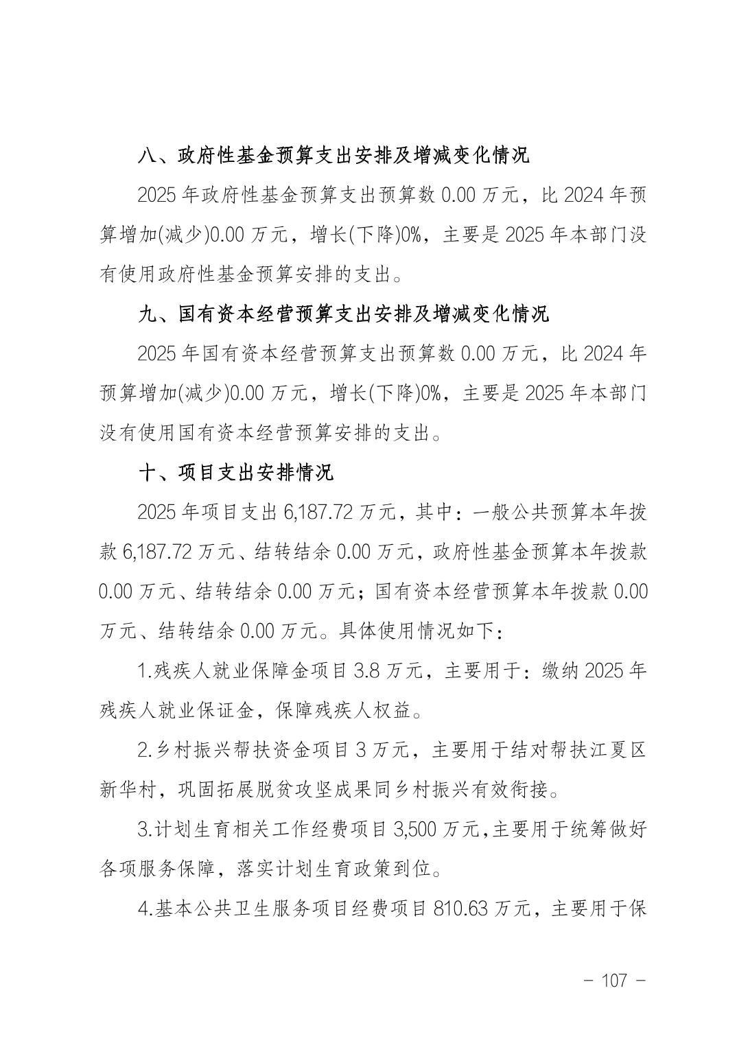 武汉市汉阳区卫生健康局(本级)2025年预算信息公开