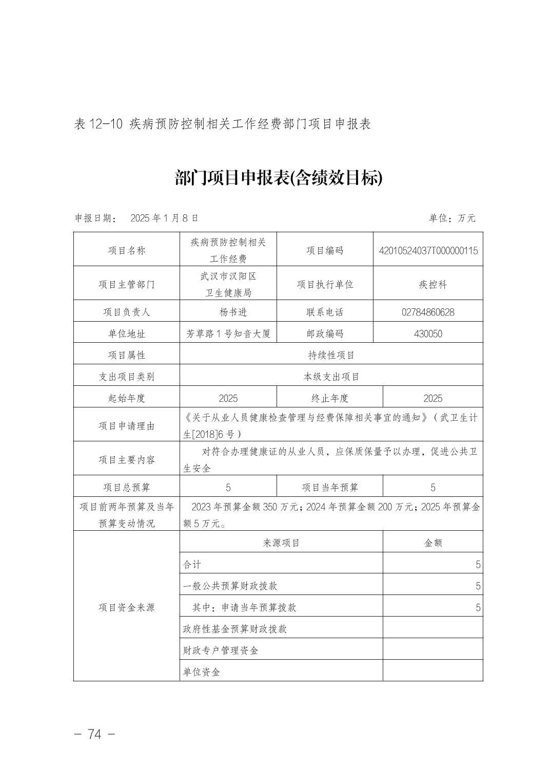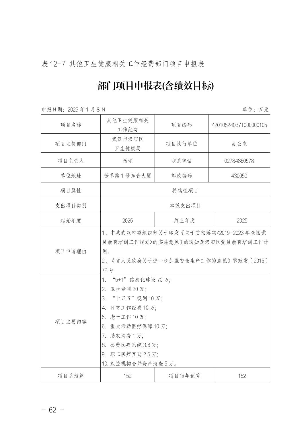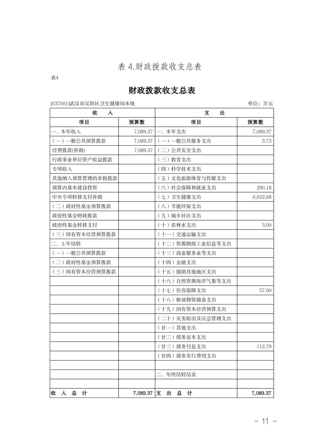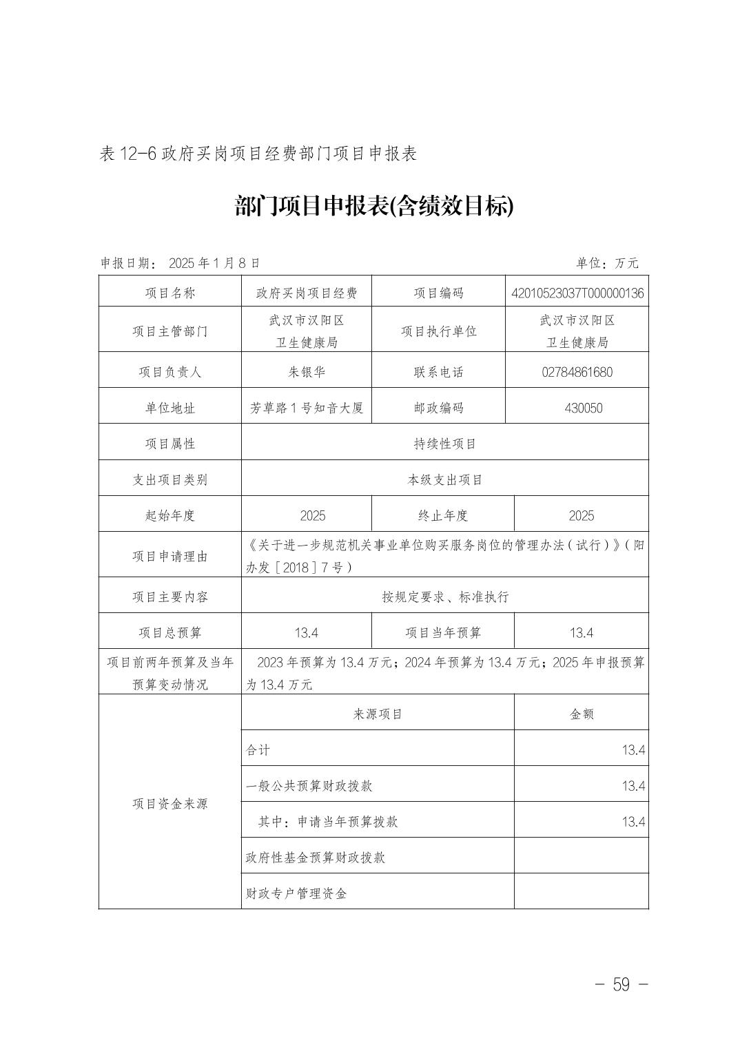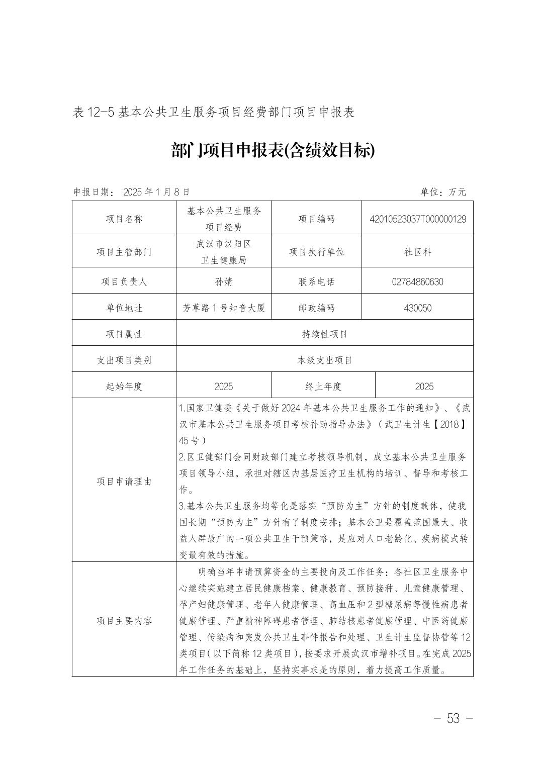 武汉市汉阳区卫生健康局(本级)2025年预算信息公开