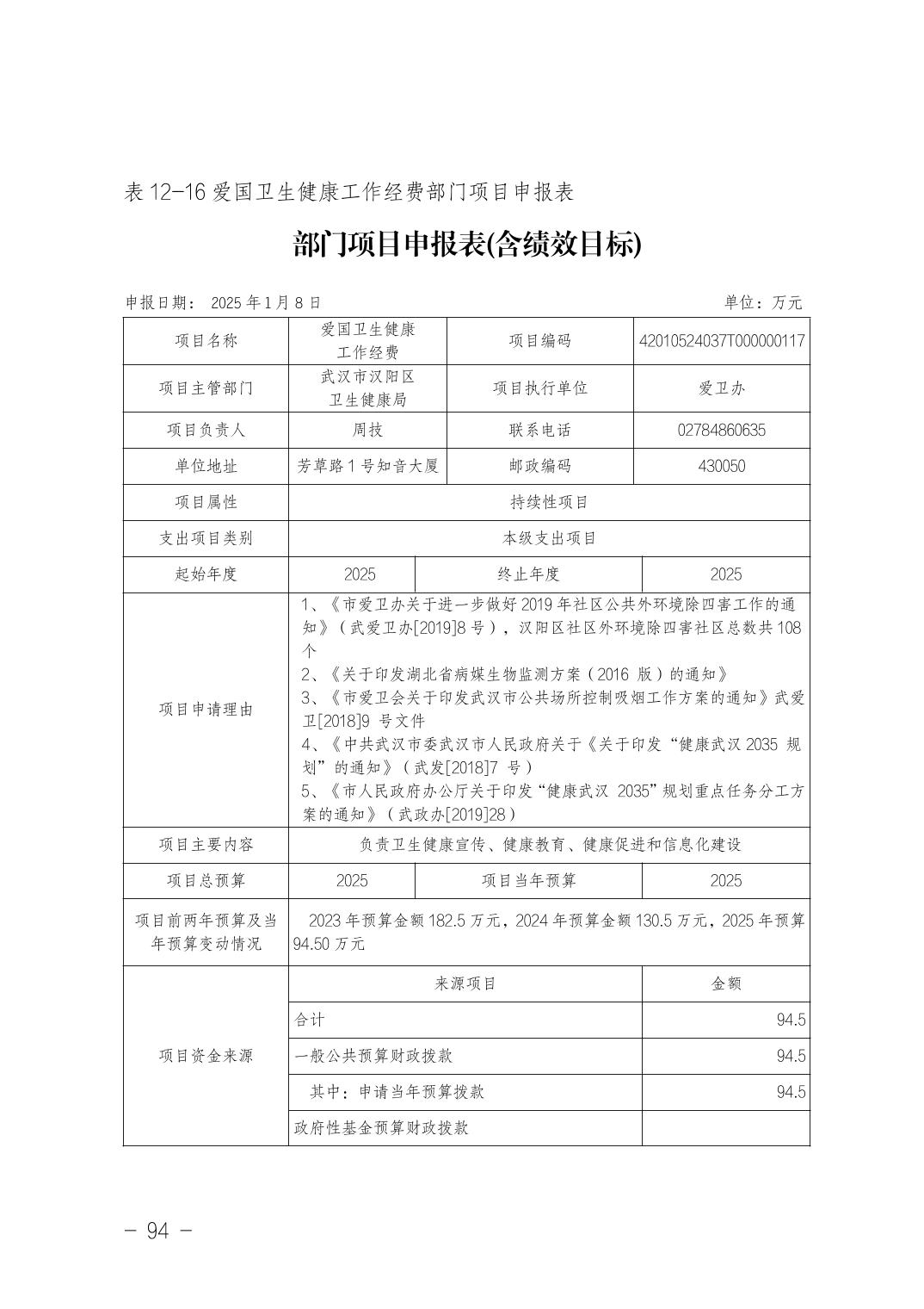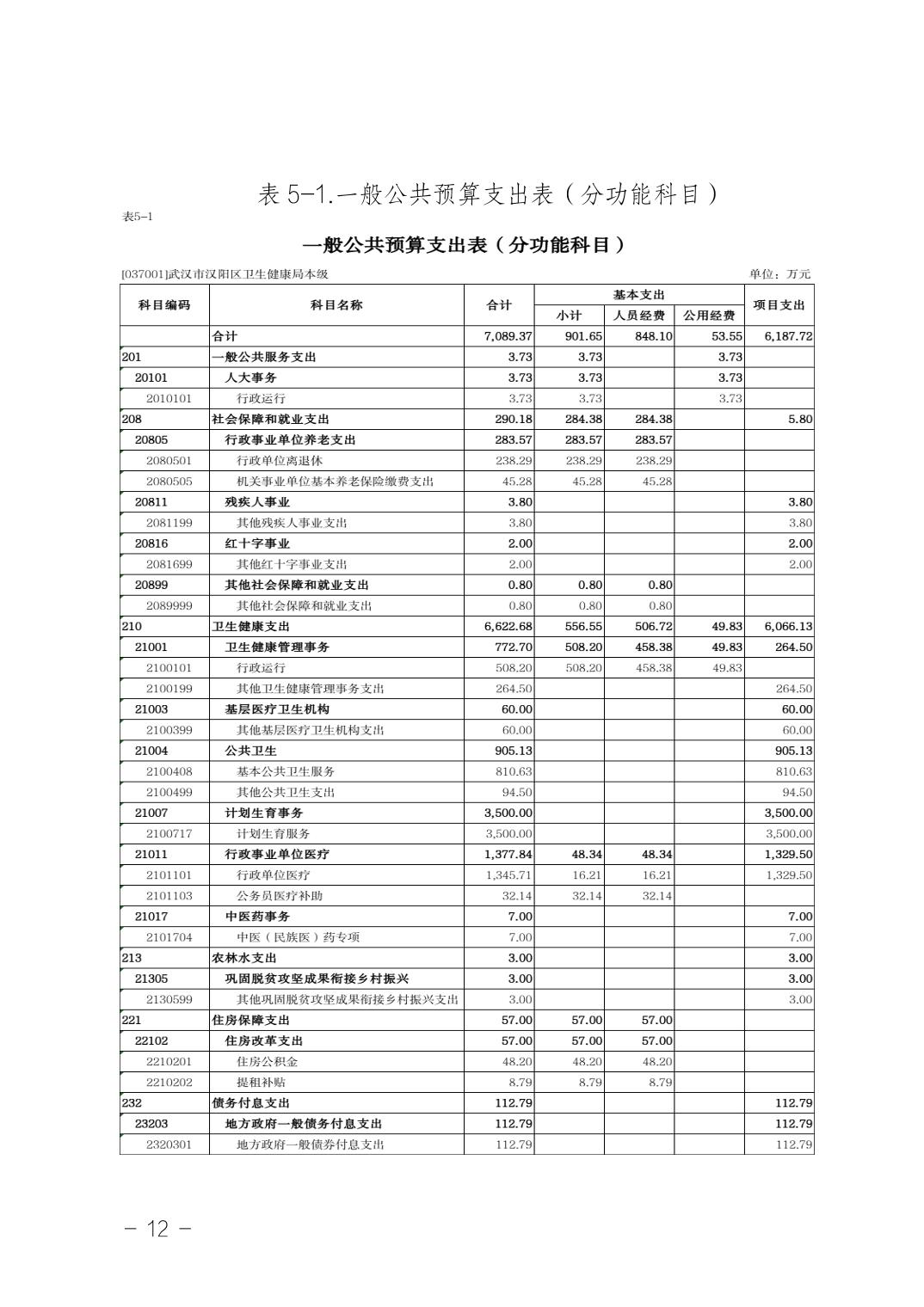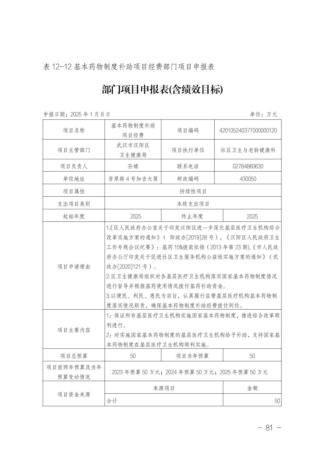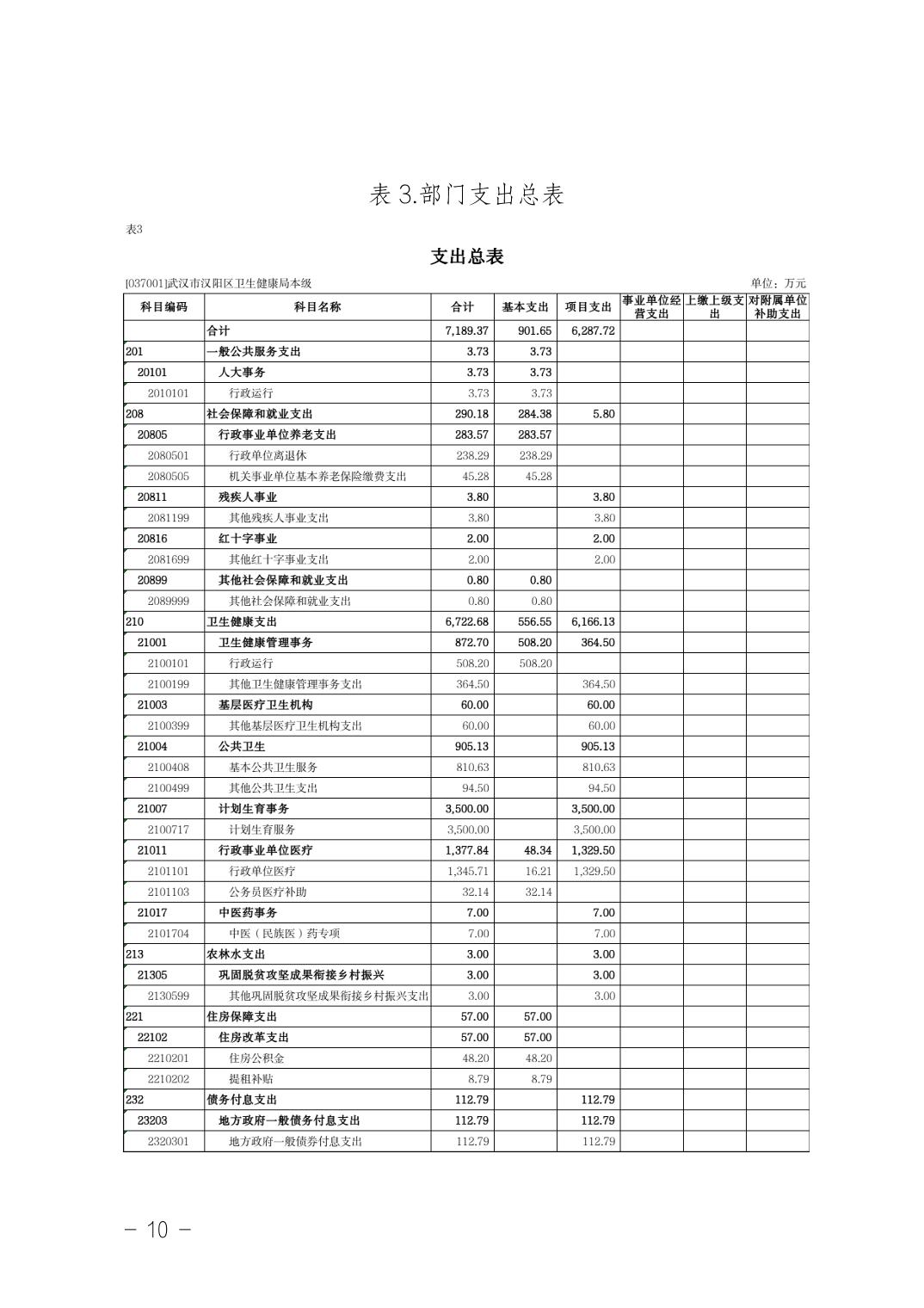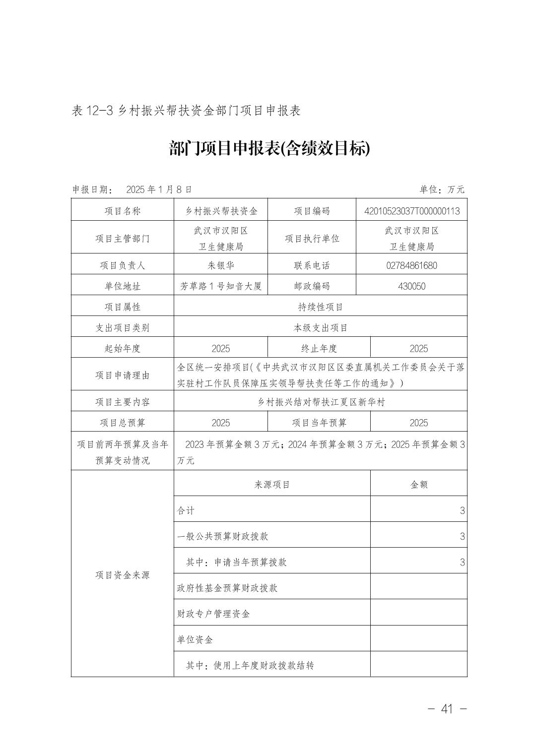 武汉市汉阳区卫生健康局(本级)2025年预算信息公开