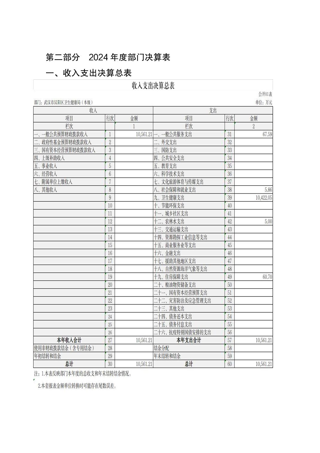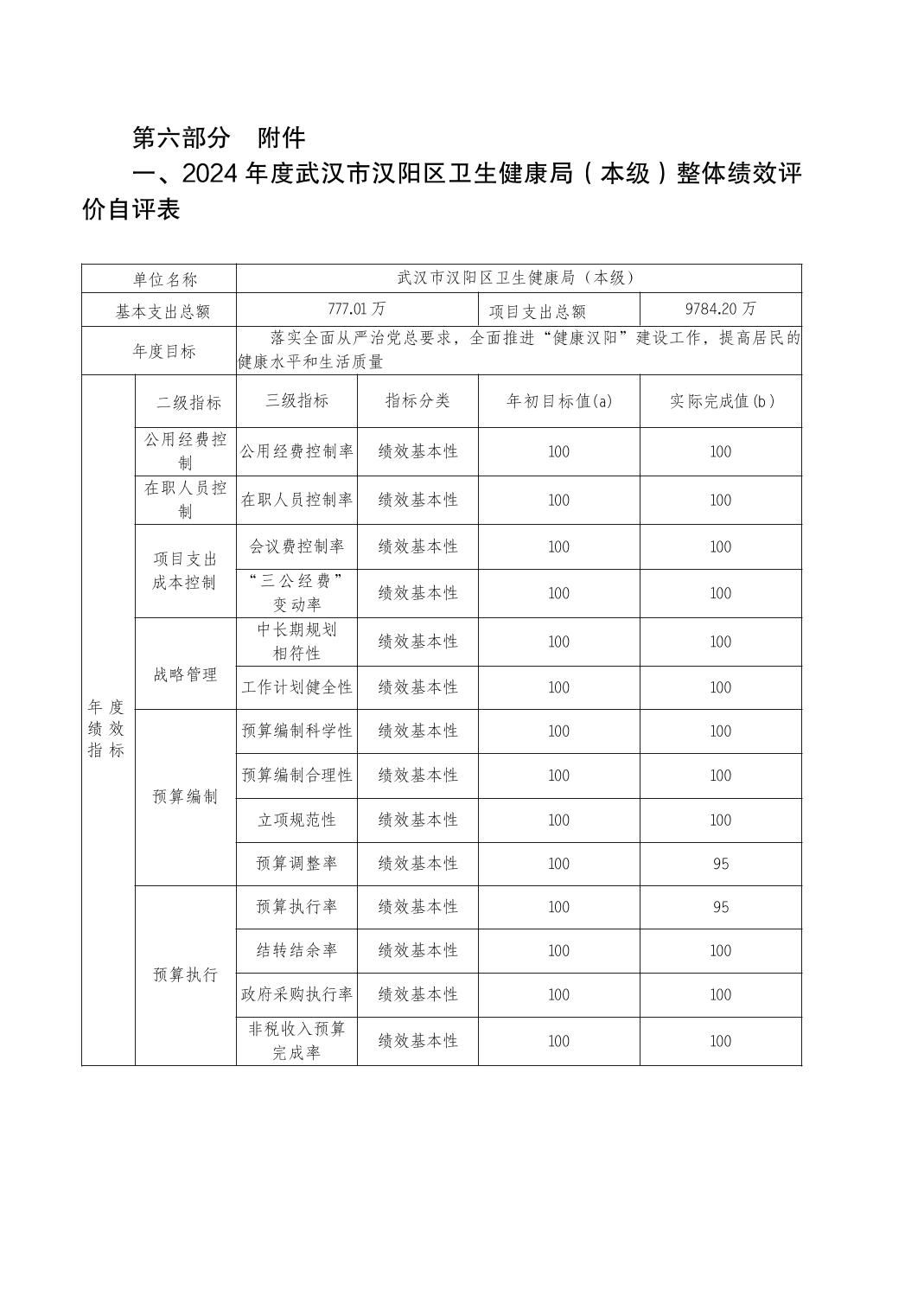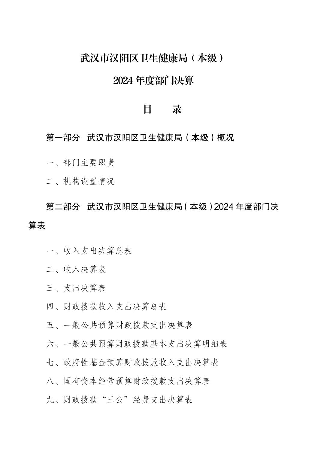 武汉市汉阳区卫生健康局(本级)2024 年度部门决算20251016