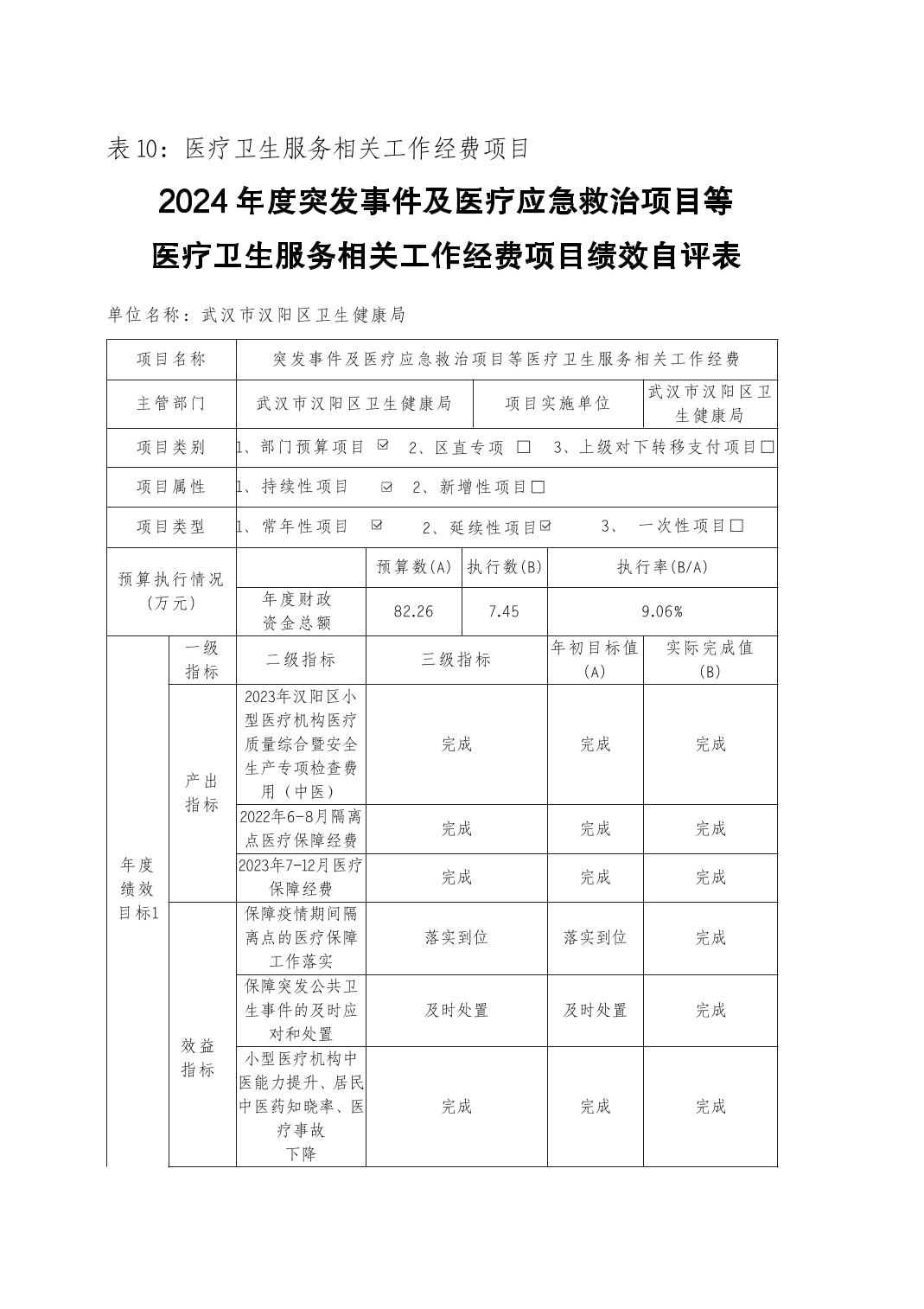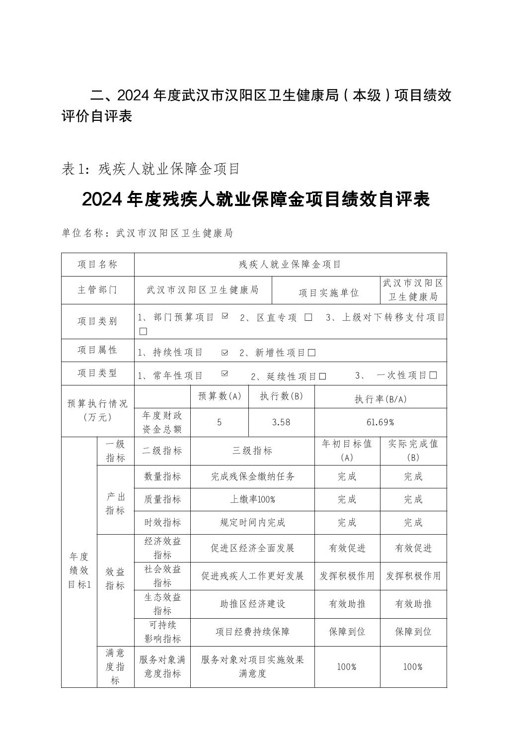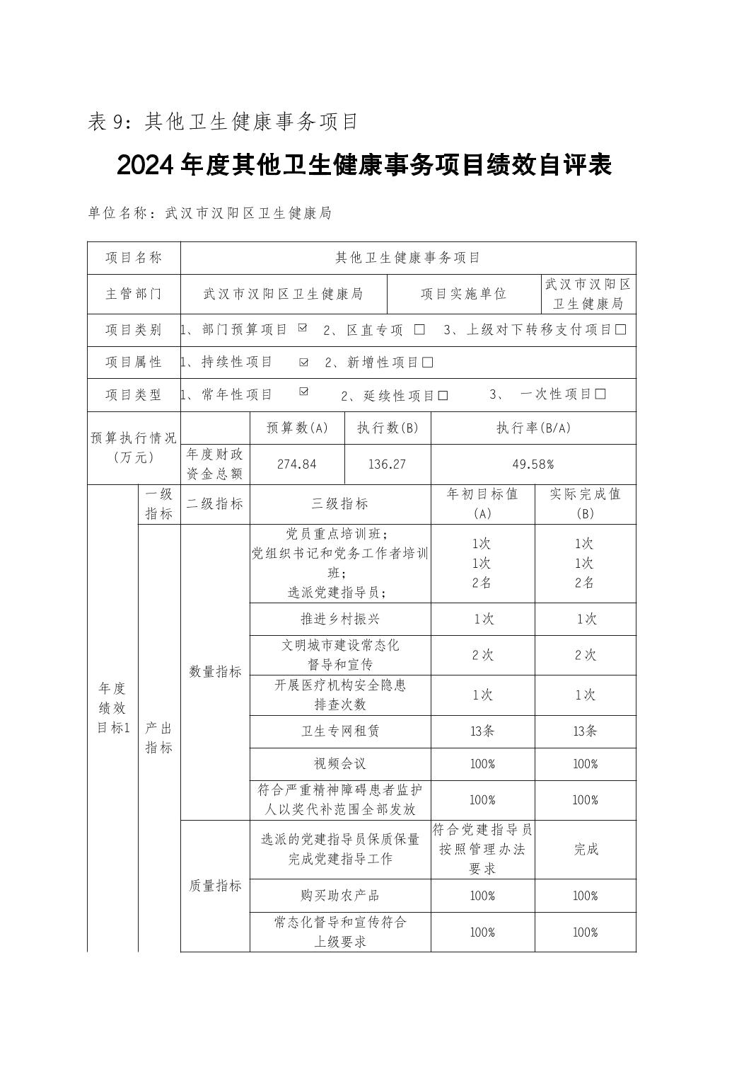 武汉市汉阳区卫生健康局(本级)2024 年度部门决算20251016