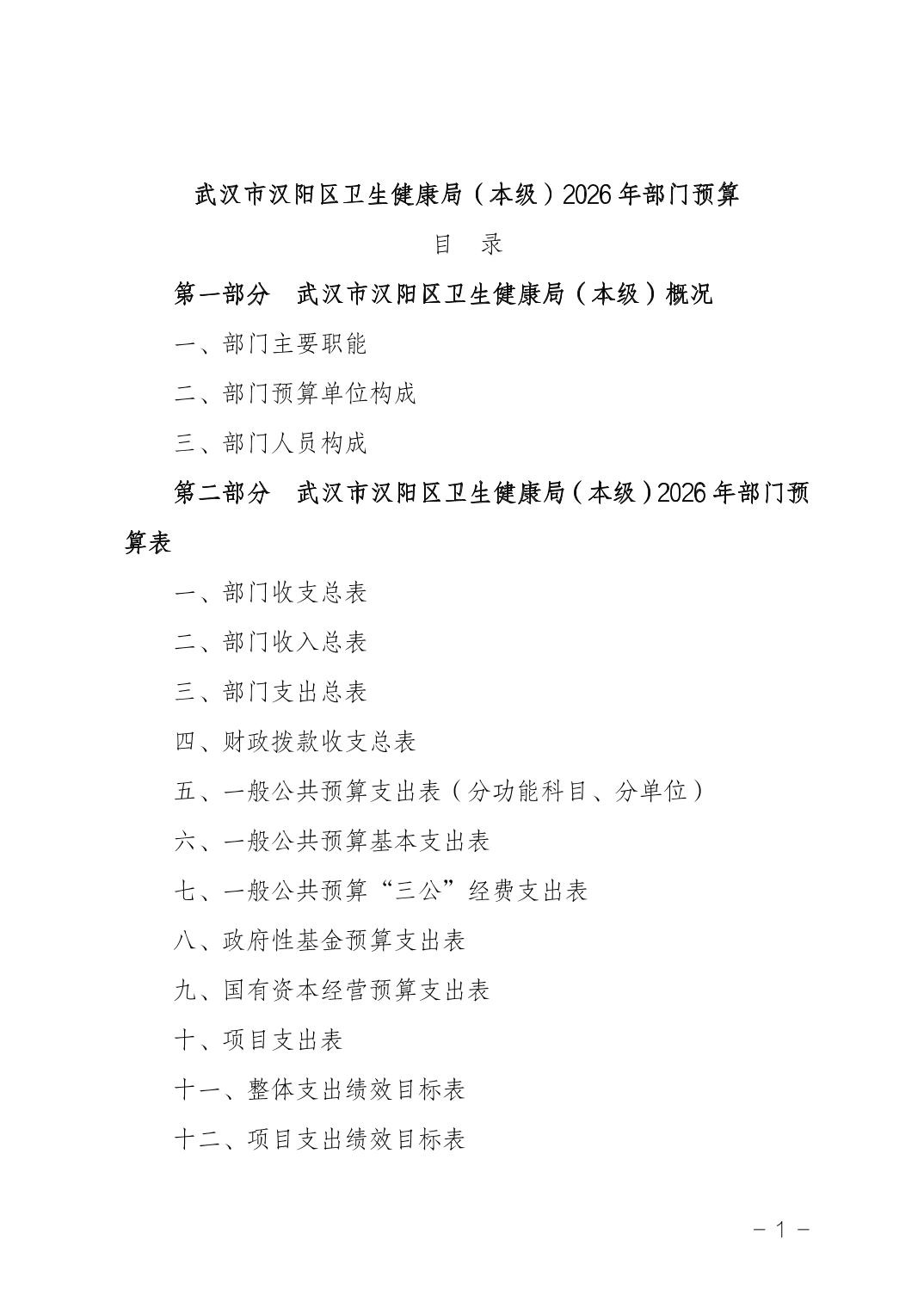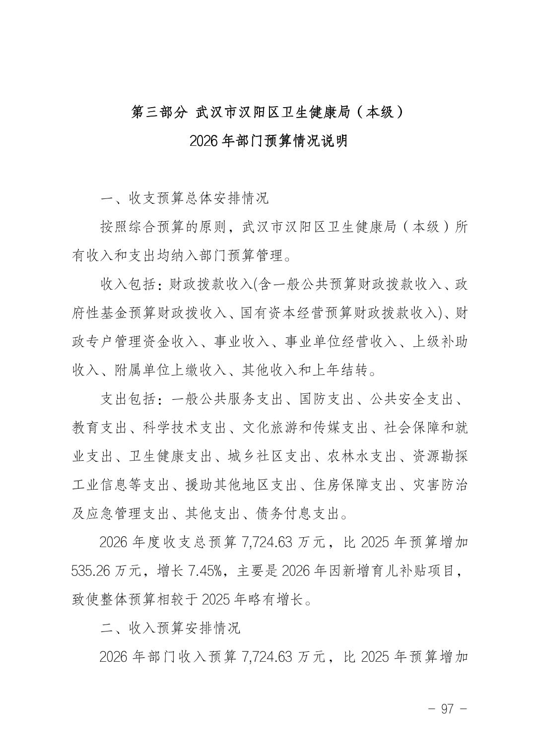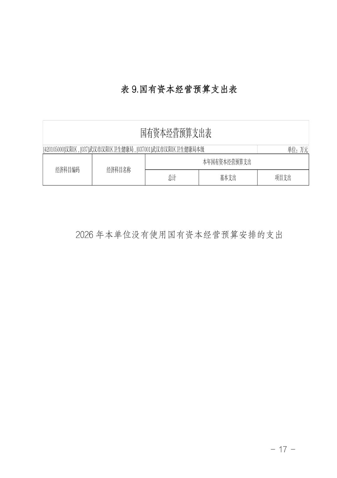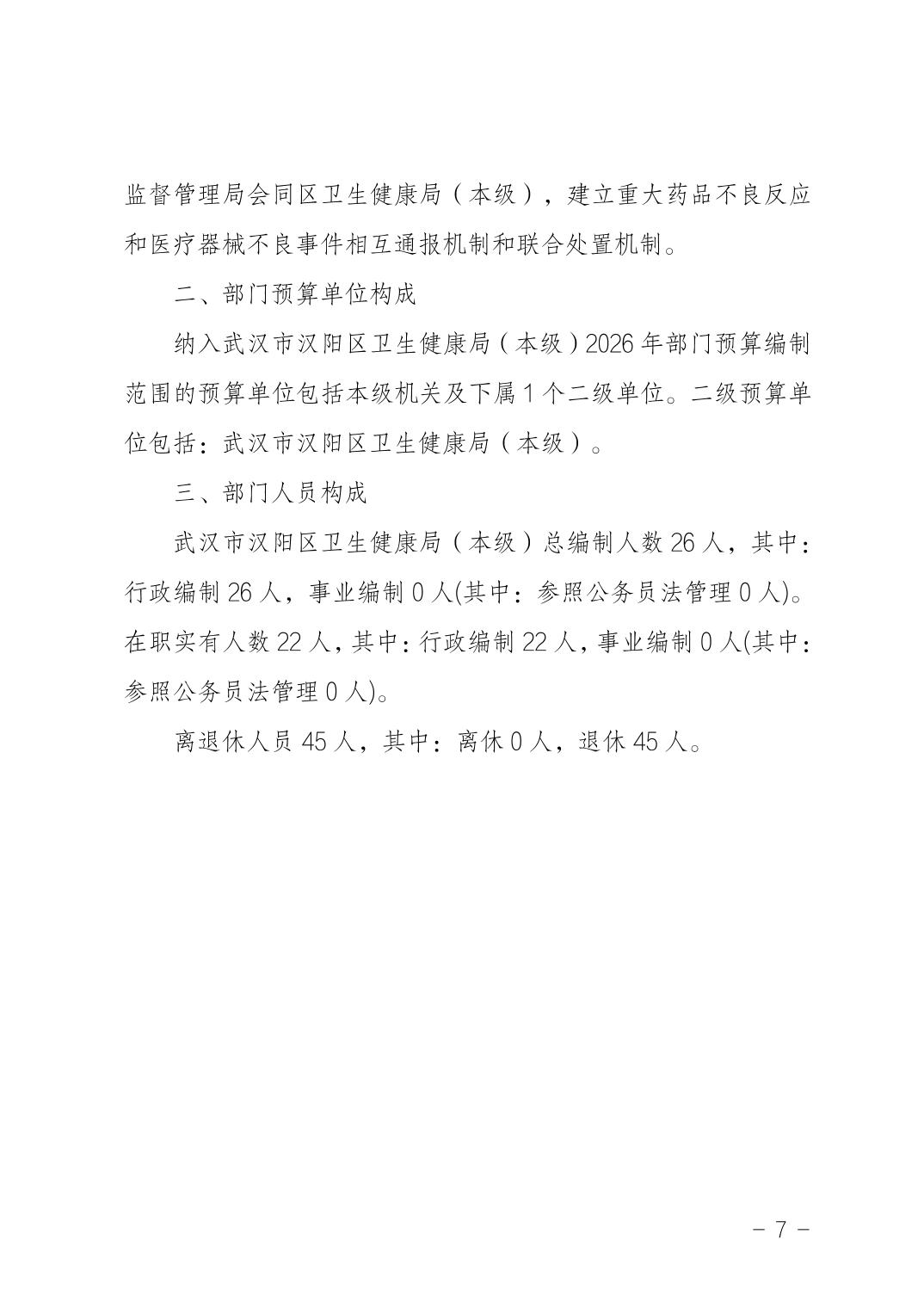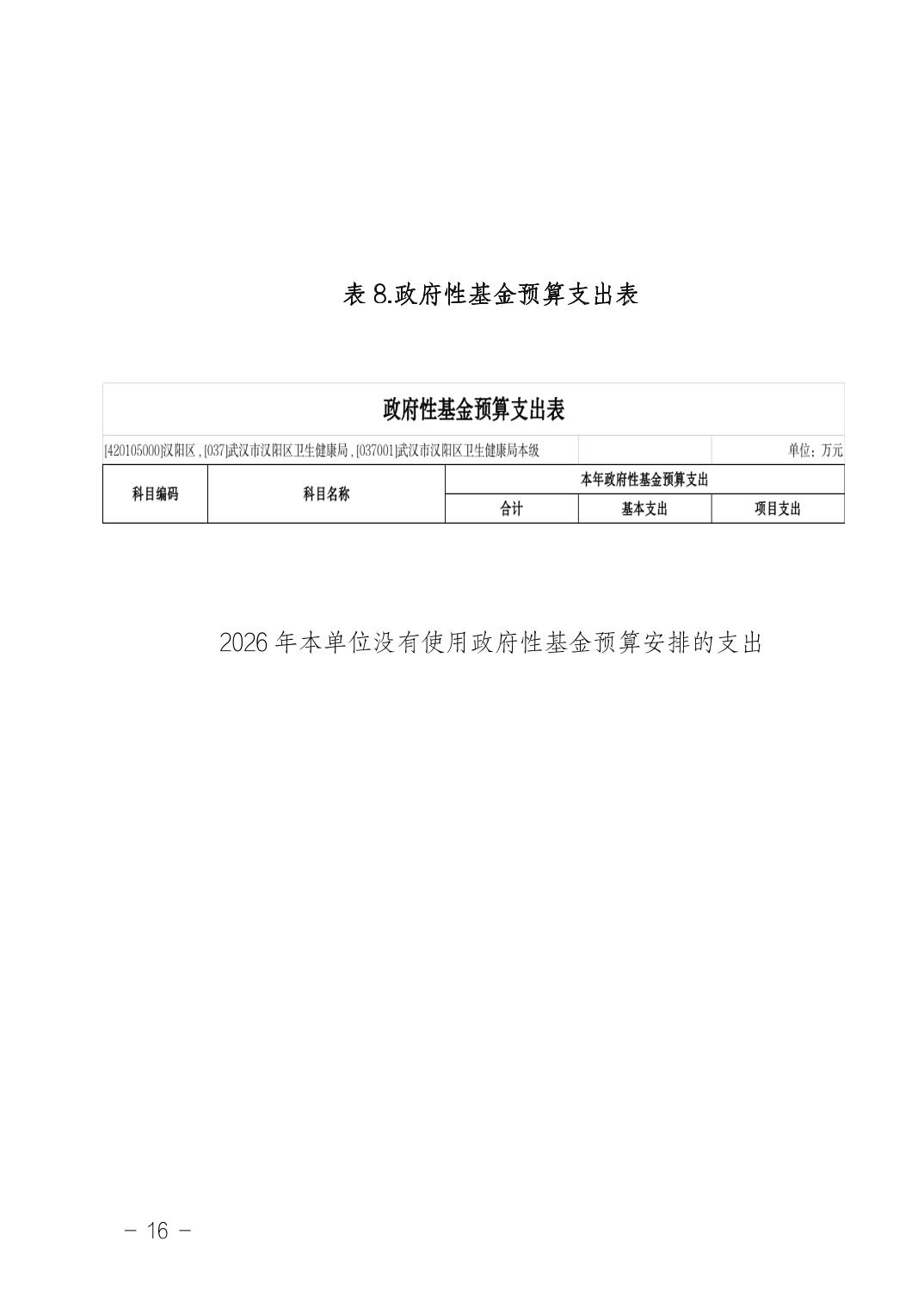 武汉市汉阳区卫生健康局(本级)2026年部门预算