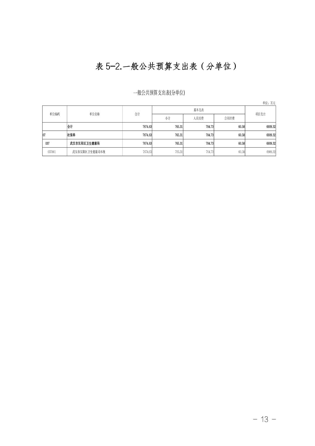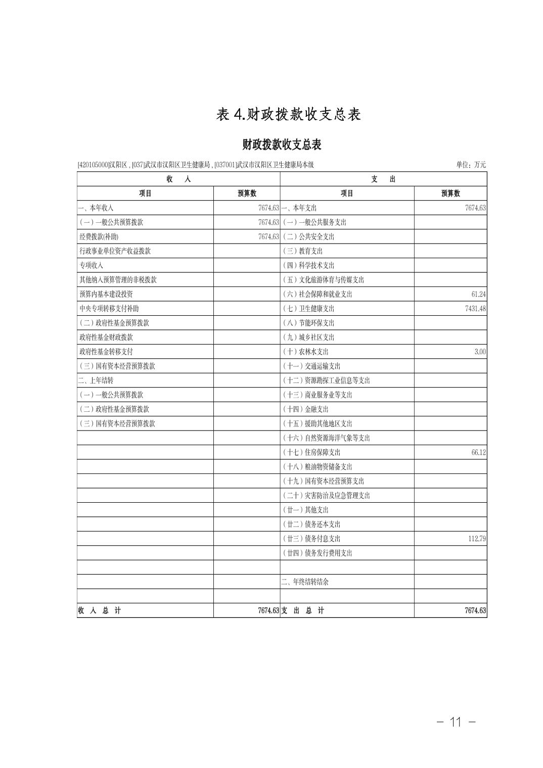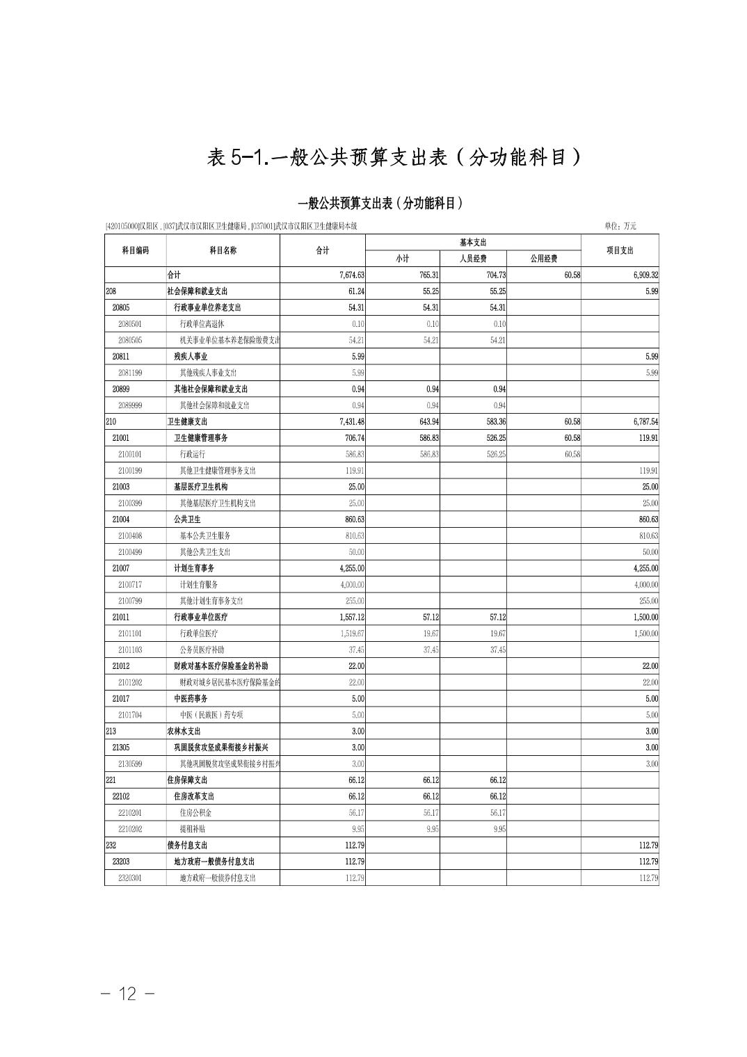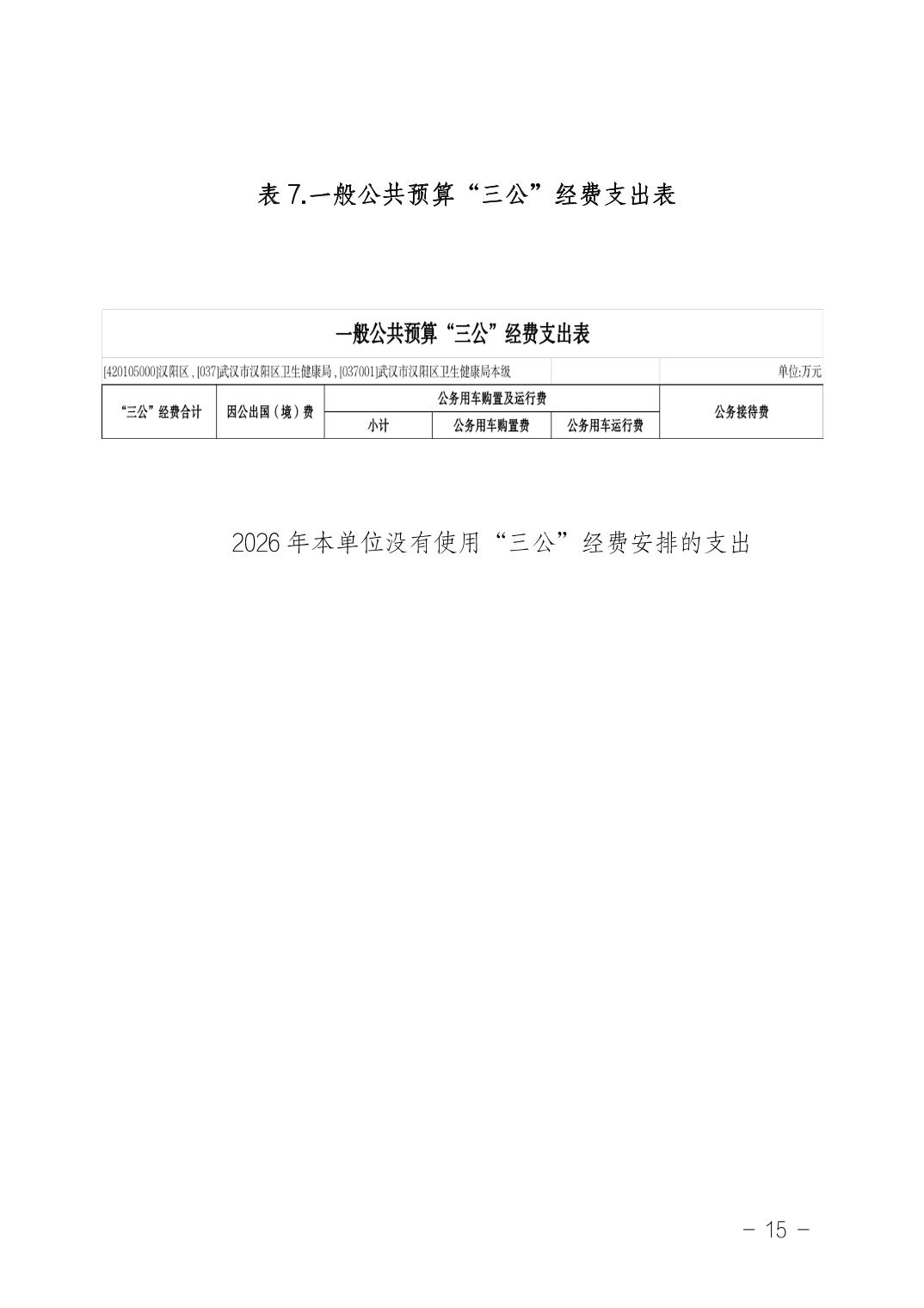 武汉市汉阳区卫生健康局(本级)2026年部门预算