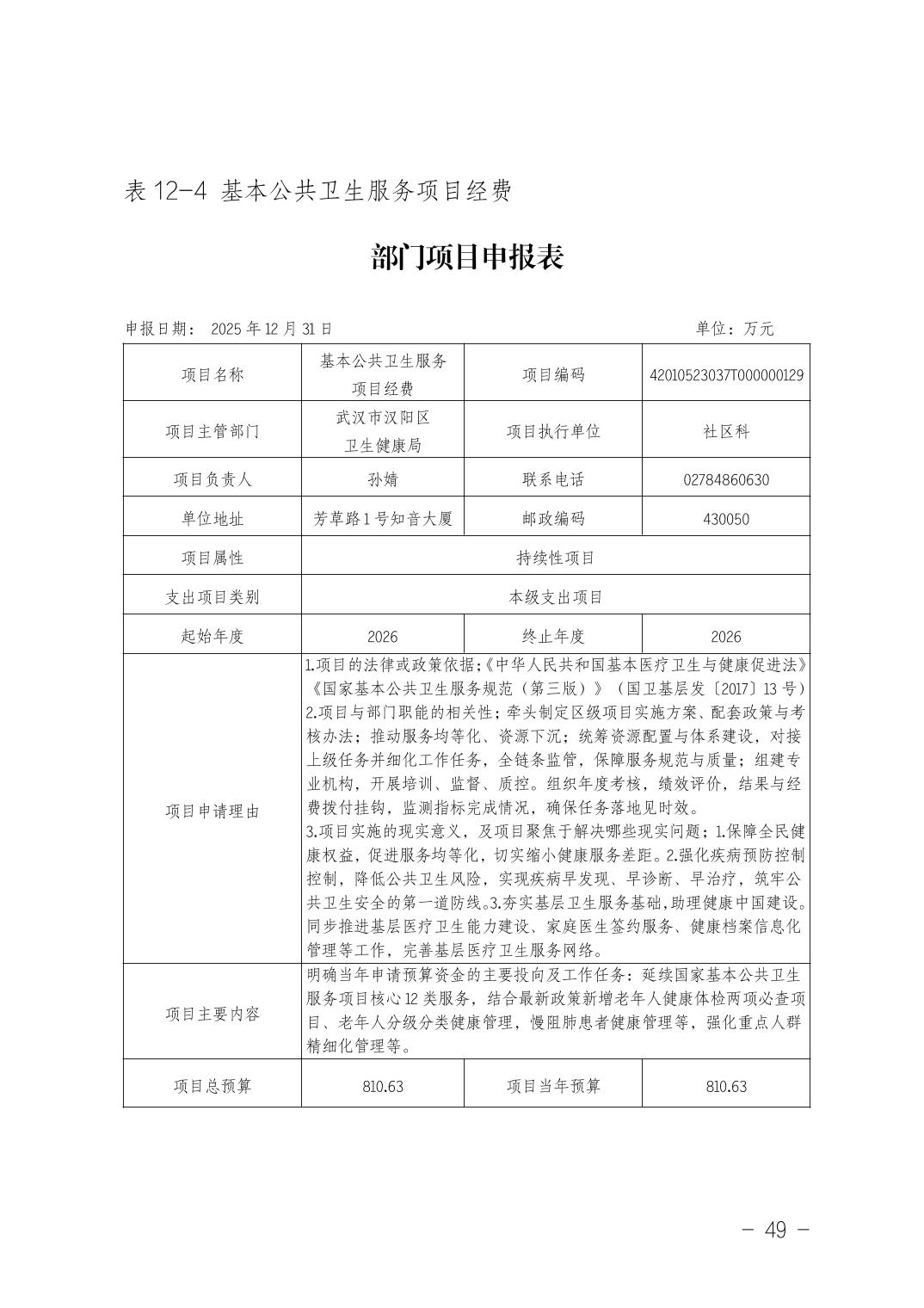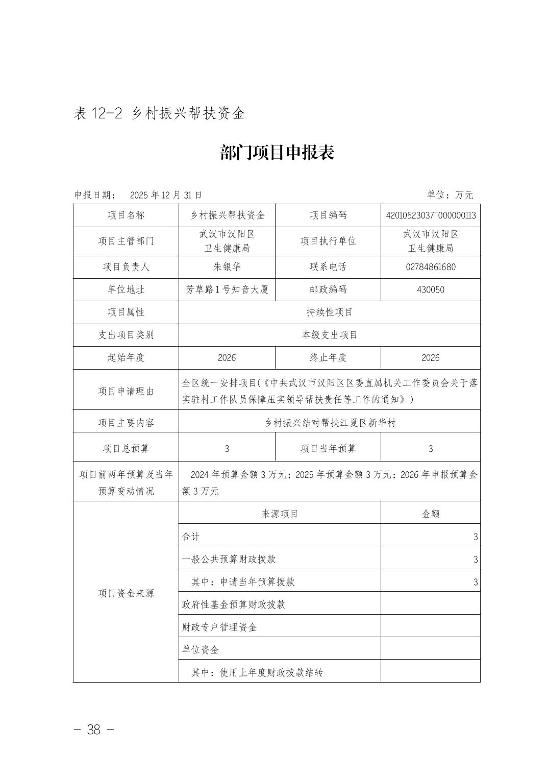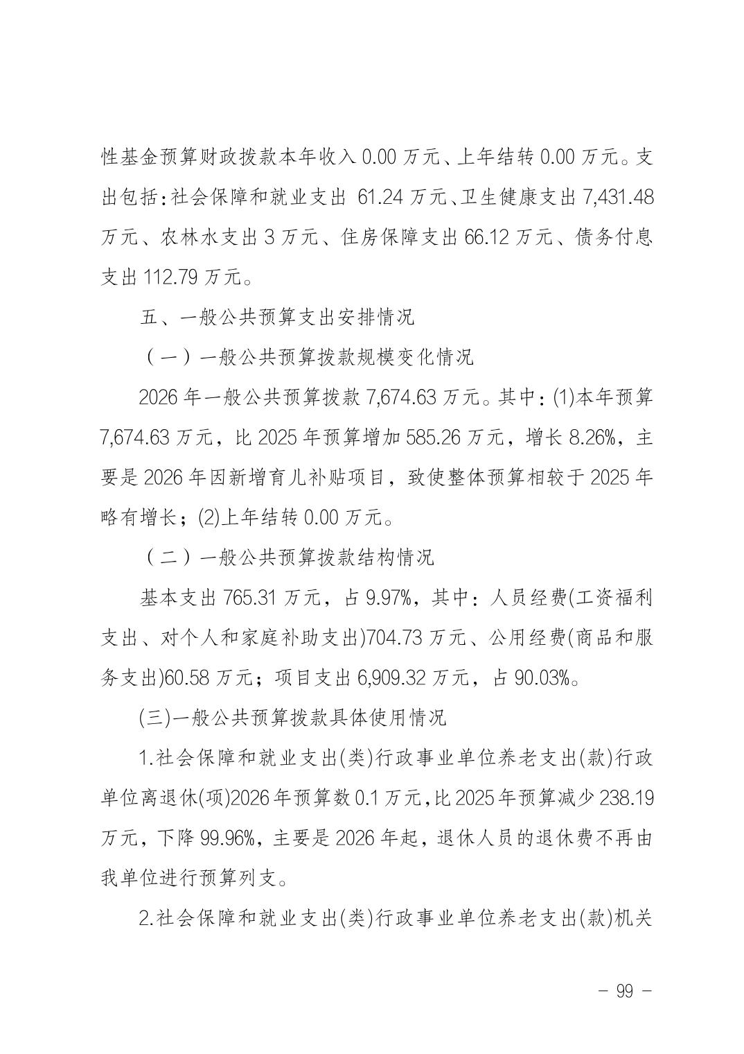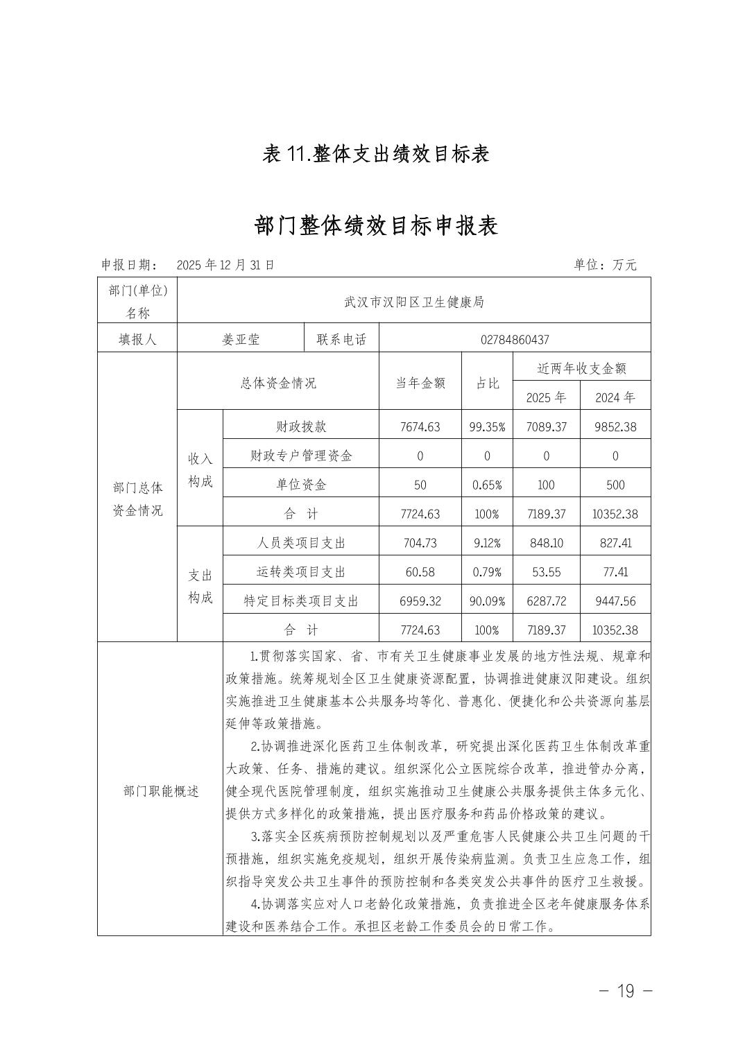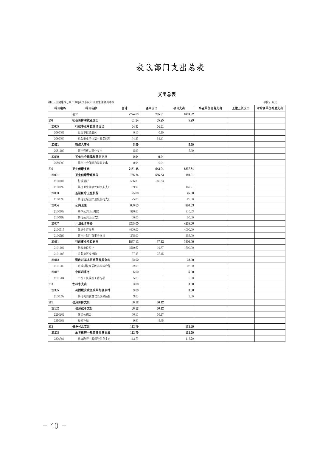 武汉市汉阳区卫生健康局(本级)2026年部门预算